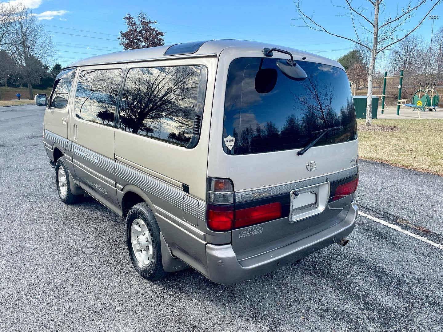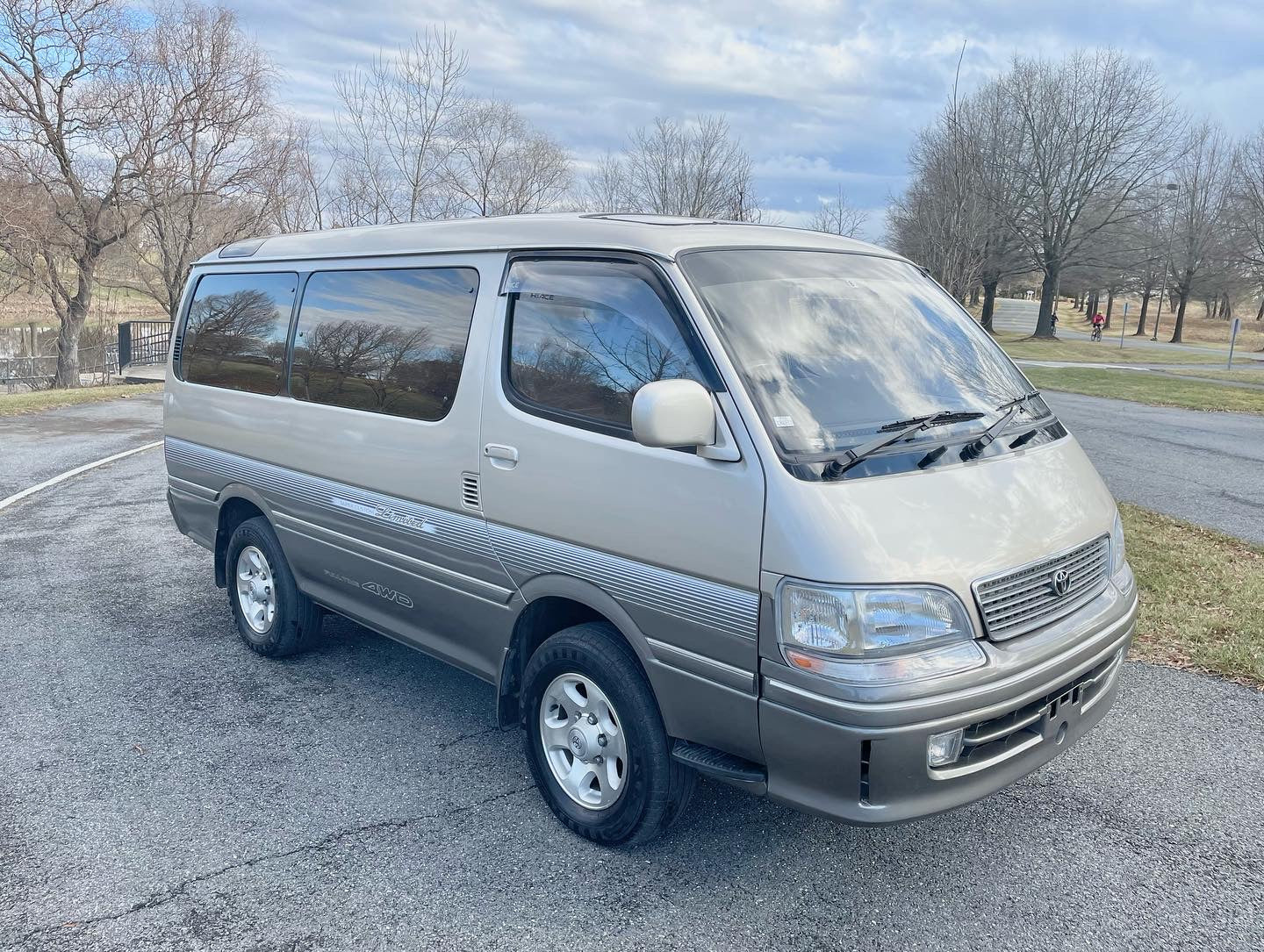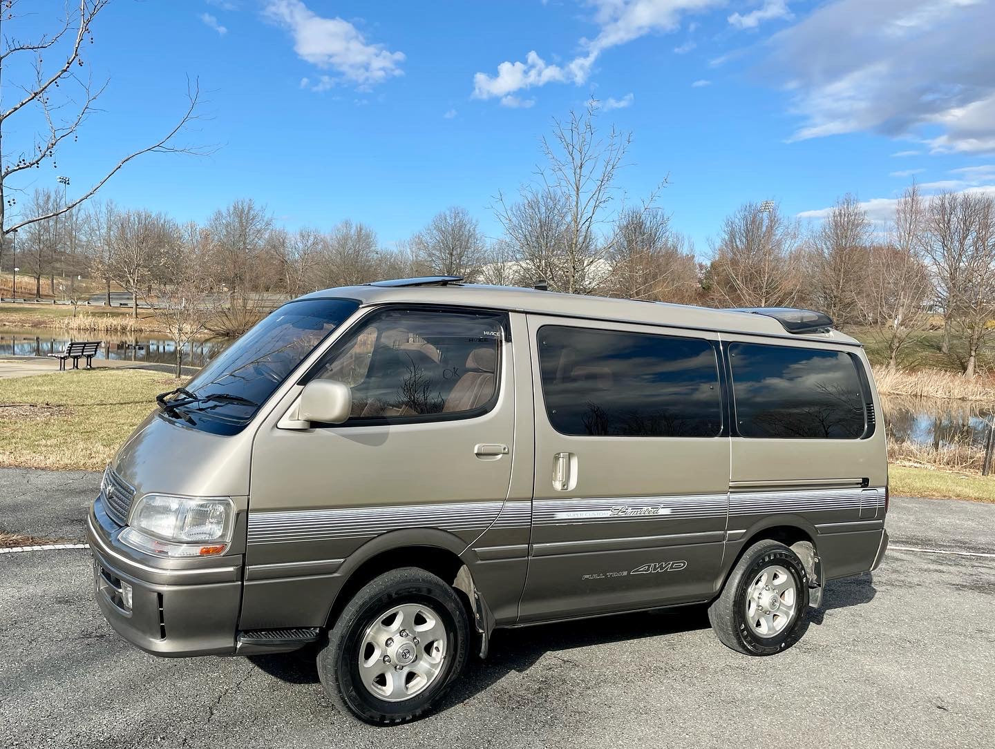 1996 TOYOTA HIACE SUPER CUSTOM LIMITED KZH106 ——129K miles, “1KZ-TE” 3.0 Liter Inline 4, Turbo Diesel, Automatic Transmission, Full Time 4WD, SRS AIRBAGS, Venting Front Sunroof, Massive Central Sunroof, Power Rear Sunroof, Two-Tone Paint, Brown Cloth Upholstery, Factory 3rd Row, 180 Degree Swivel Middle Row, Full Flat Folding Seats, Dual Zone Climate Control, Power Windows, Power Mirrors, Power Locks, Soft Closing Sliding Door, OEM Wheels, DIGITAL INSTRUMENT CLUSTER