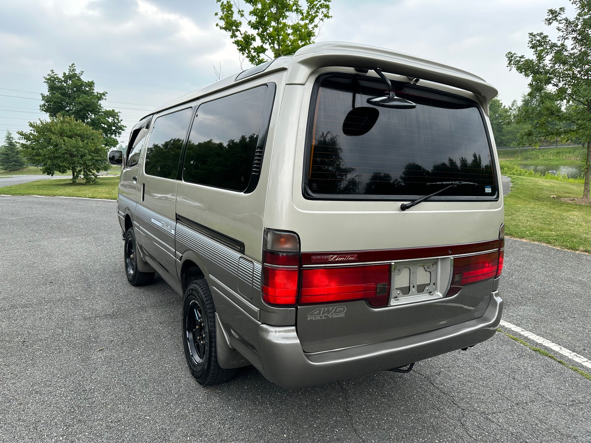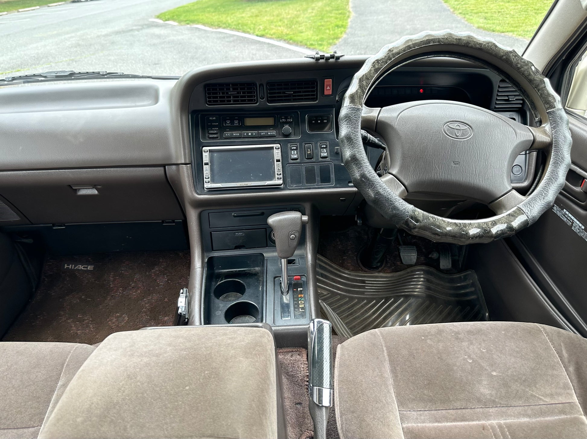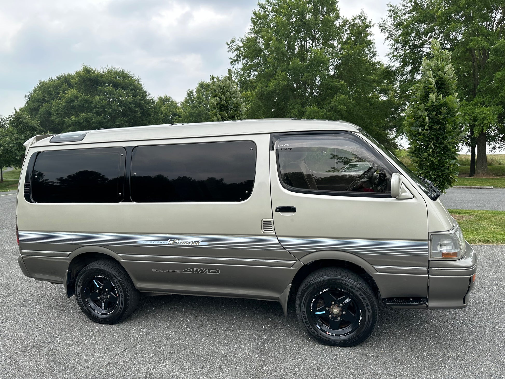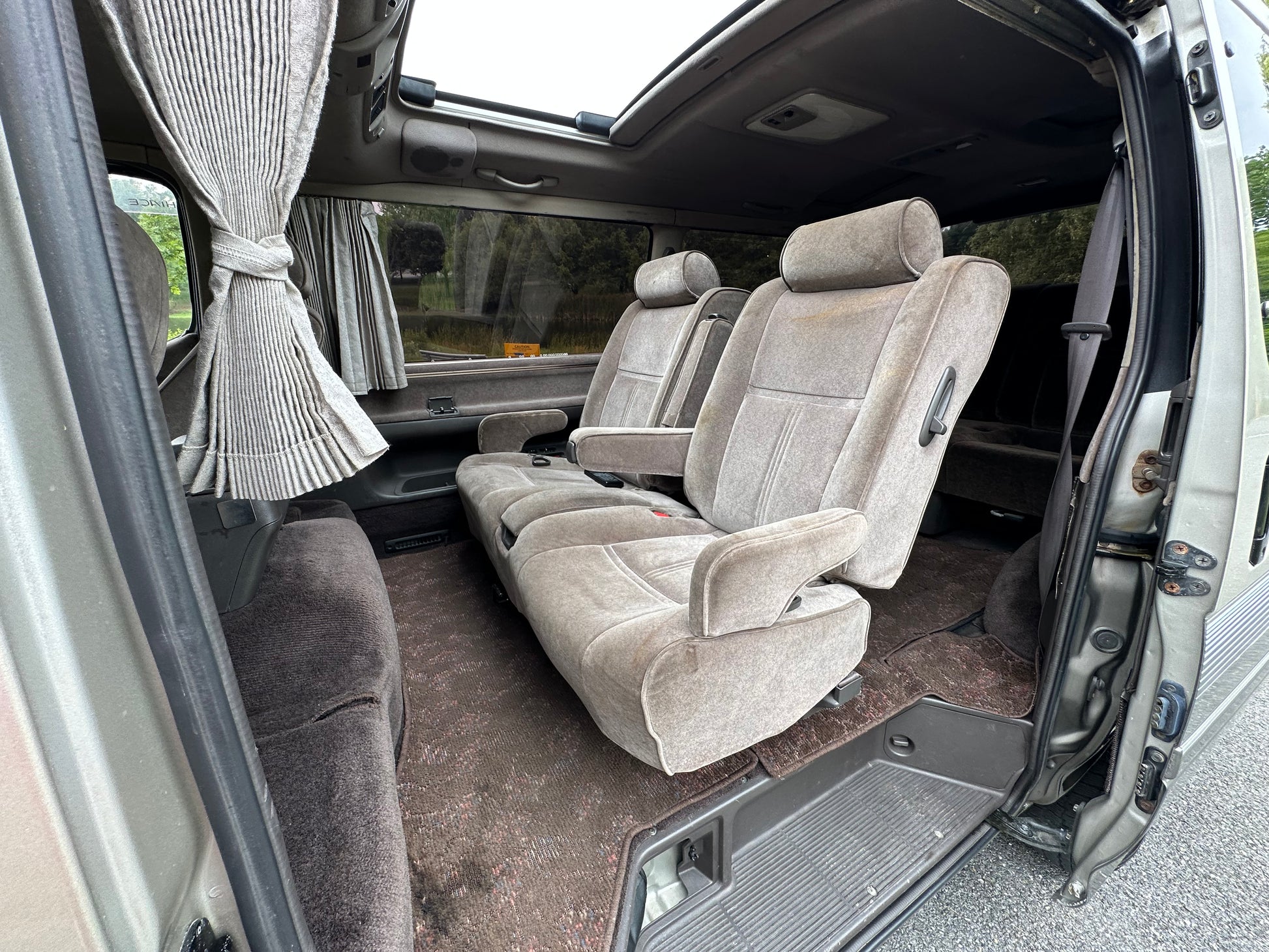 1996 TOYOTA HIACE SUPER CUSTOM LIMITED KZH106 ——148,064 Miles, “1KZ-TE” 3.0 Liter Inline 4, Turbo Diesel, Automatic Transmission, Full Time 4WD, Venting Front Sunroof, Massive Central Sunroof, Power Rear Sunroof, Two-Tone Paint, Brown Cloth Upholstery, Factory 3rd Row, 180 Degree Swivel Middle Row, Full Flat Folding Seats, Dual Zone Climate Control, Power Windows, Power Retractable Mirrors, Power Locks, Soft Closing Sliding Door, Power Curtains, Aftermarket Radio, OEM Wheels, DIGITAL INSTRUMENT CLUSTER, ELECTRIC DRIVER’S SEAT.