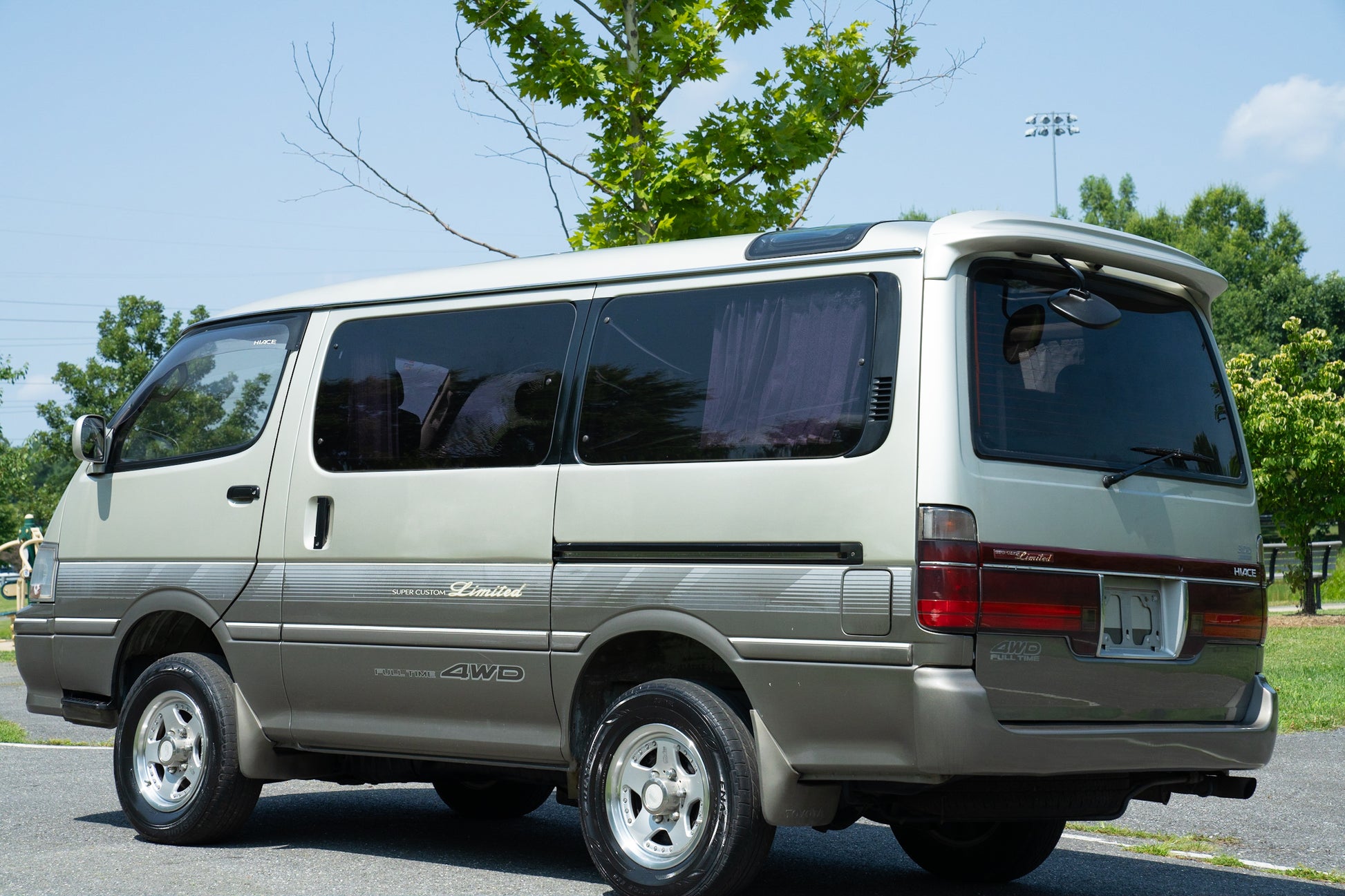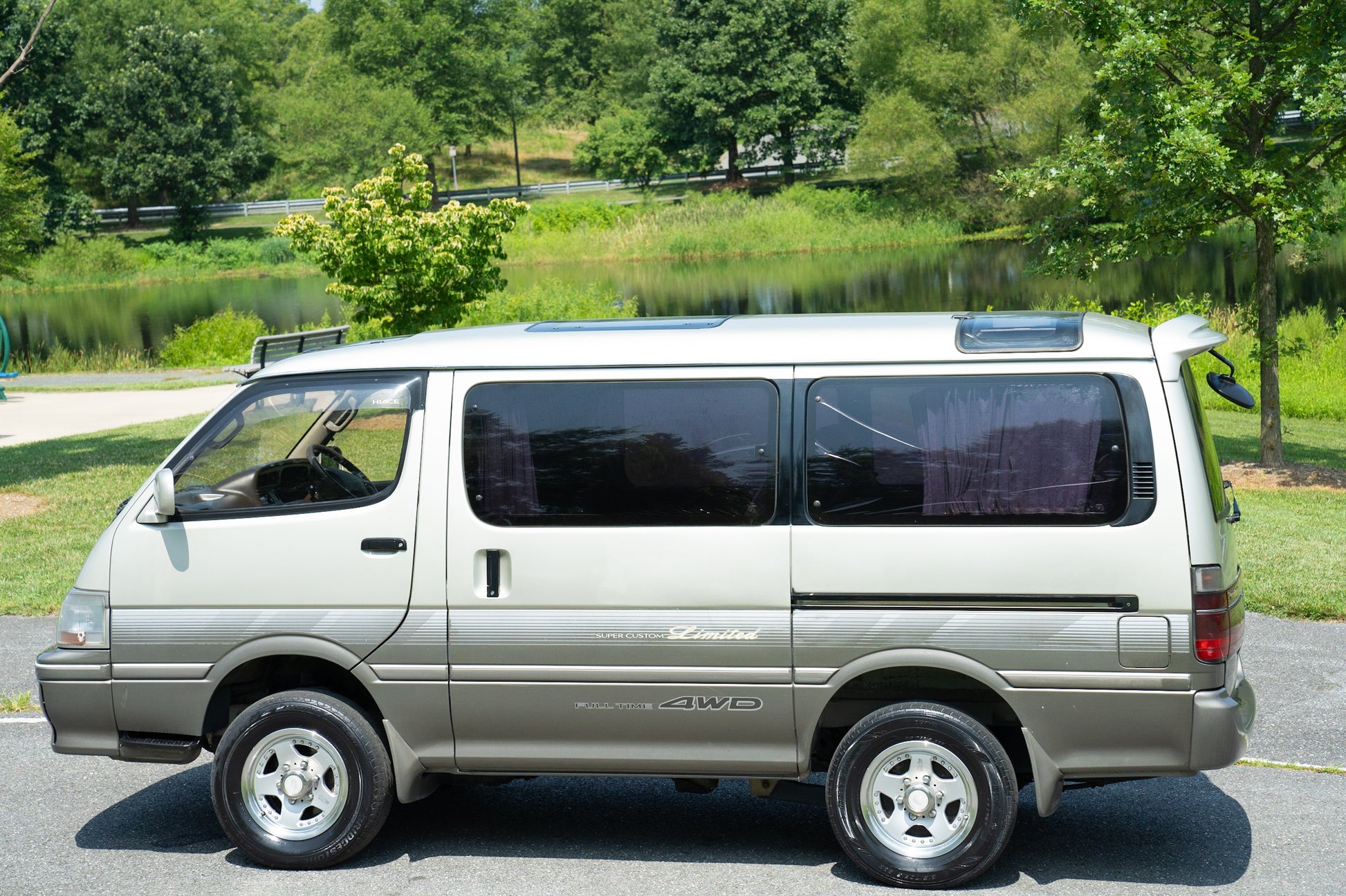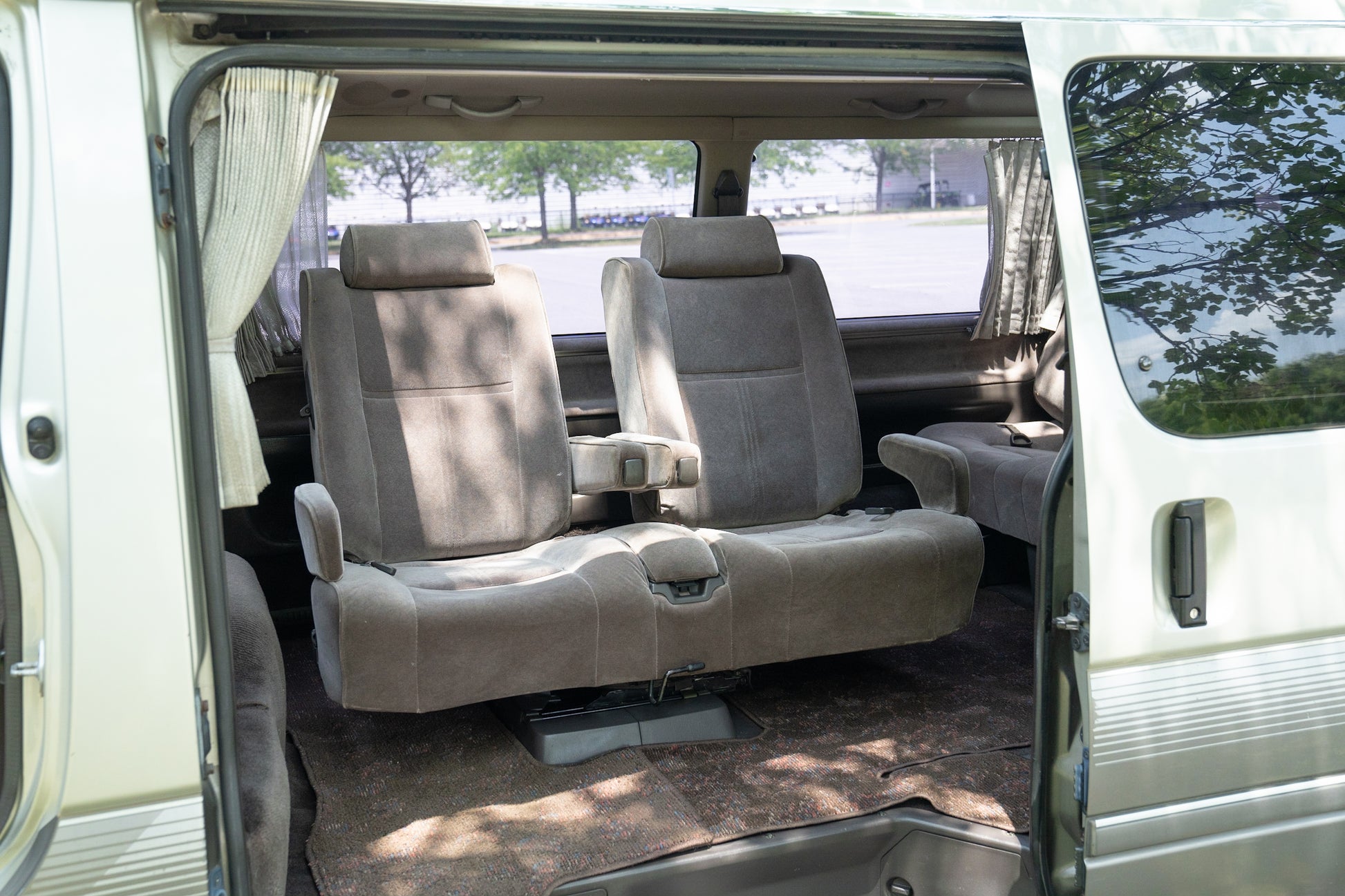 1996 TOYOTA HIACE SUPER CUSTOM LIMITED KZH106 ——85,487 Miles, “1KZ-TE” 3.0 Liter Inline 4, Turbo Diesel, Automatic Transmission, Full Time 4WD, Venting Front Sunroof, Massive Central Sunroof, Power Rear Sunroof, Two-Tone Paint, Brown Cloth Upholstery, Factory 3rd Row, 180 Degree Swivel Middle Row, Full Flat Folding Seats, Dual Zone Climate Control, Power Windows, Power Retractable Mirrors, Power Locks, Soft Closing Sliding Door, Power Curtains, Original Radio, ABS, Aftermarket Wheels, DIGITAL INSTRUMENT CLUSTER, ELECTRIC DRIVER’S SEAT.