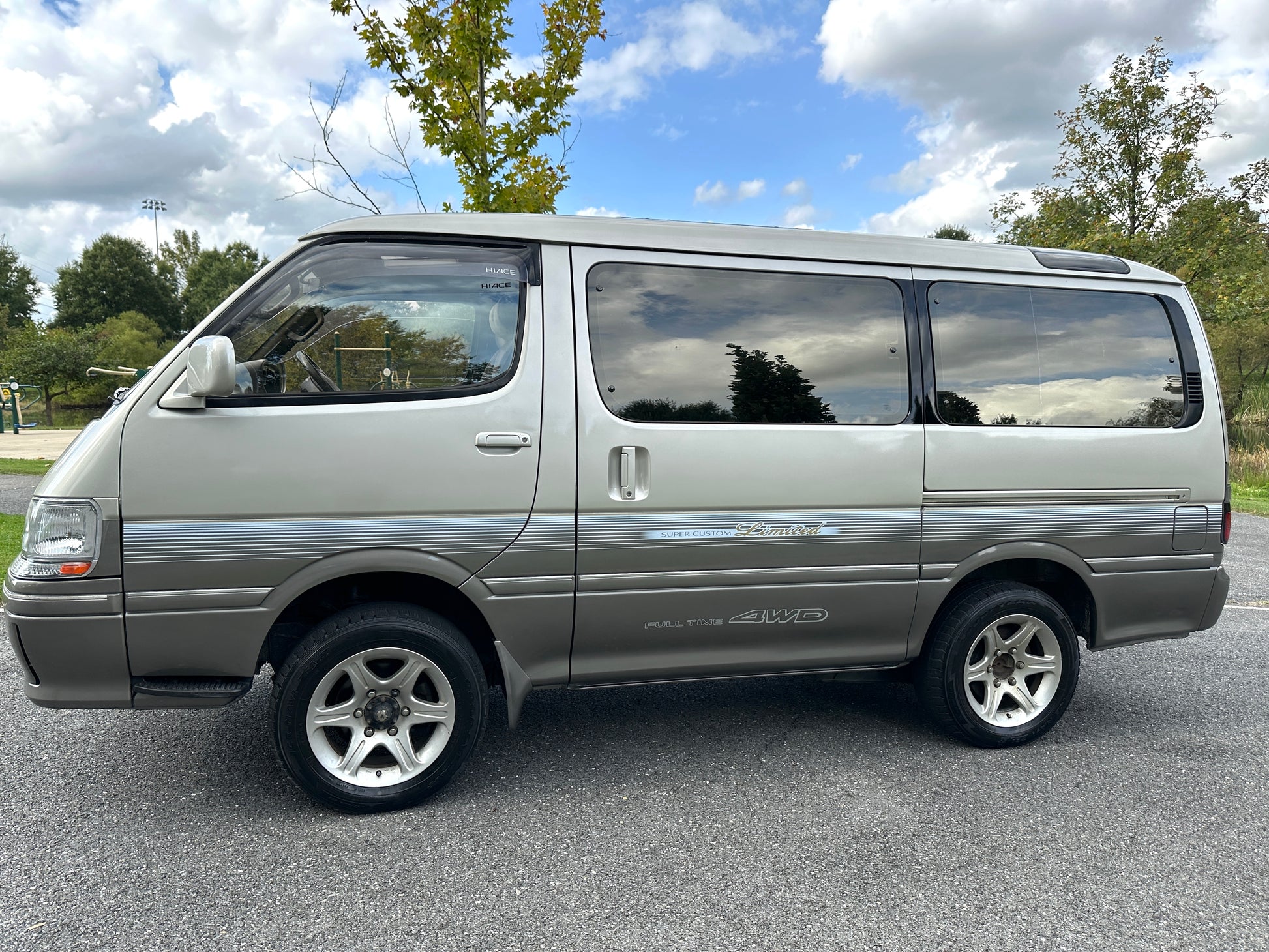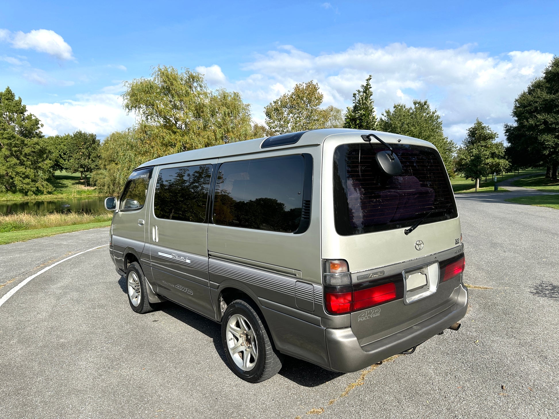 1996 TOYOTA HIACE SUPER CUSTOM LIMITED KZH106 ——128,056 Miles, “1KZ-TE”, 3.0 Liter Inline 4, Turbo Diesel, Automatic Transmission, Full Time 4WD, SRS AIRBAGS, Venting Front Sunroof, Massive Central Sunroof, Power Rear Sunroof, Two-Tone Paint, Brown Cloth Upholstery, Factory 3rd Row, 180 Degree Swivel Middle Row, Full Flat Folding Seats, Dual Zone Climate Control, Power Windows, Power Retractable Mirrors, Power Locks, Soft Closing Sliding Door, Aftermarket Wheels, DIGITAL INSTRUMENT CLUSTER.