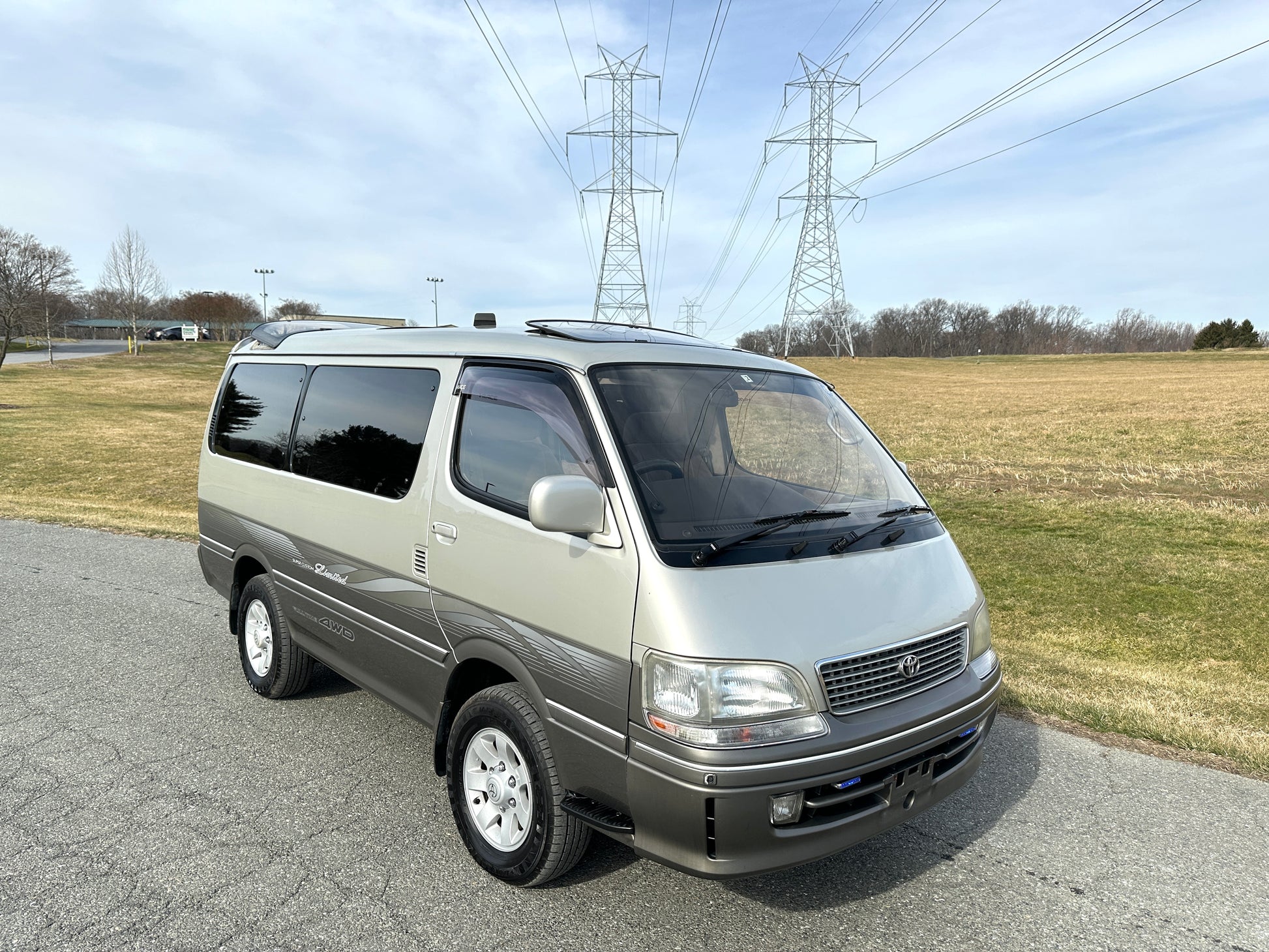 1996 TOYOTA HIACE SUPER CUSTOM LIMITED KZH106 ——113,886 Miles, “1KZ-TE”, 3.0 Liter Inline 4, Turbo Diesel, Automatic Transmission, Full Time 4WD, ABS, SRS AIRBAGS, Venting Front Sunroof, Massive Central Sunroof, Power Rear Sunroof, Two-Tone Paint, Brown Cloth Upholstery, Factory 3rd Row, 180 Degree Swivel Middle Row, Full Flat Folding Seats, Dual Zone Climate Control, Power Windows, Power Retractable Mirrors, Power Locks, Soft Closing Sliding Door, OEM Wheels, DIGITAL INSTRUMENT CLUSTER, BACK AND CLEARANCE SONAR.