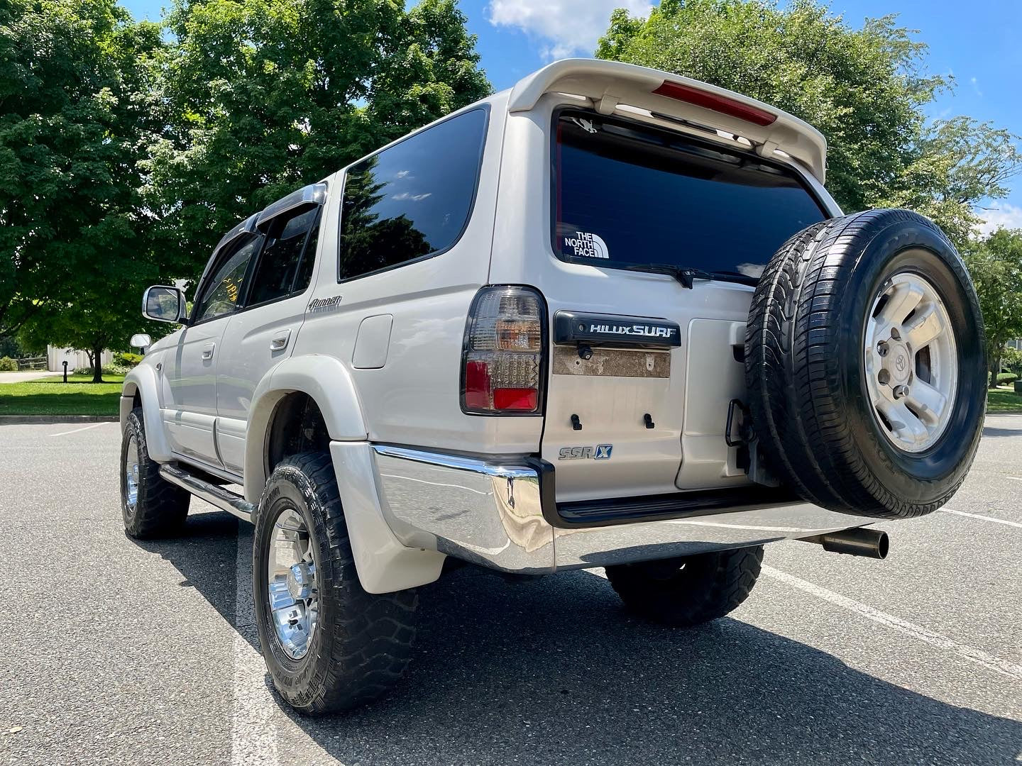 1996 Toyota Hilux Surf KZN185 SSR-X ——127K miles, “1KZ-TE” 3.0 Liter Inline 4, Turbo Diesel, Four-Speed Automatic Transmission With Overdrive And A Transfer Case With High And Low Ranges, Selectable 4WD, Locking Center Differential, Dual SRS Airbags, SUNROOF, REVERSE CAMERA, Field Monitor, White Paint, Leather Seat Covers, Aftermarket, Automatic Climate Control, Cold A/C, TEMS Suspension, Power Back Glass, Power Windows, Power Locks, OEM Rainguards, Titled in MARYLAND.
