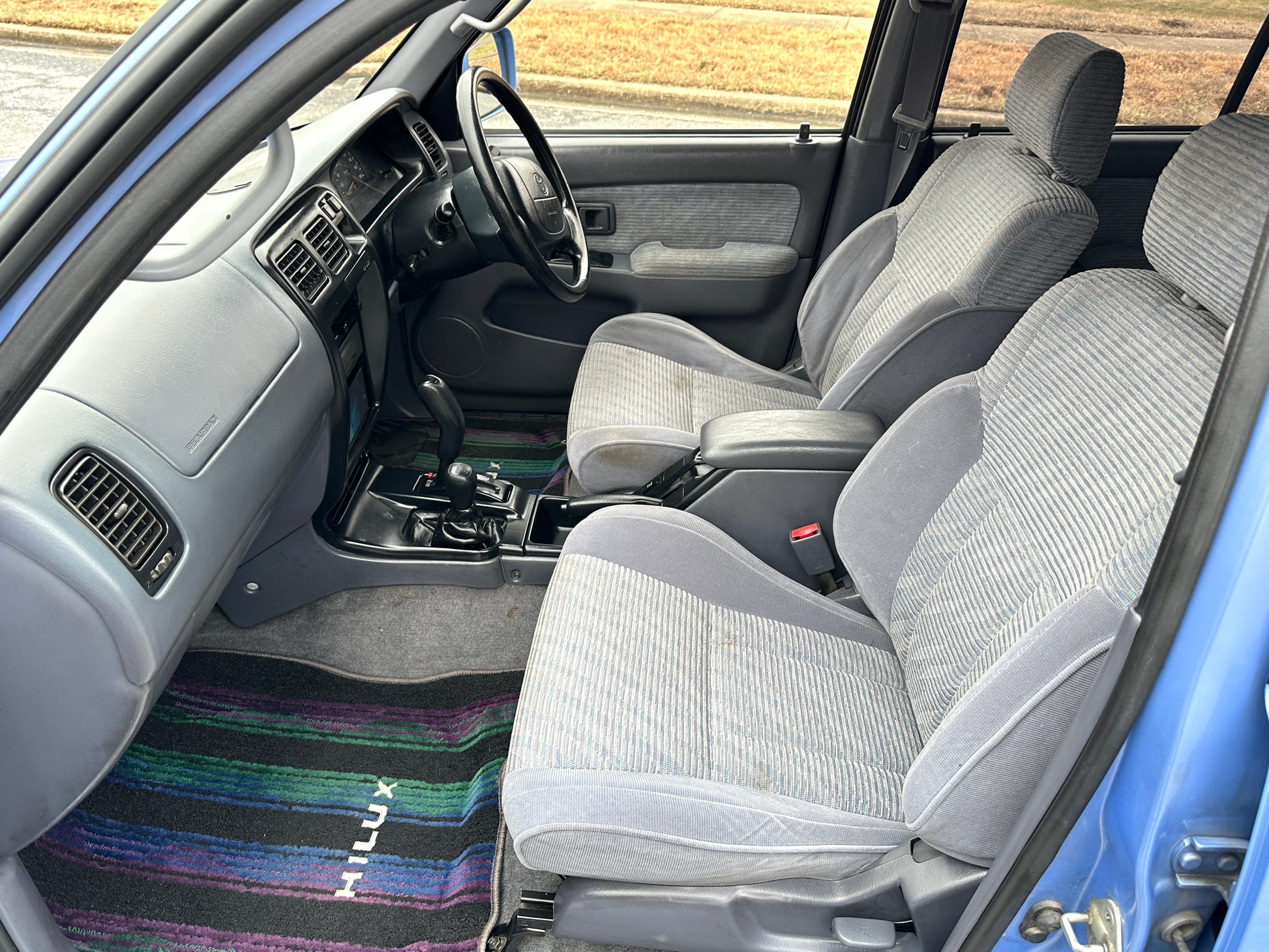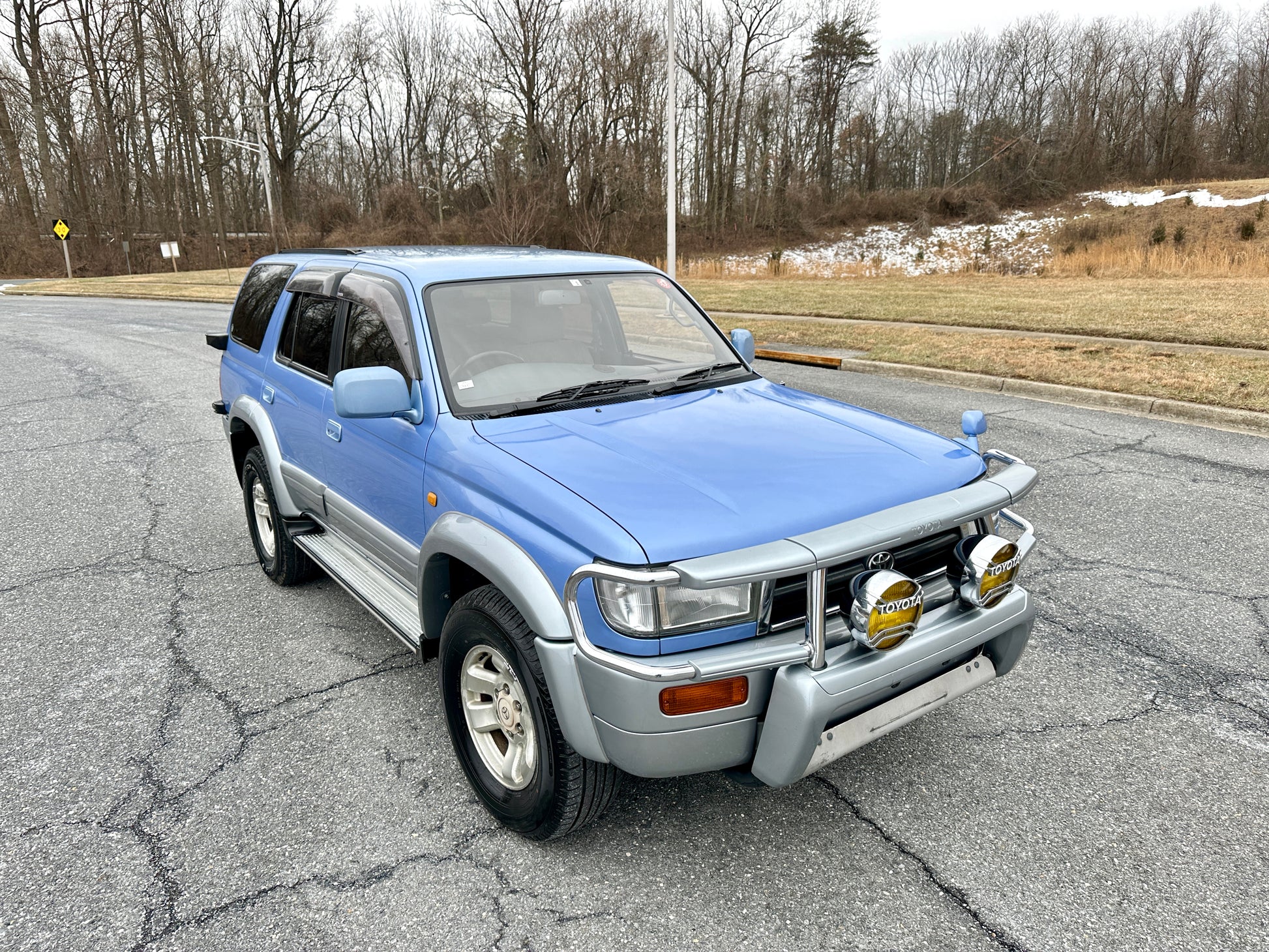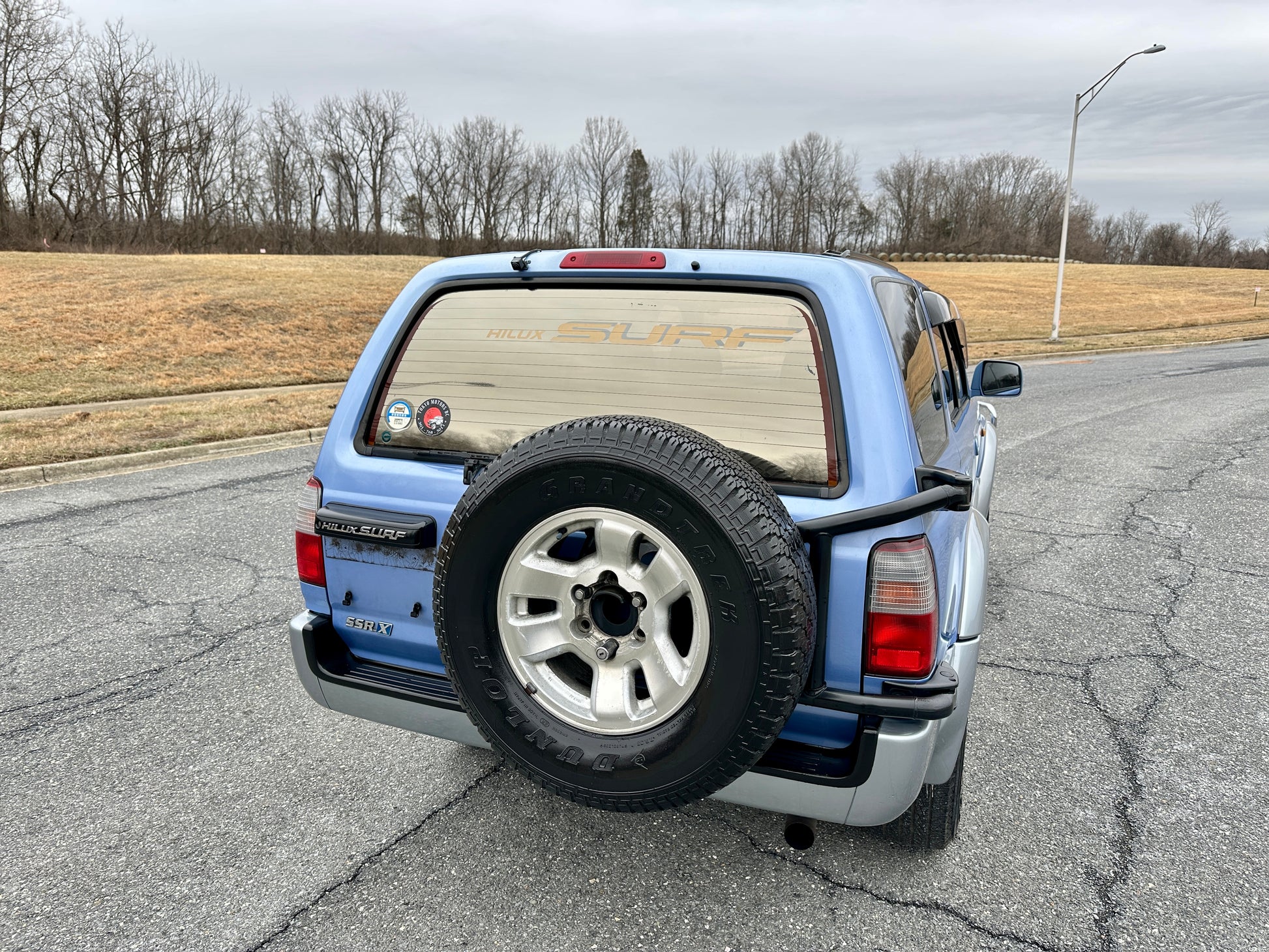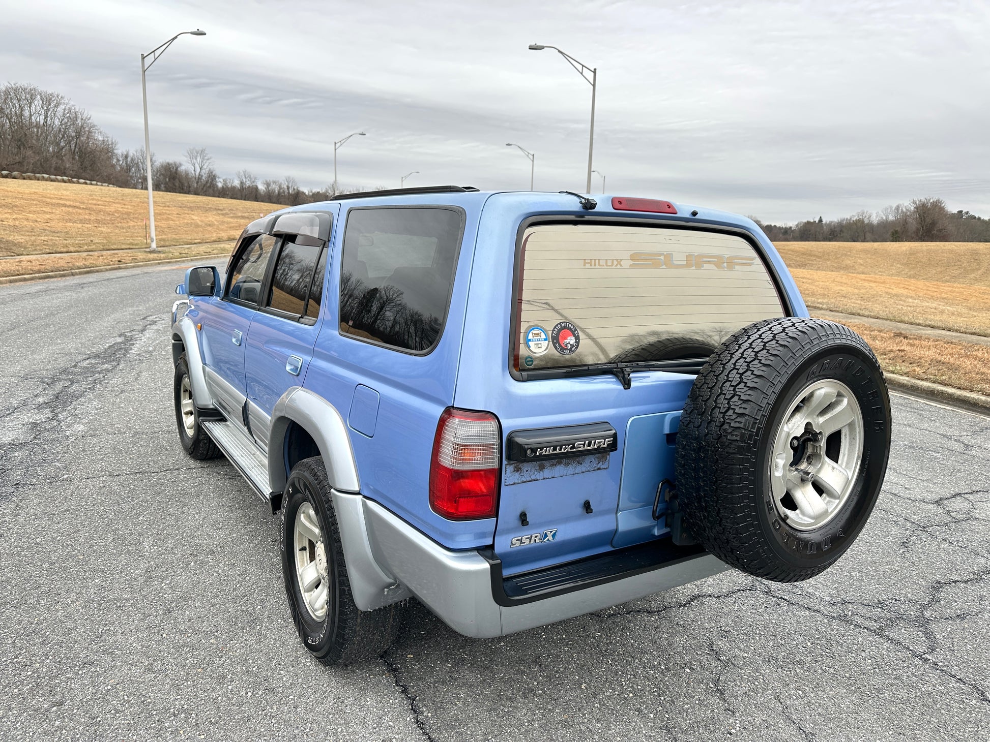 1996 Toyota Hilux Surf KZN185 SSR-X ——128,056 Miles, “1KZ-TE” 3.0 Liter Inline 4, Turbo Diesel, Automatic Transmission, Transfer Case With High And Low Ranges, Selectable 4WD, Locking Center Differential, Light Blue Pearl Metallic Paint, Blue Patterned Cloth Upholstery, ABS, SRS Airbags, Power Windows, Power Locks, Power Back Glass, Power Mirrors, Automatic Dual-Zone Climate Control, Idle-Up Switch, SWING-OUT SPARE TIRE CARRIER, FACTORY BASH-BAR WITH OEM FOG LIGHTS, RARE HILUX BRANDED CARPETS.