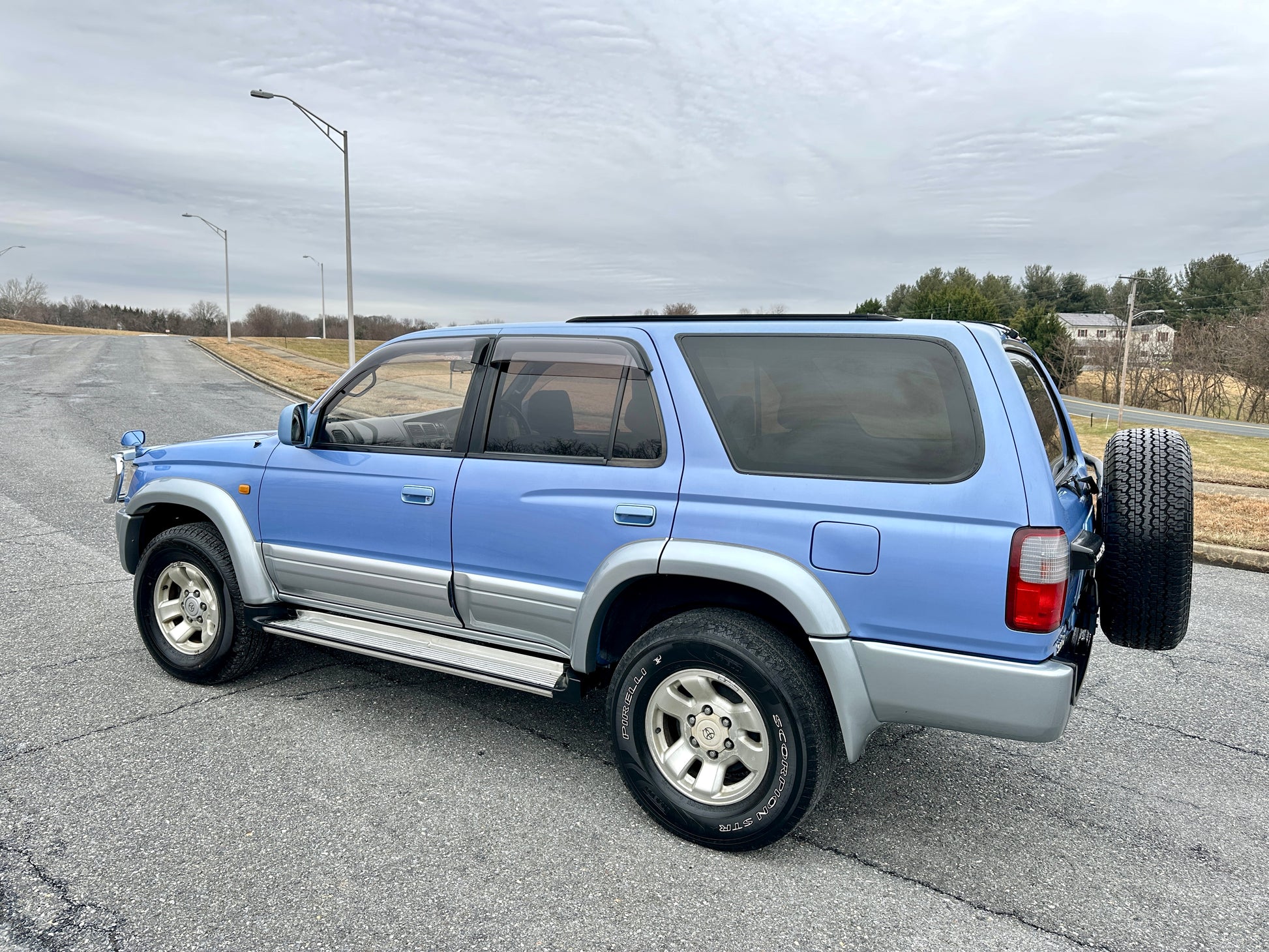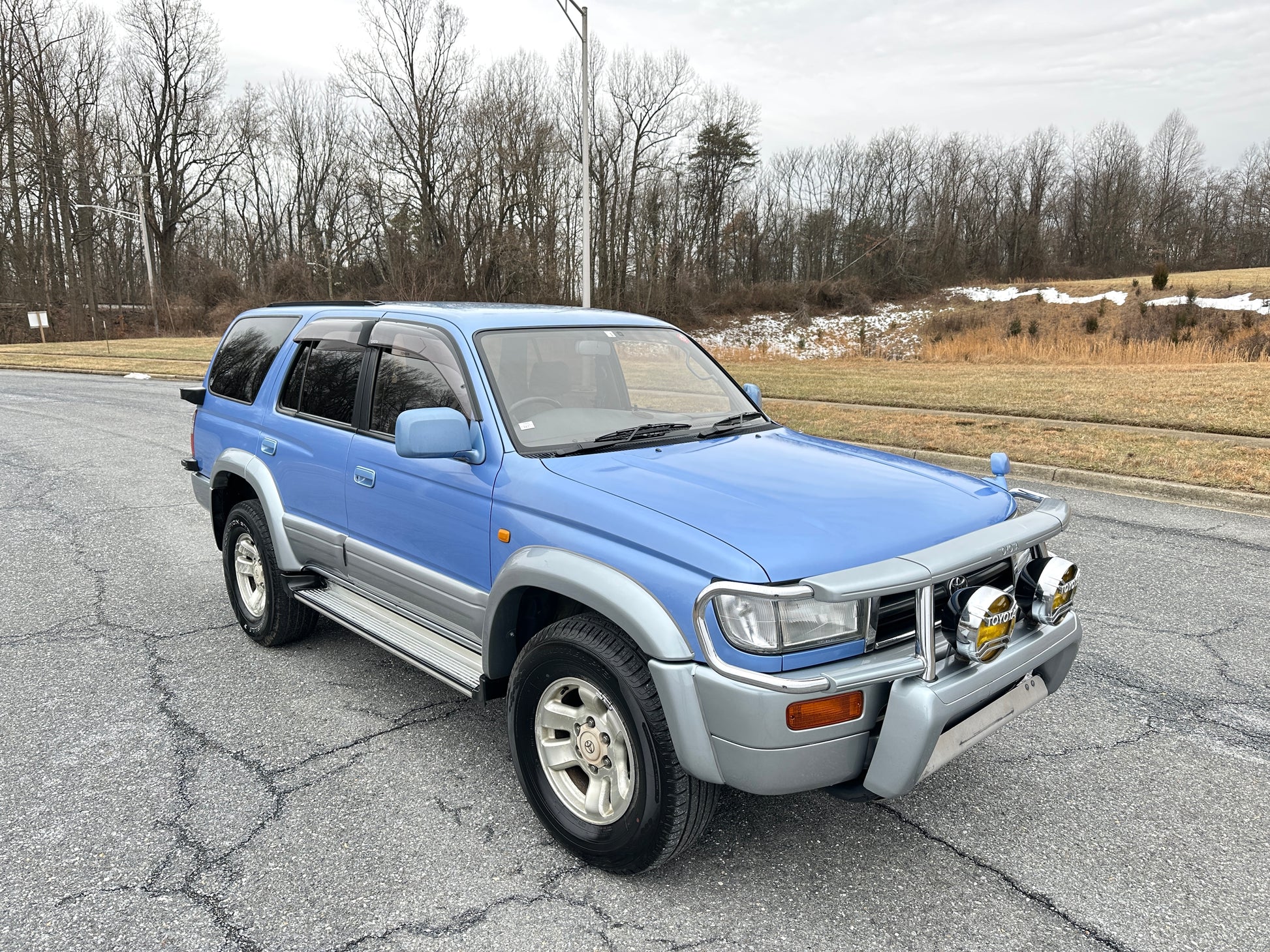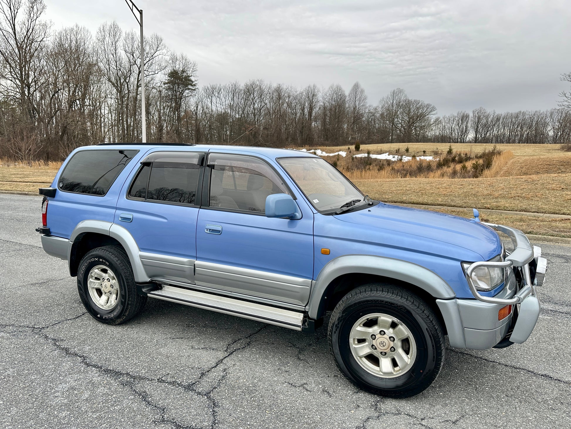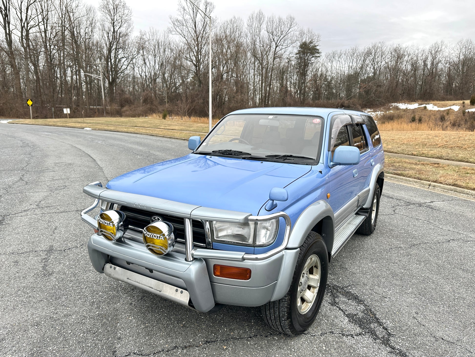 1996 Toyota Hilux Surf KZN185 SSR-X ——128,056 Miles, “1KZ-TE” 3.0 Liter Inline 4, Turbo Diesel, Automatic Transmission, Transfer Case With High And Low Ranges, Selectable 4WD, Locking Center Differential, Light Blue Pearl Metallic Paint, Blue Patterned Cloth Upholstery, ABS, SRS Airbags, Power Windows, Power Locks, Power Back Glass, Power Mirrors, Automatic Dual-Zone Climate Control, Idle-Up Switch, SWING-OUT SPARE TIRE CARRIER, FACTORY BASH-BAR WITH OEM FOG LIGHTS, RARE HILUX BRANDED CARPETS.