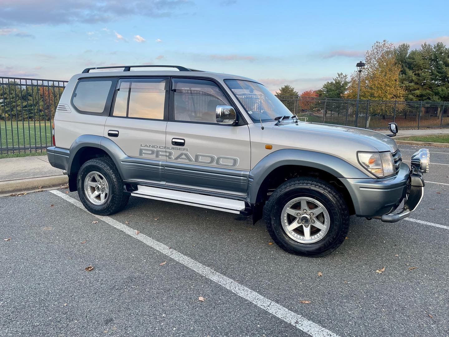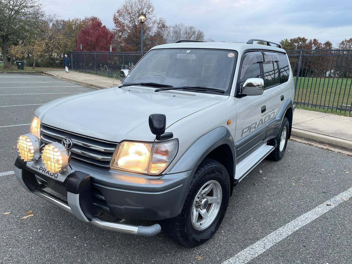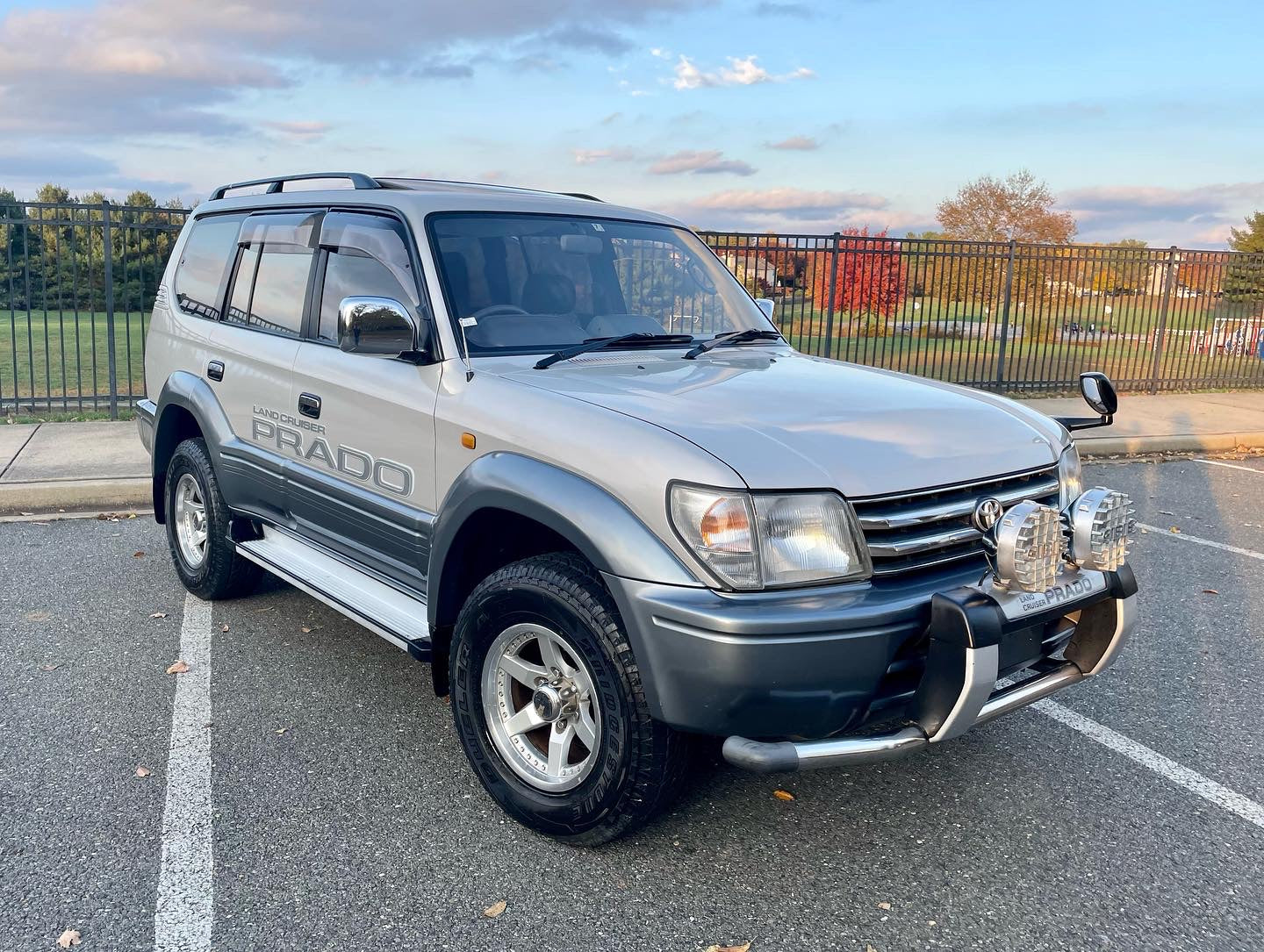 1996 Toyota Land Cruiser Prado TX KZJ95——142K miles, “1KZ-TE” 3.0 Liter Inline 4, Turbo Diesel, Automatic Transmission, Transfer Case With High And Low Ranges, Full-Time 4WD, Locking Center Differential, Desert Dune Metallic/ Gray Metallic Two-Tone (K03), Blue Cloth Upholstery, Aftermarket Wheels, OEM Rainguards, ABS, Dual SRS Airbags, Field Monitor System, SUNROOF, Third Row Seating, Power Windows, Power Locks, Power Folding Mirrors, Automatic Dual-Zone Climate Control, Privacy Tint.