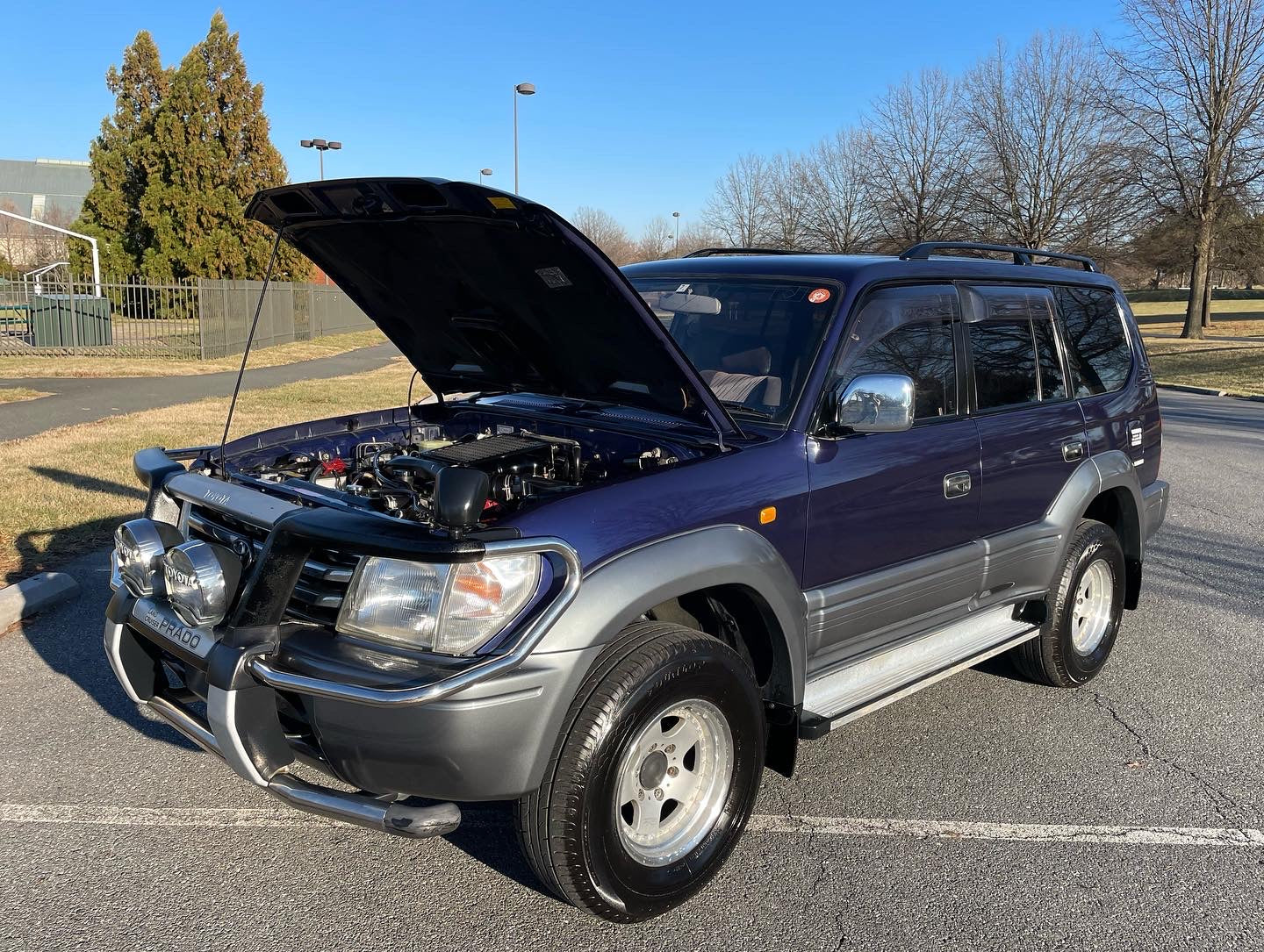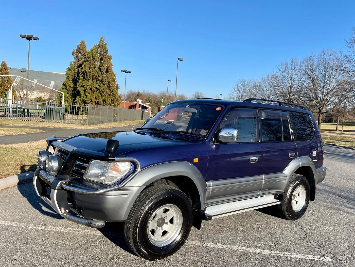1996 Toyota Land Cruiser Prado TX KZJ95——110K miles, “1KZ-TE” 3.0 Liter Inline 4, Turbo Diesel, Automatic Transmission, Transfer Case With High And Low Ranges, Full-Time 4WD, Locking Center Differential, Stellar Blue Pearl/ Gray Metallic Two-Tone (K14), Blue Cloth Upholstery, Aftermarket Wheels, OEM Rainguards, ABS, Dual SRS Airbags, Field Monitor System, SUNROOF, Third Row Seating, Power Windows, Power Locks, Power Folding Mirrors, Automatic Dual-Zone Climate Control, Privacy Tint.