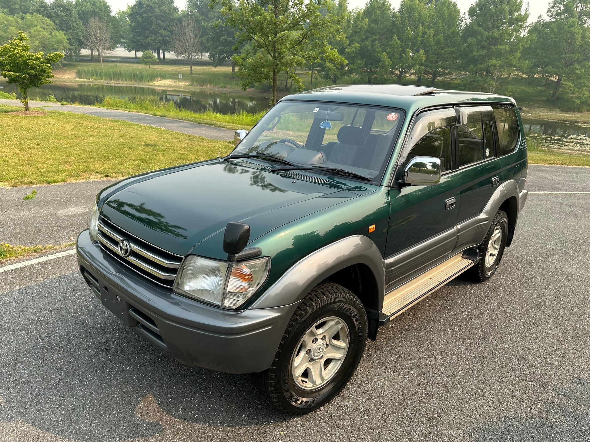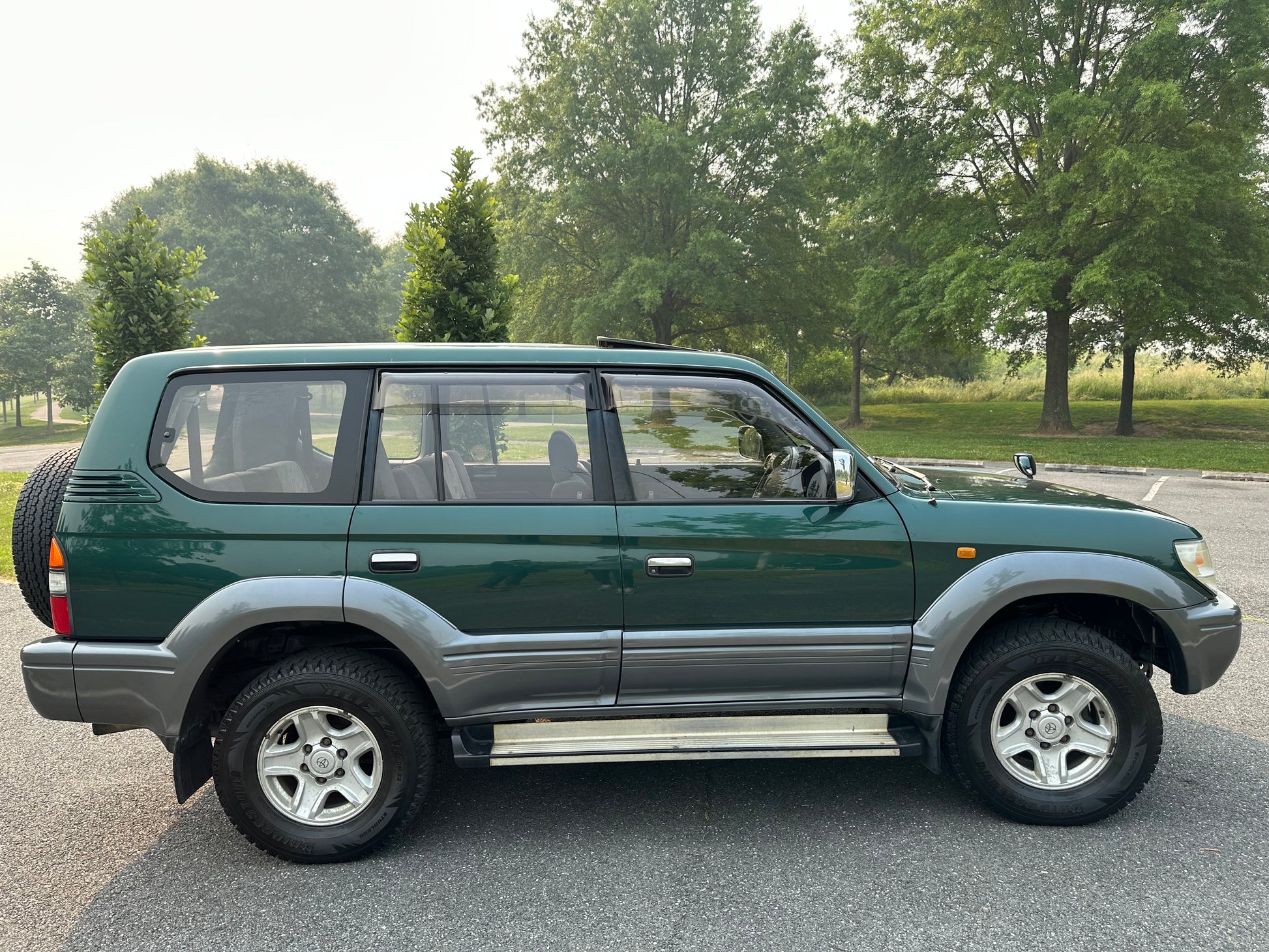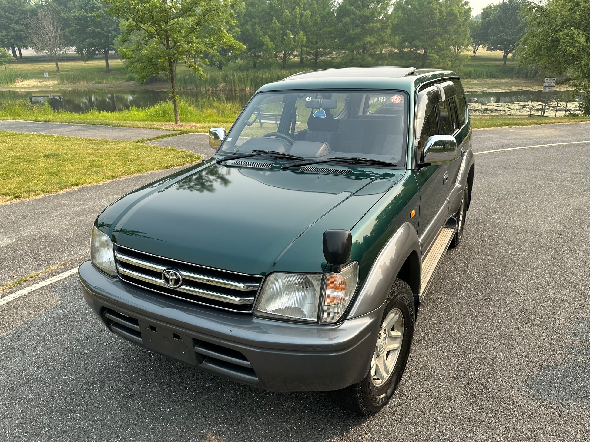 1996 Toyota Land Cruiser Prado TZ KZJ95——126,896 Miles, “1KZ-TE” 3.0 Liter Inline 4, Turbo Diesel, Automatic Transmission, Transfer Case With High And Low Ranges, Full-Time 4WD, Locking Center Differential, Deep Jewel Green Metallic/ Gray Metallic Two-Tone (K12), Patterned Blue Cloth Upholstery, SUNROOF, REAR OVERHEAD A/C VENTS, 3RD ROW SEATS, OEM Wheels, OEM Rainguards, ABS, Dual SRS Airbags, Field Monitor System, Power Windows, Power Locks, Power Folding Mirrors, Automatic Dual-Zone Climate Control.
