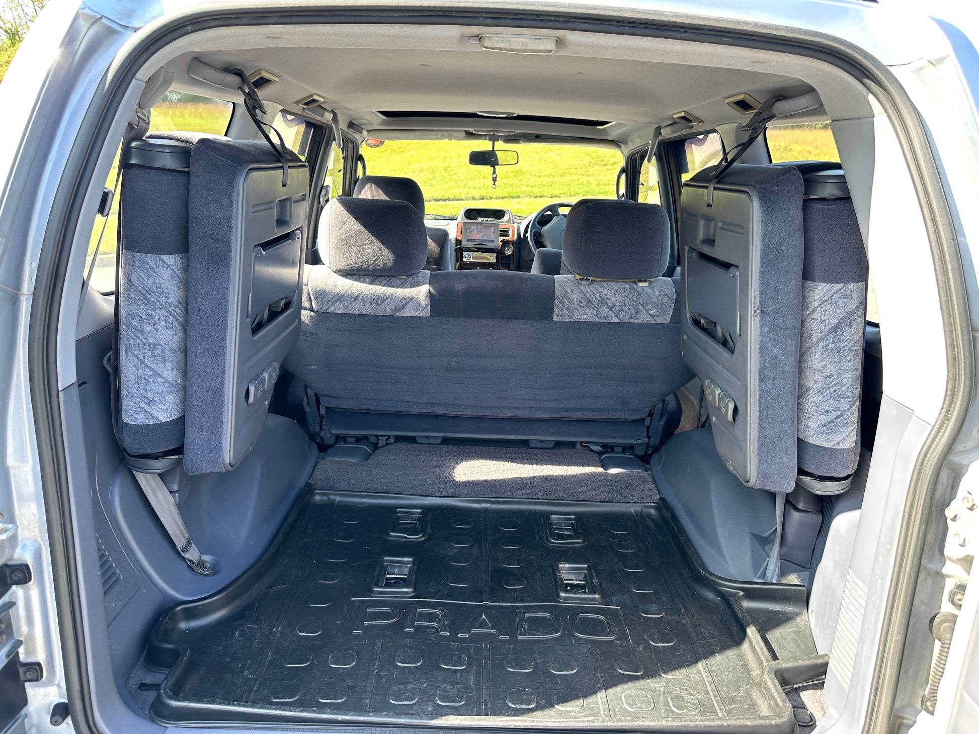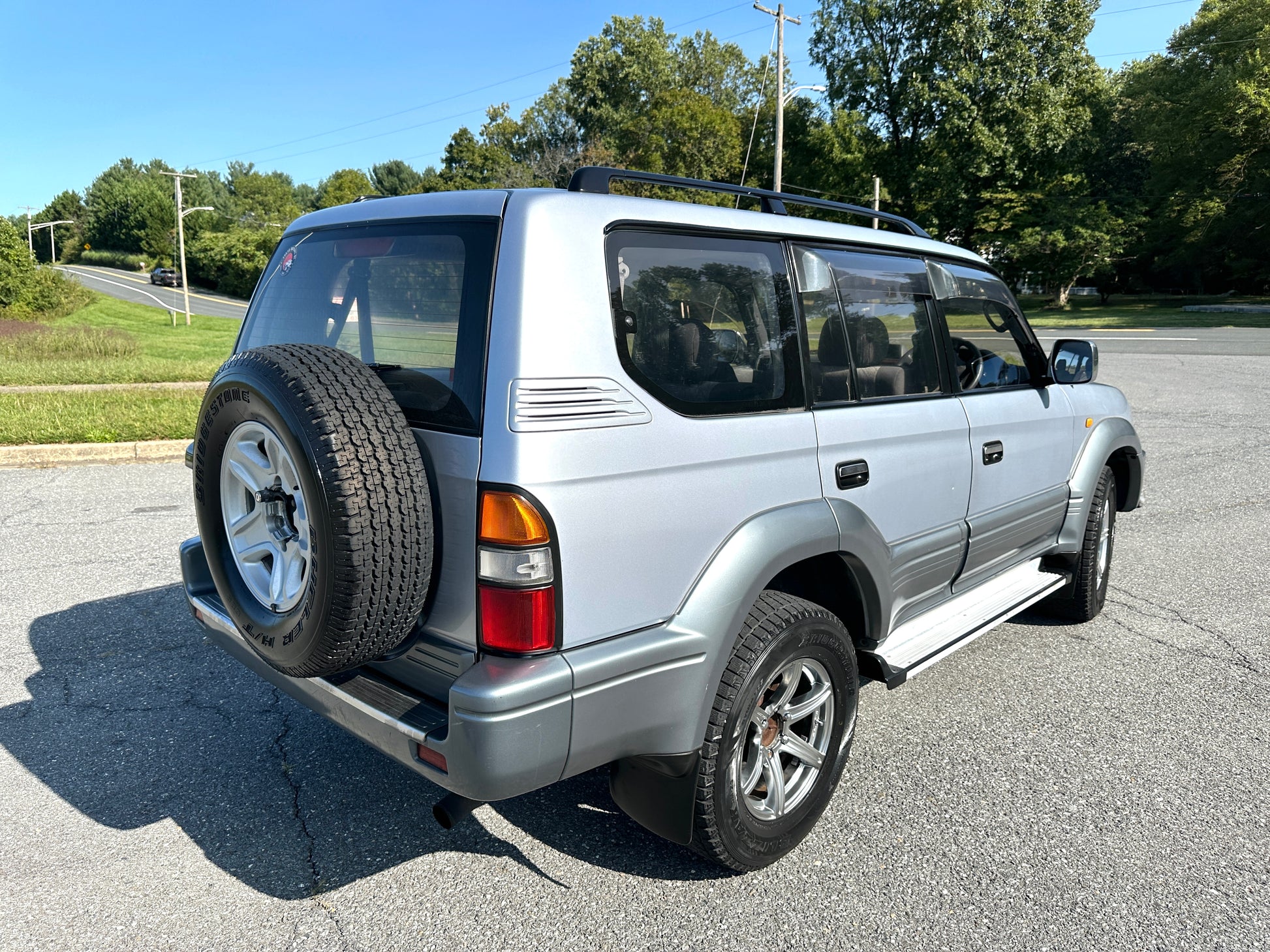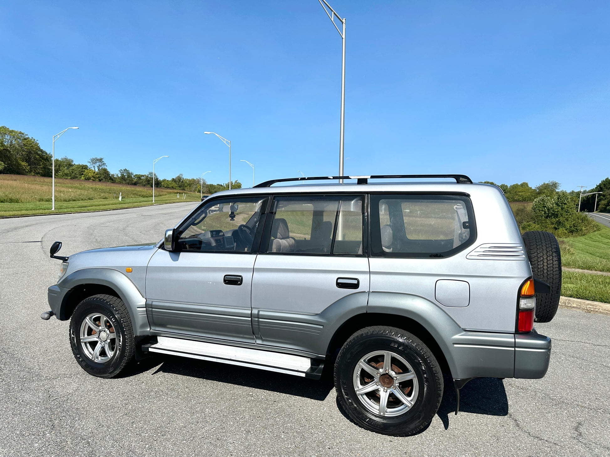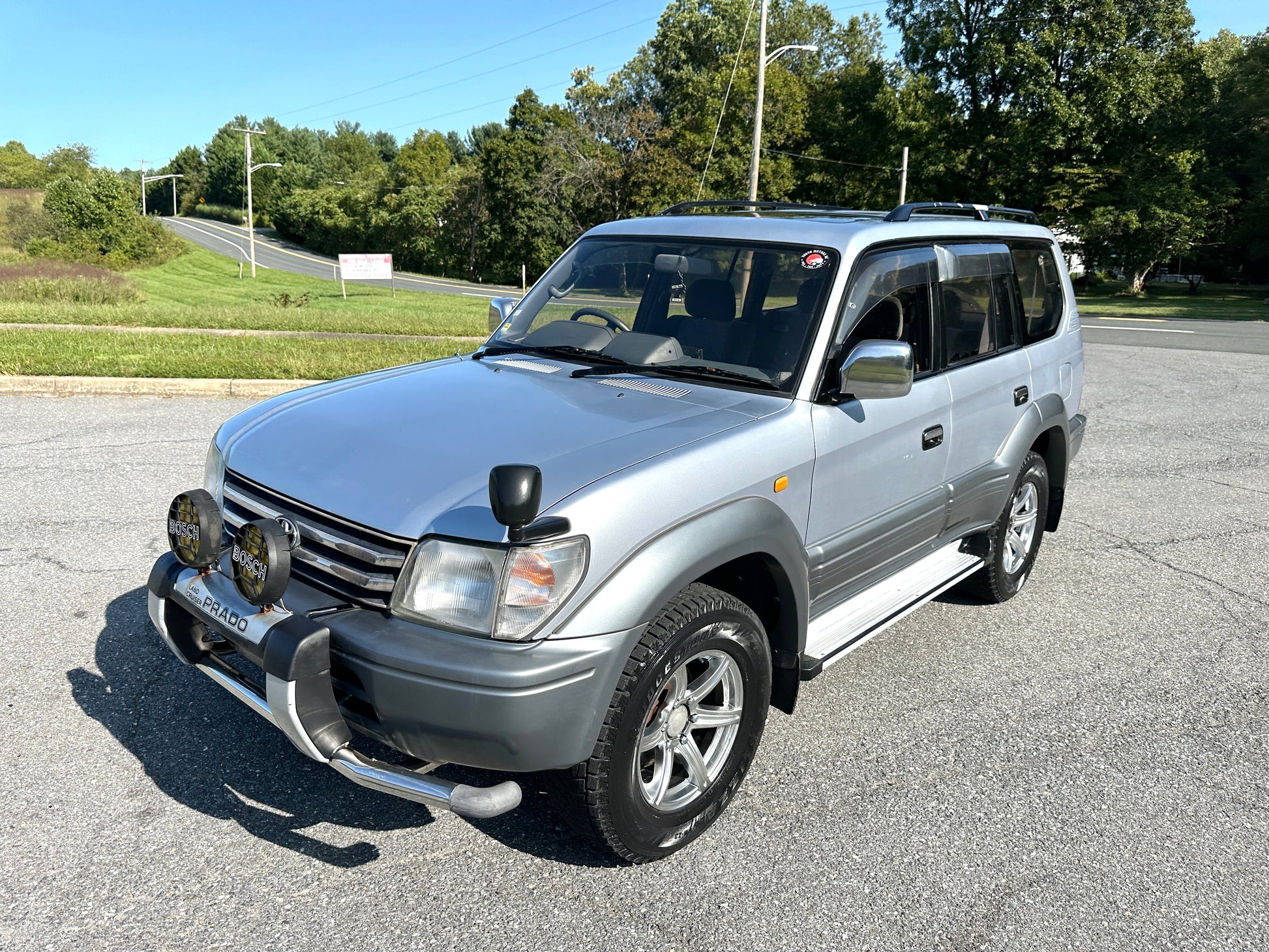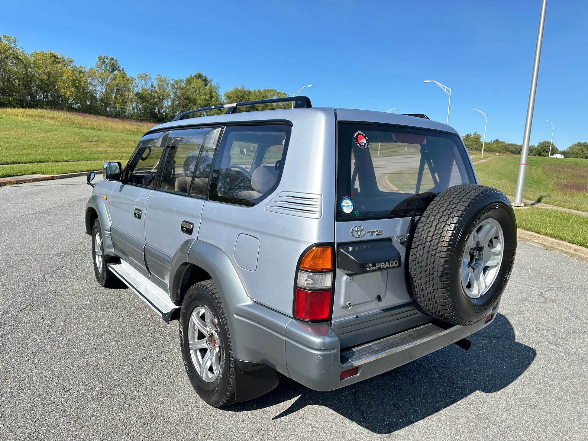 1996 Toyota Land Cruiser Prado TZ KZJ95——84,695 Miles, “1KZ-TE” 3.0 Liter Inline 4, Turbo Diesel, Automatic Transmission, Transfer Case With High And Low Ranges, Full-Time 4WD, Locking Center Differential, Bluish Silver Metallic/ Gray Metallic Two-Tone (K02), Patterned Blue Cloth Upholstery With Wood Trim, SUNROOF, REAR OVERHEAD A/C VENTS, 3RD ROW SEATS, CENTER DIFF LOCK, Front Bull-Bar With Bosch Fog Lights, OEM Rainguards, ABS, Dual SRS Airbags, Field Monitor System, Power Windows, Power Locks, Power Folding Mirrors, Automatic Dual-Zone Climate Control.