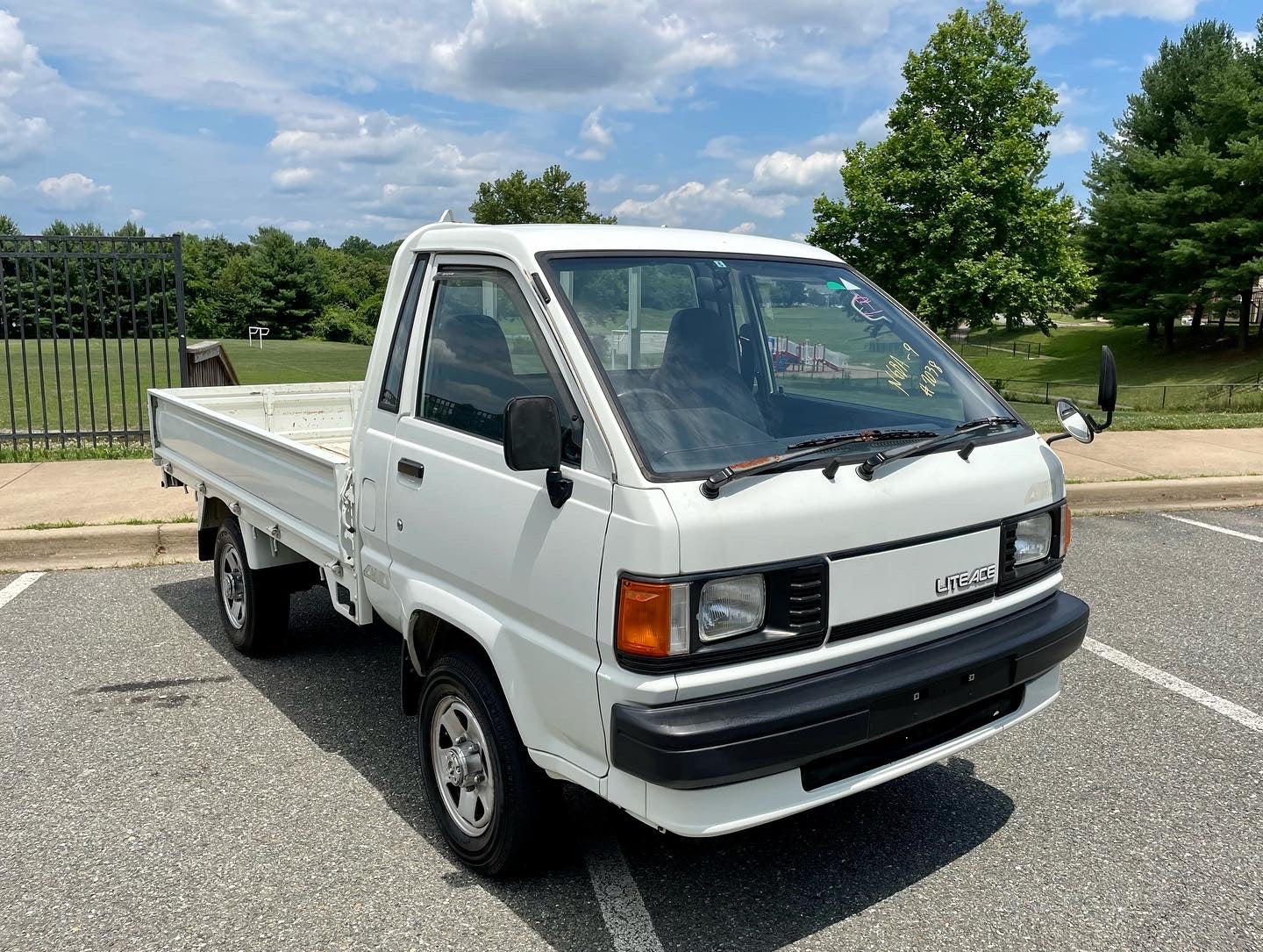 1996 TOYOTA LITEACE CM65——24K miles. “2C” 1974cc, Inline Four, Diesel, Column-Shifted 5 Speed Manual Transmission, Floor Shifted 2 Speed Transfer Case, Push Button 4WD, Manually Locking Aisin Front Hubs, White Paint (048), Vinyl Upholstery, 60/40 Split Seat With A Center Armrest, Manual Windows, Drop-Side Cargo Bed, Bulkhead Bar, AUCTION GRADE 4, EXCELLENT CONDITION, Will Come With A United States Title and Import Documents