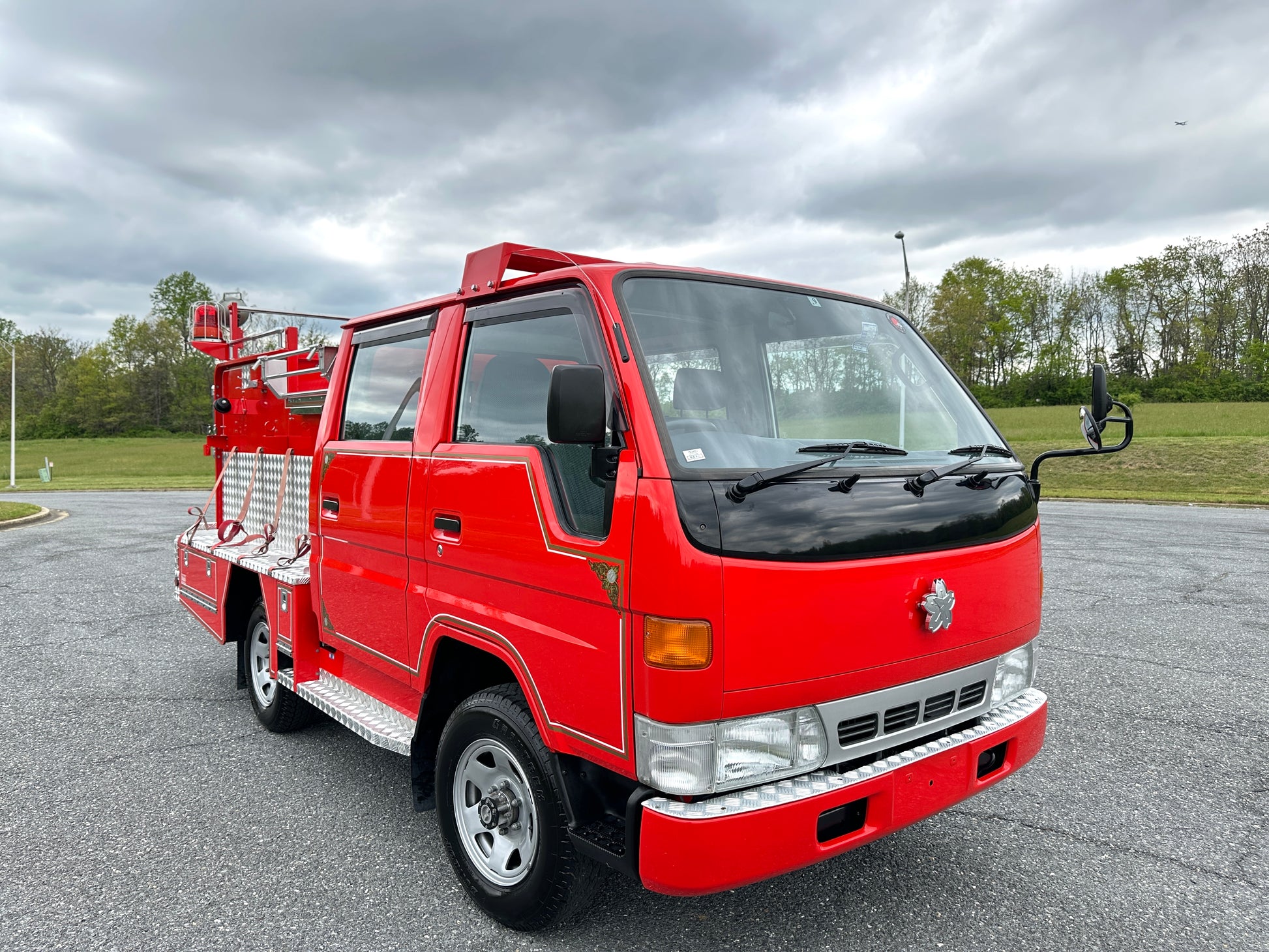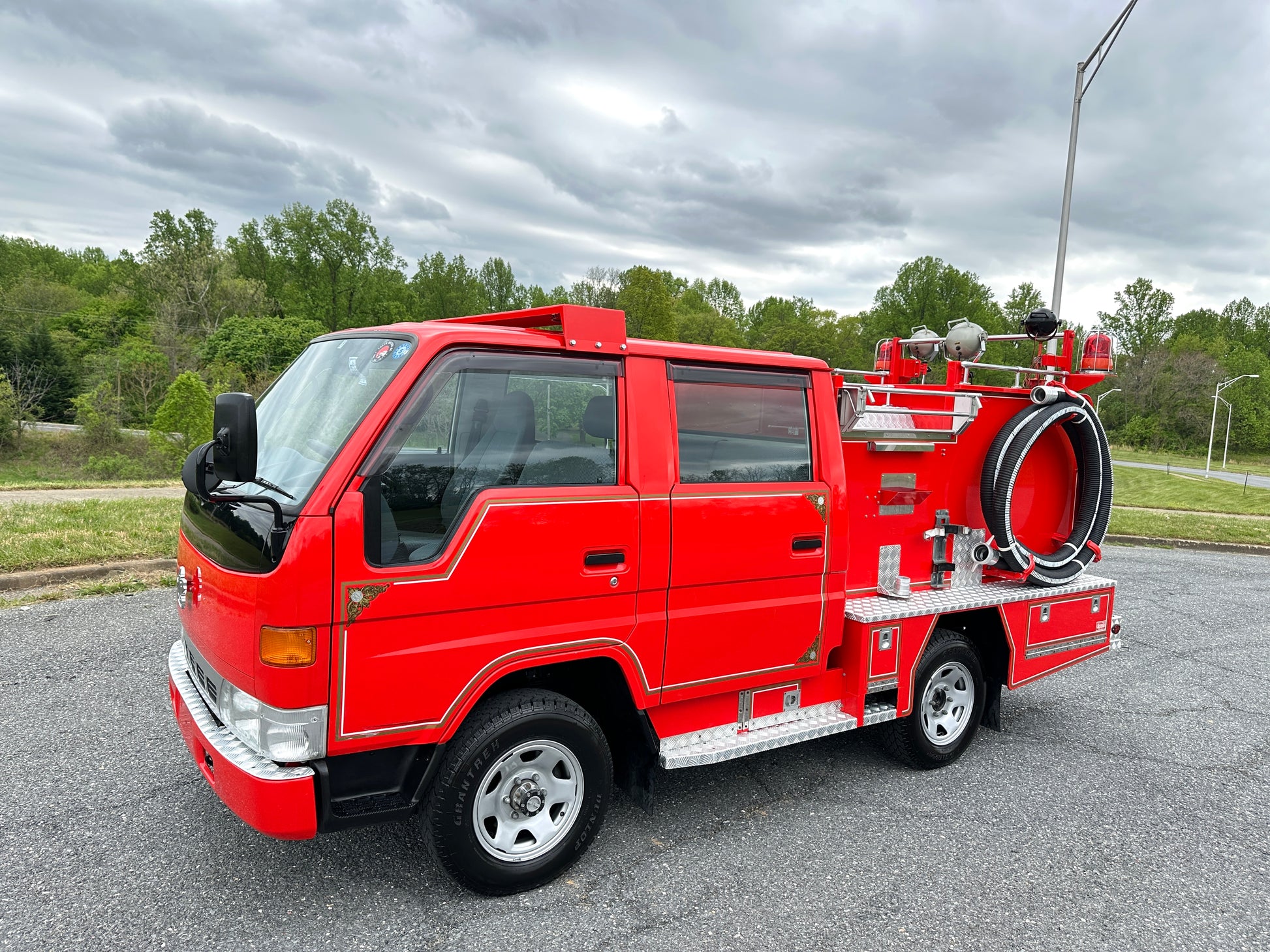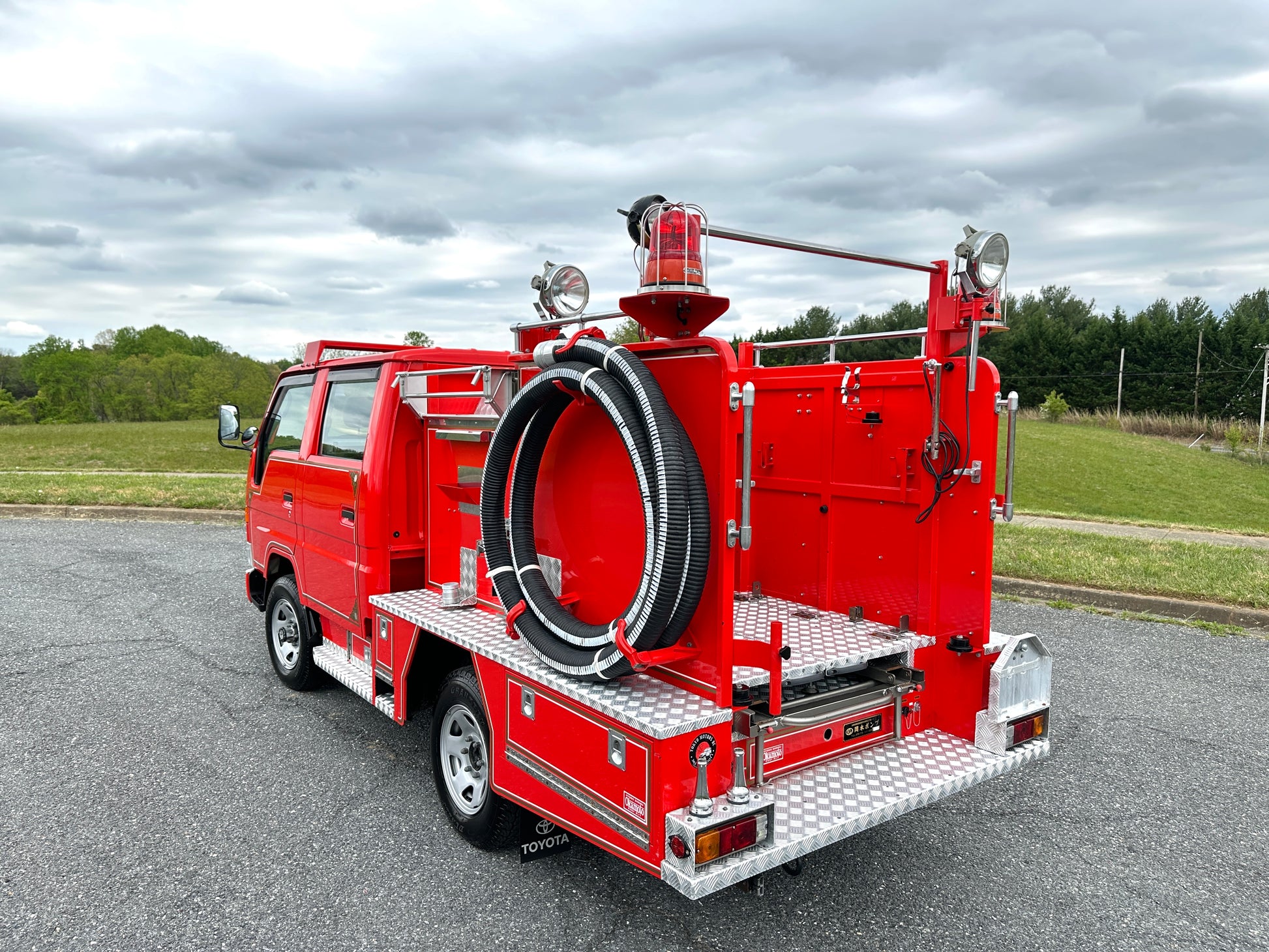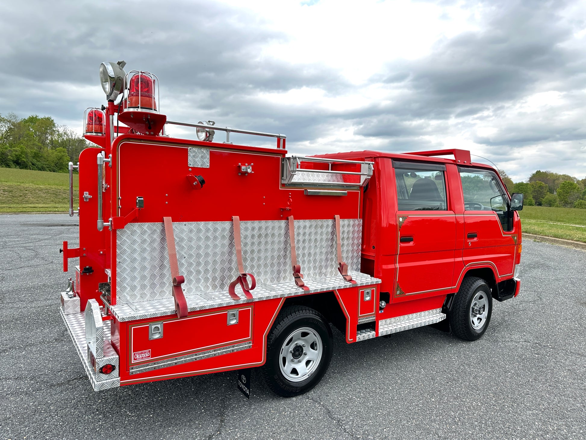 1996 TOYOTA TOYOACE LY151 JAPANESE FIRE TRUCK—10,035 Miles. “3L” 2,779cc, Inline Four, Diesel, 5 Speed Manual Transmission, Selectable 4WD, Floor Shifted 2 Speed Transfer Case, 4WD High And Low Range, Manually Locking Aisin Front Hubs, DOUBLE CAB, Red Paint, Cloth Upholstery, Heat, Manual Windows, Fire Hose & Attachments, IN EXCELLENT CONDITION & ZERO RUST.
