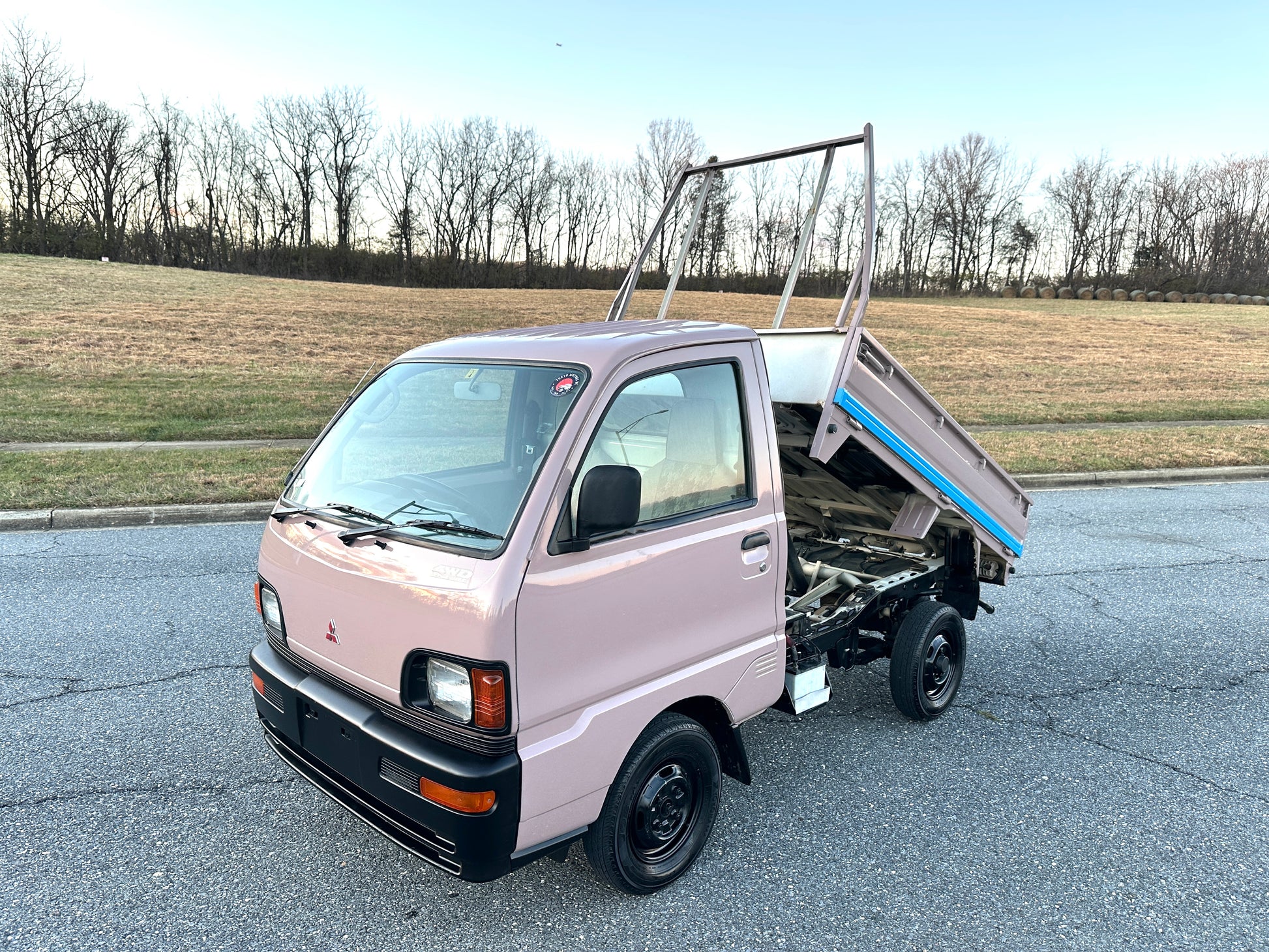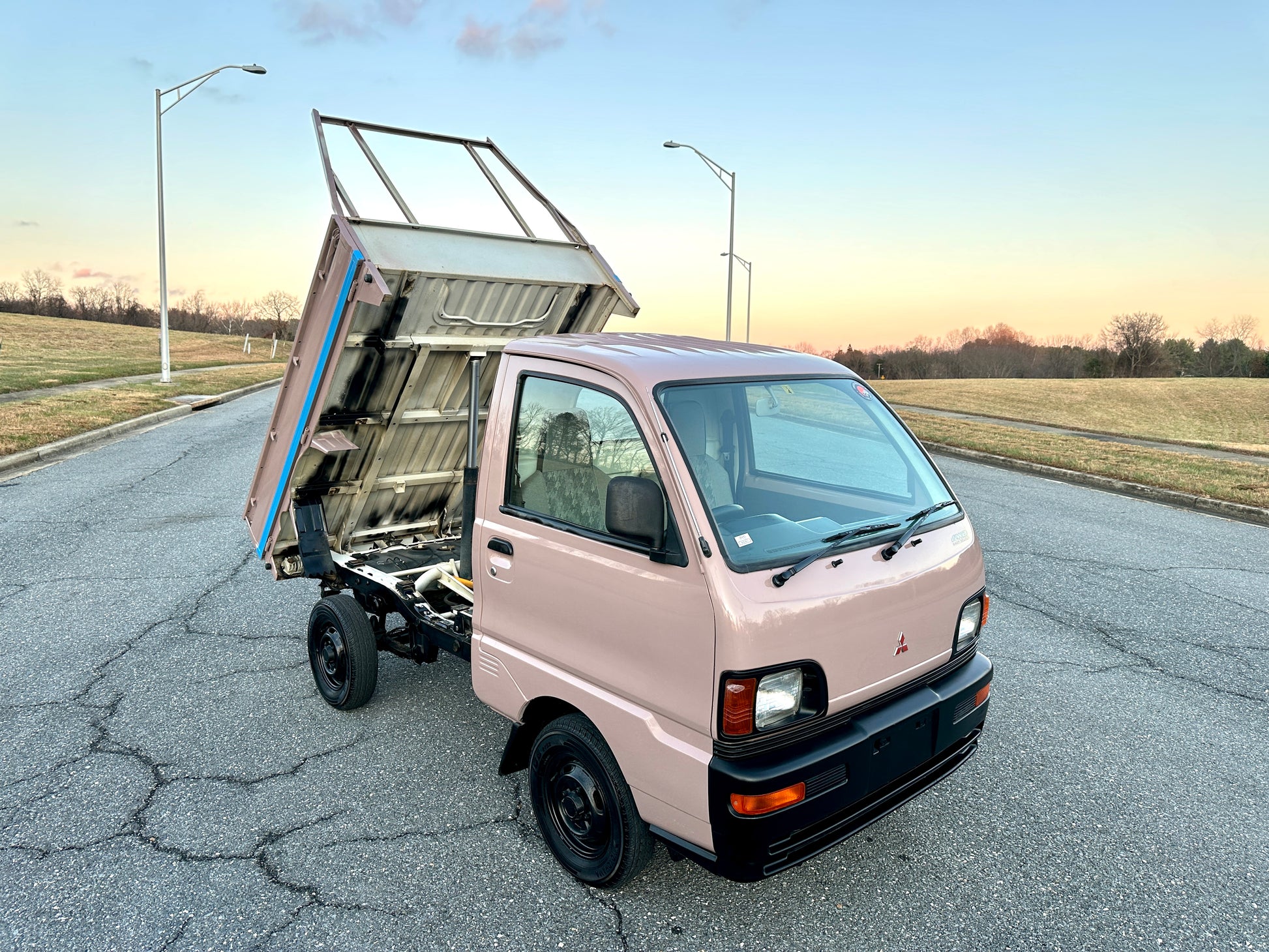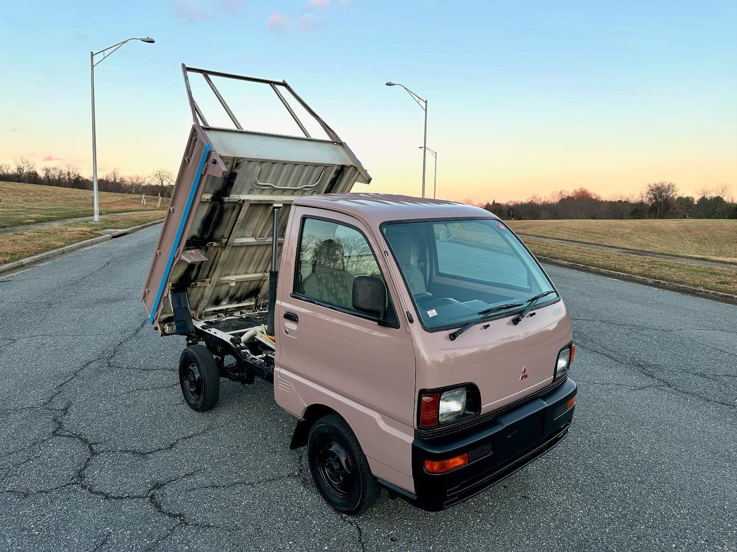 1997 MITSUBISHI MINICAB DUMP TRUCK V-U42T ——45,801 Miles, “3G83” 12 Valve Engine, 660CC Inline-Three, Gasoline, 5-Speed Manual Transmission, Dual Range Transfer Case, Selectable 4WD, CUSTOM PAINT, DUMP BED WITH FOLD-DOWN SIDES, 350kg Load Capacity, AIR CONDITIONING & HEAT.