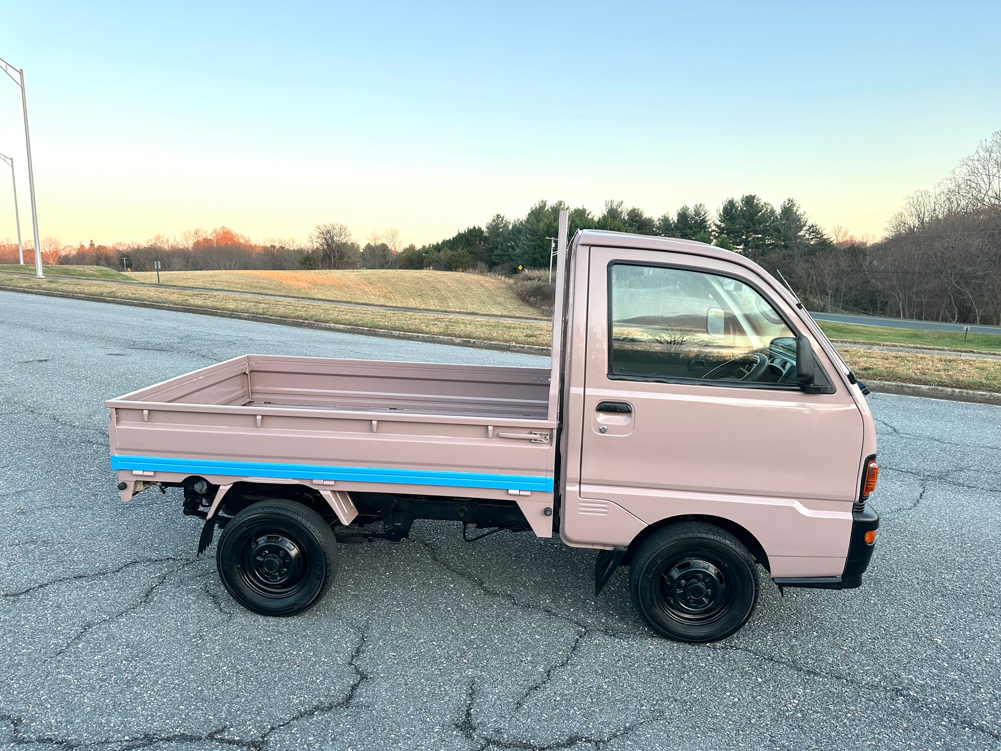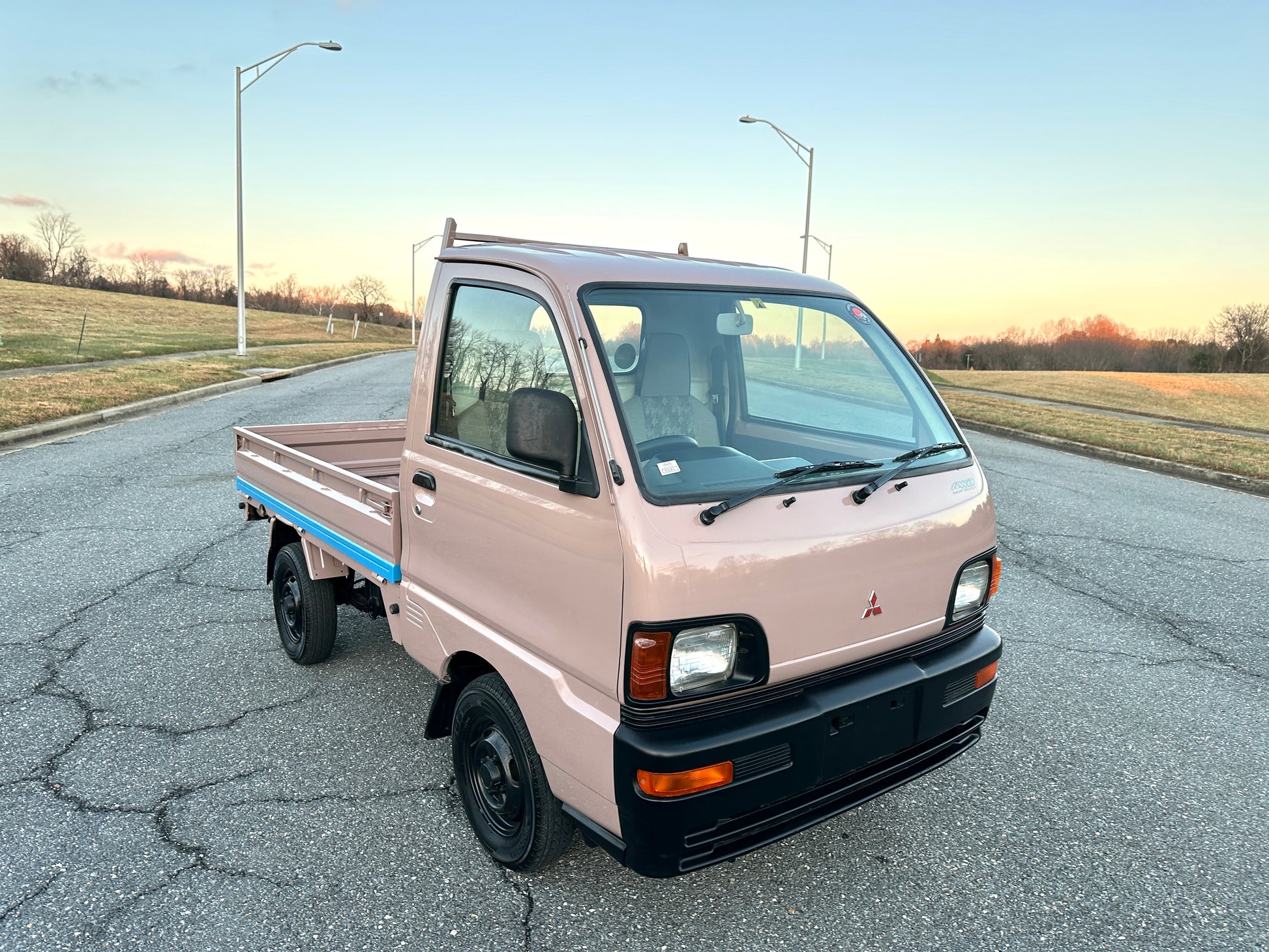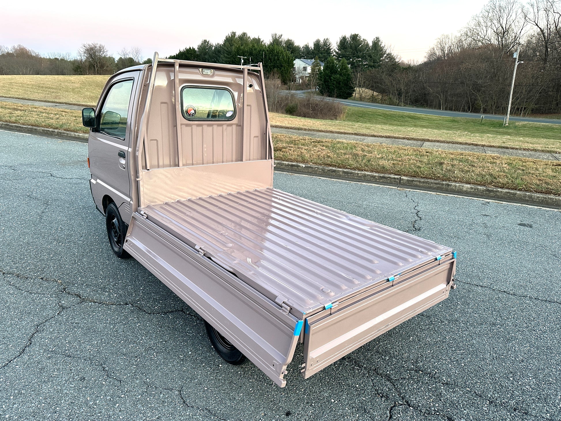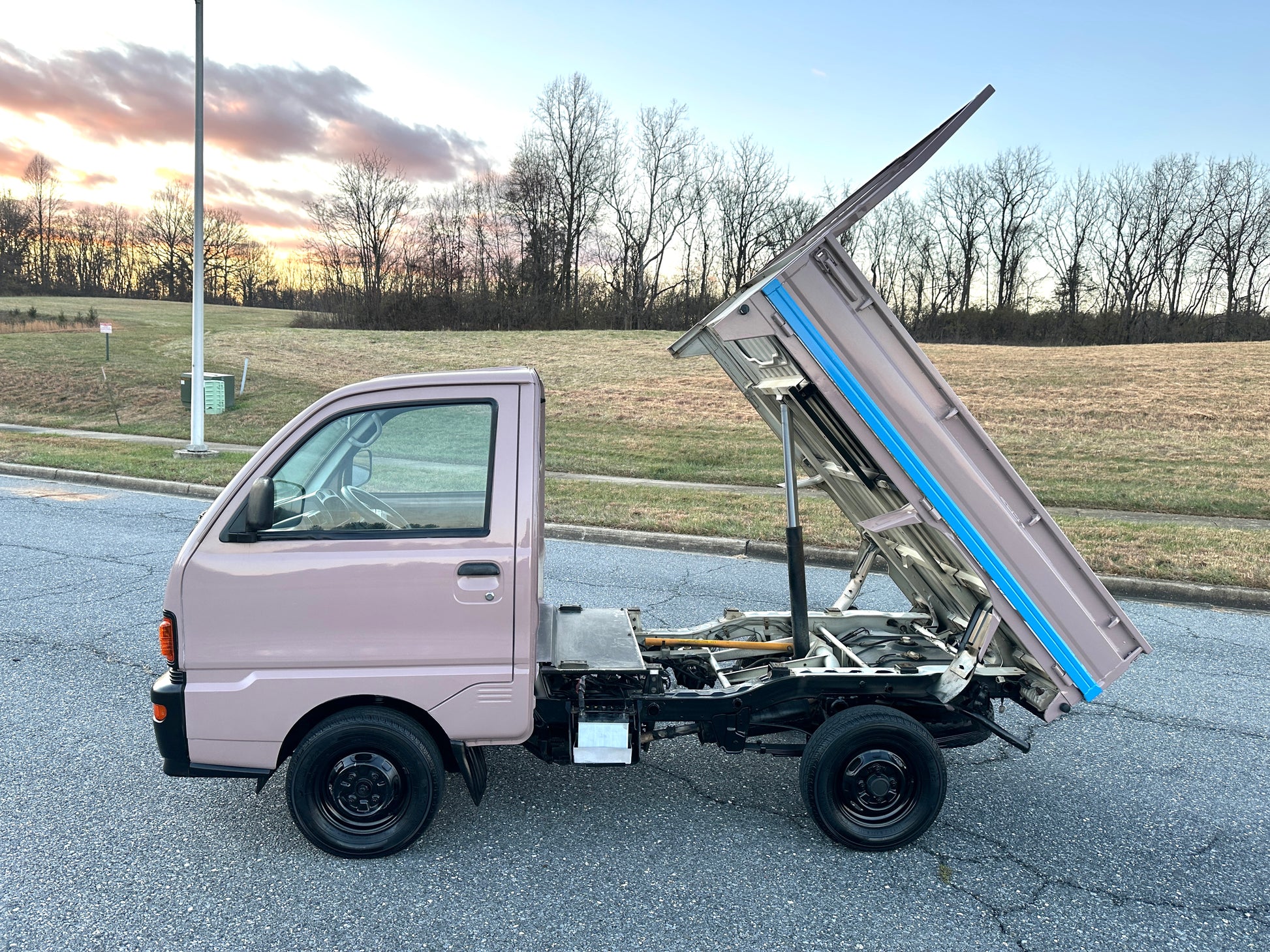 1997 MITSUBISHI MINICAB DUMP TRUCK V-U42T ——45,801 Miles, “3G83” 12 Valve Engine, 660CC Inline-Three, Gasoline, 5-Speed Manual Transmission, Dual Range Transfer Case, Selectable 4WD, CUSTOM PAINT, DUMP BED WITH FOLD-DOWN SIDES, 350kg Load Capacity, AIR CONDITIONING & HEAT.