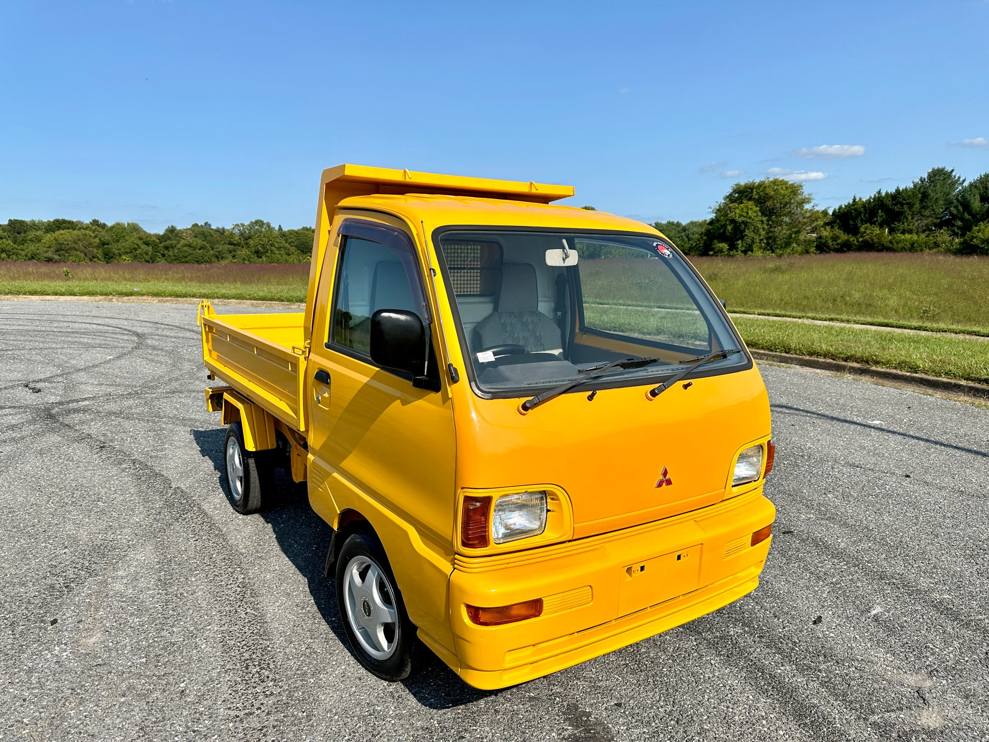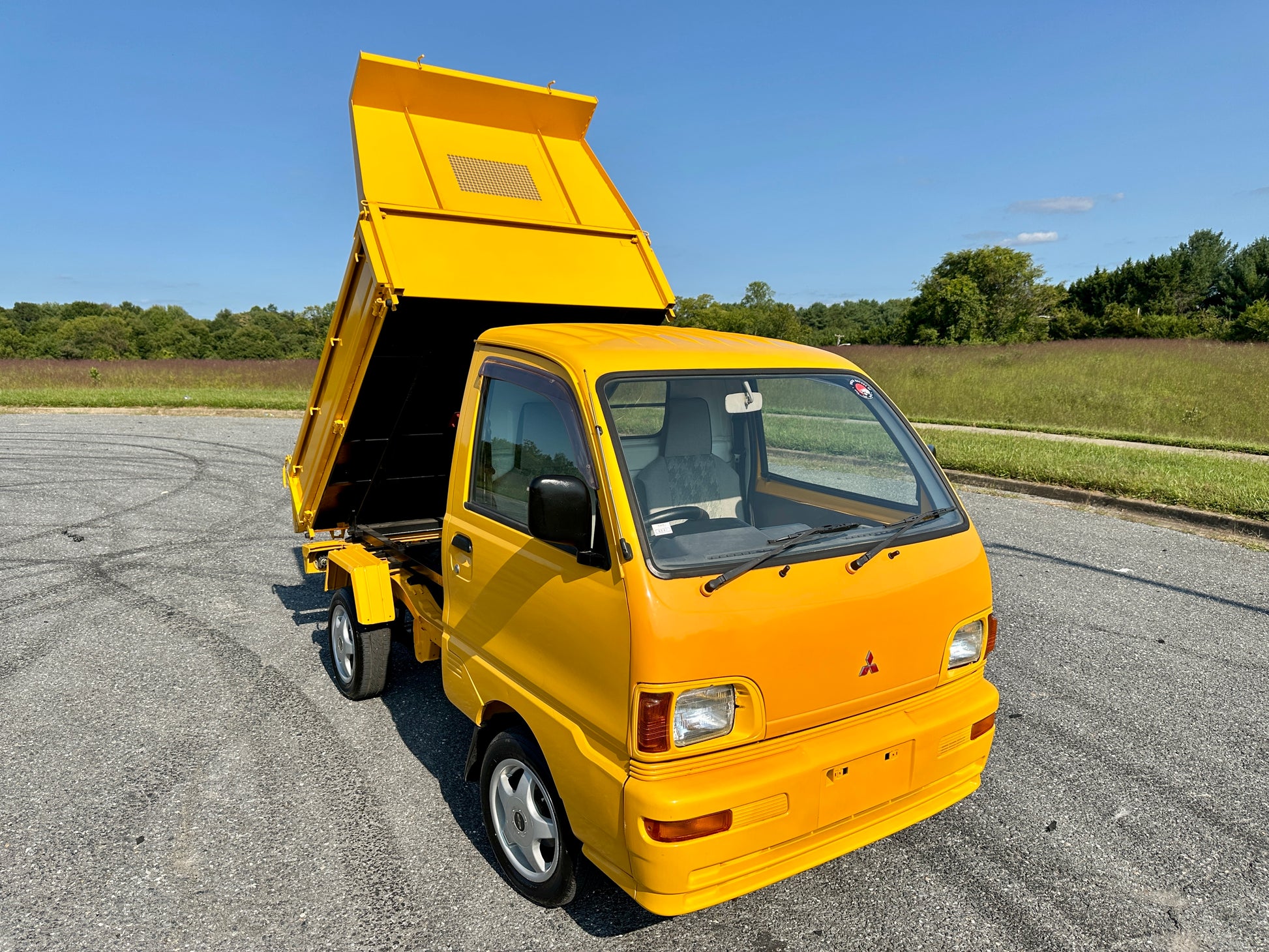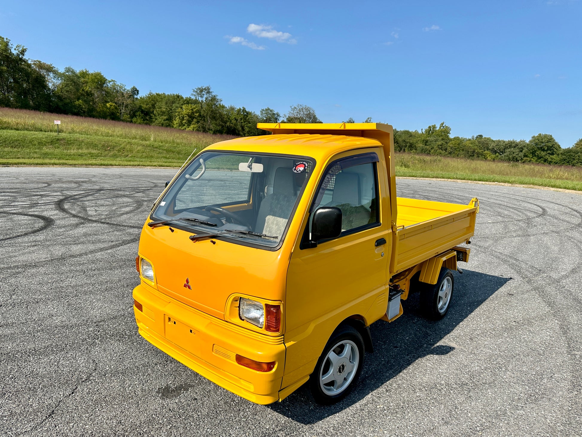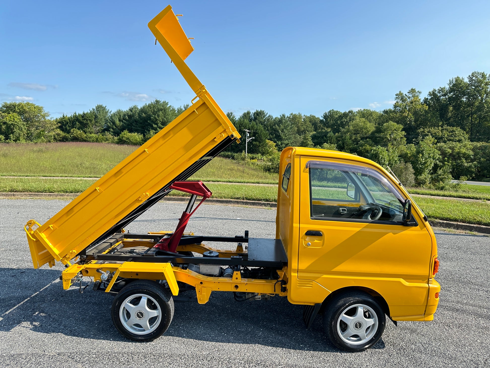 1997 MITSUBISHI MINICAB PTO DUMP TRUCK V-U42T ——19,056 Miles (TMU), “3G83” 12 Valve Engine, 660CC Inline-Three, Gasoline, 5-Speed Manual Transmission, Dual Range Transfer Case, Selectable 4WD, PTO DUMP BED, 350kg Load Capacity, AIR CONDITIONING & HEAT.
