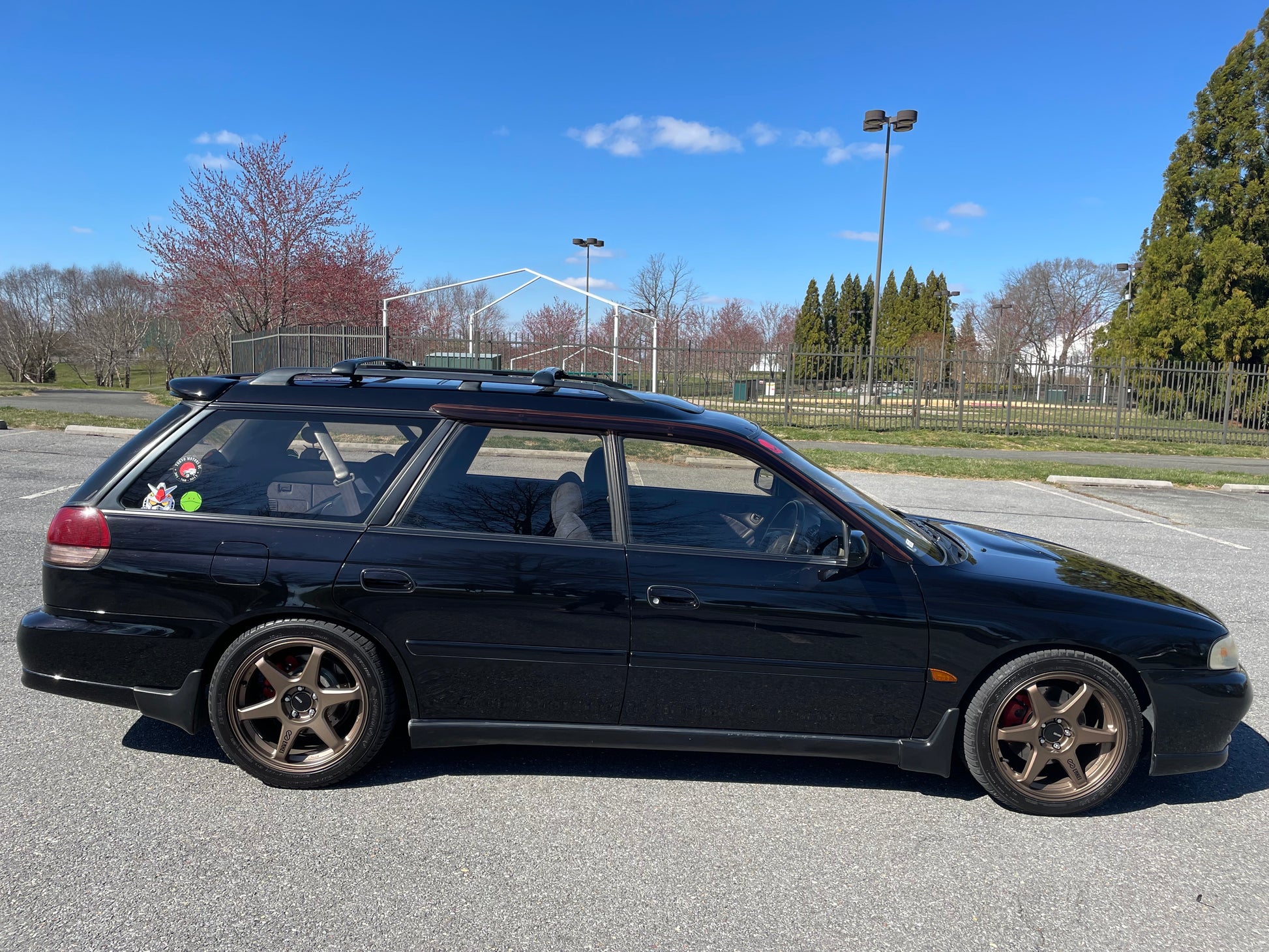 1997 SUBARU LEGACY GT- B TWIN TURBO BG5 ——54,268 miles, “EJ20” 2.0 Liter, TWIN TURBO BOXER FOUR, Automatic Transmission, AWD, Venting Front Sunroof, Power Central Sunroof, Black Mica Pearl Paint (47A), Cloth Upholstery With Factory Bucket Seats, Adjustable Steering Column, Factory MOMO Steering Wheel With Airbag, Digital Climate Control, Power Windows, Electric Folding Mirrors, Power Locks, Dual SSR Airbags.