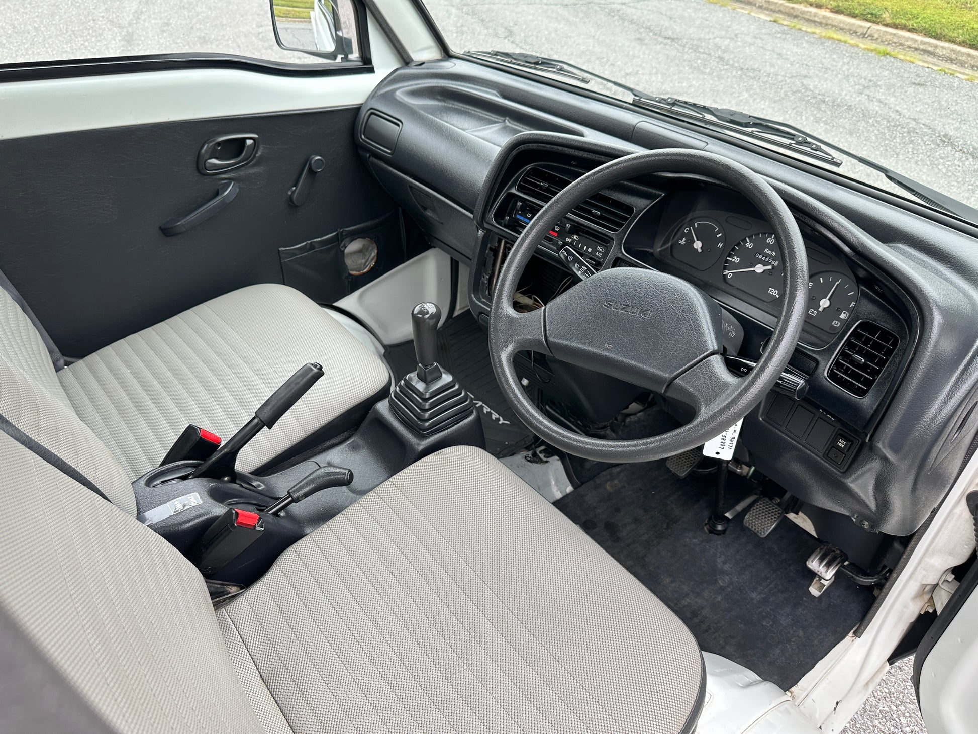 1997 SUZUKI CARRY V-DD51T—— 58,890 Miles, “F6A” Engine, 660CC Inline-Three, Gasoline, 5-Speed Manual Transmission, Selectable 4WD, AXLE LOCK, DROP-SIDE CARGO BED, 350kg Load Capacity, AIR CONDITIONING & HEAT.