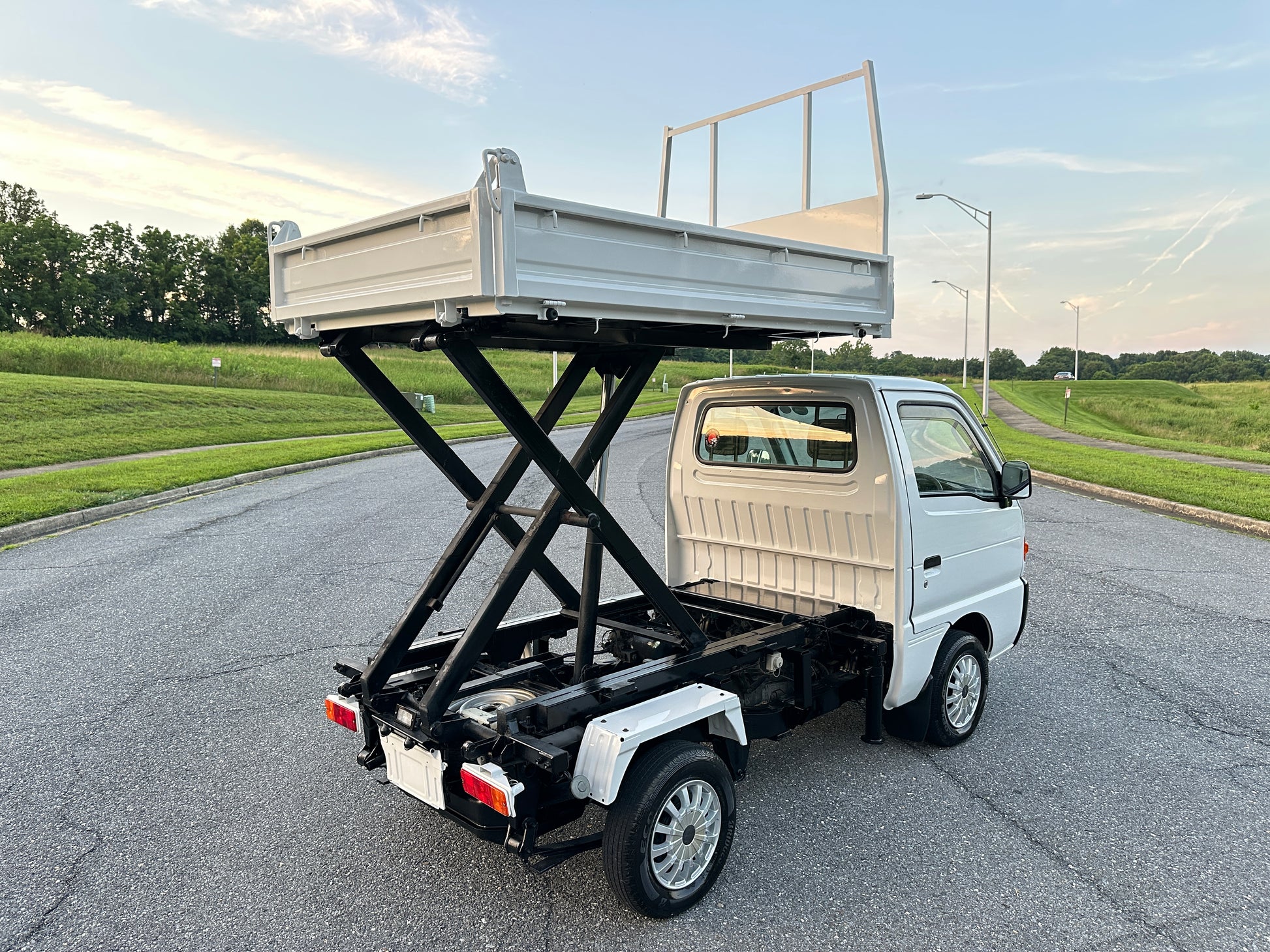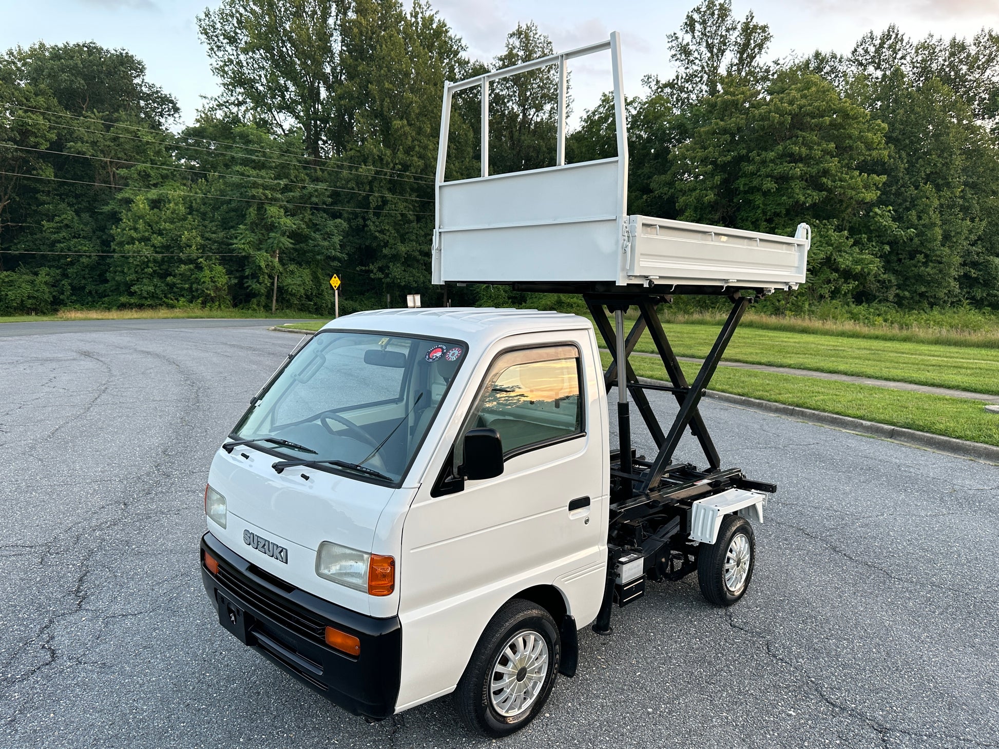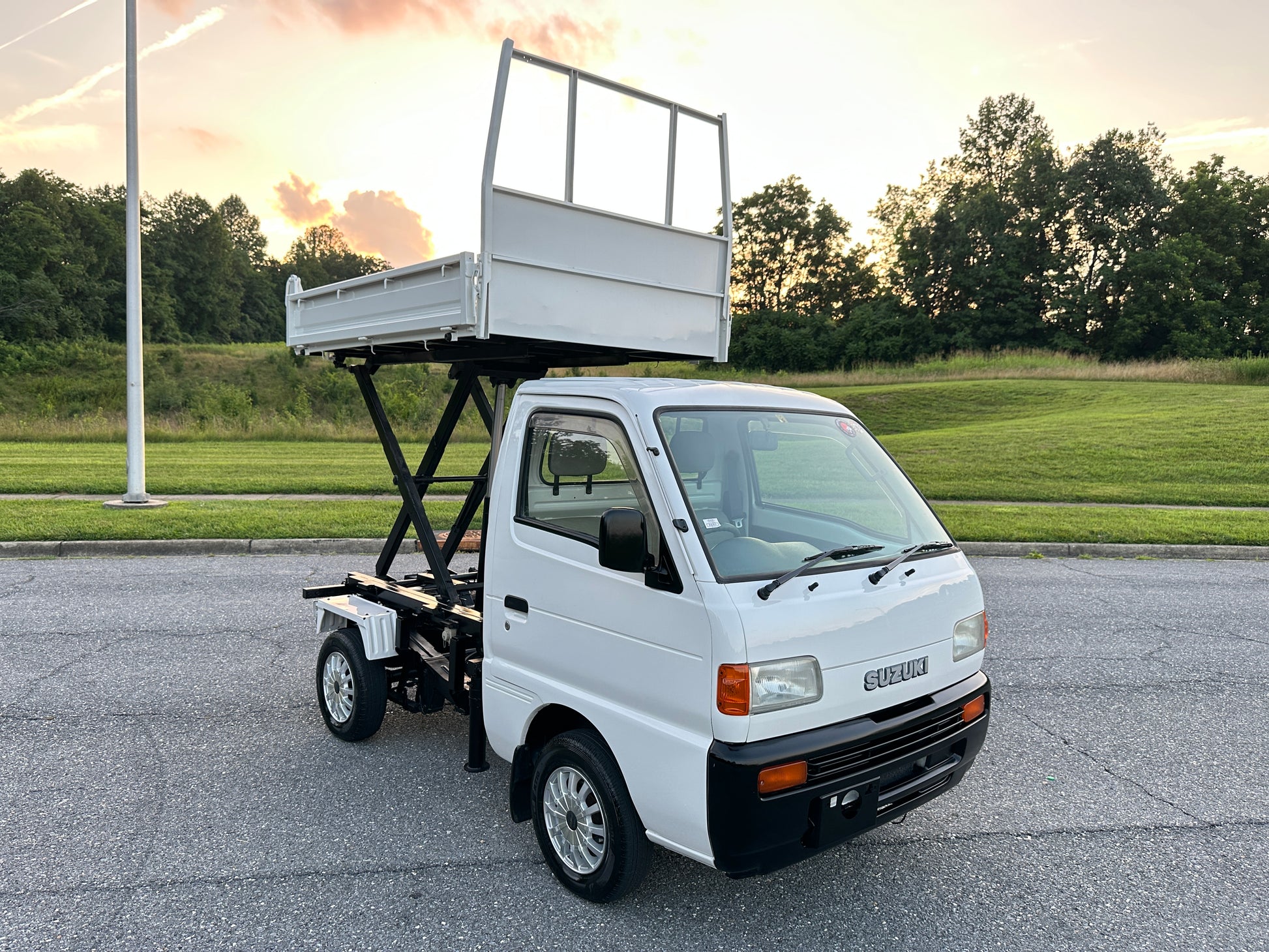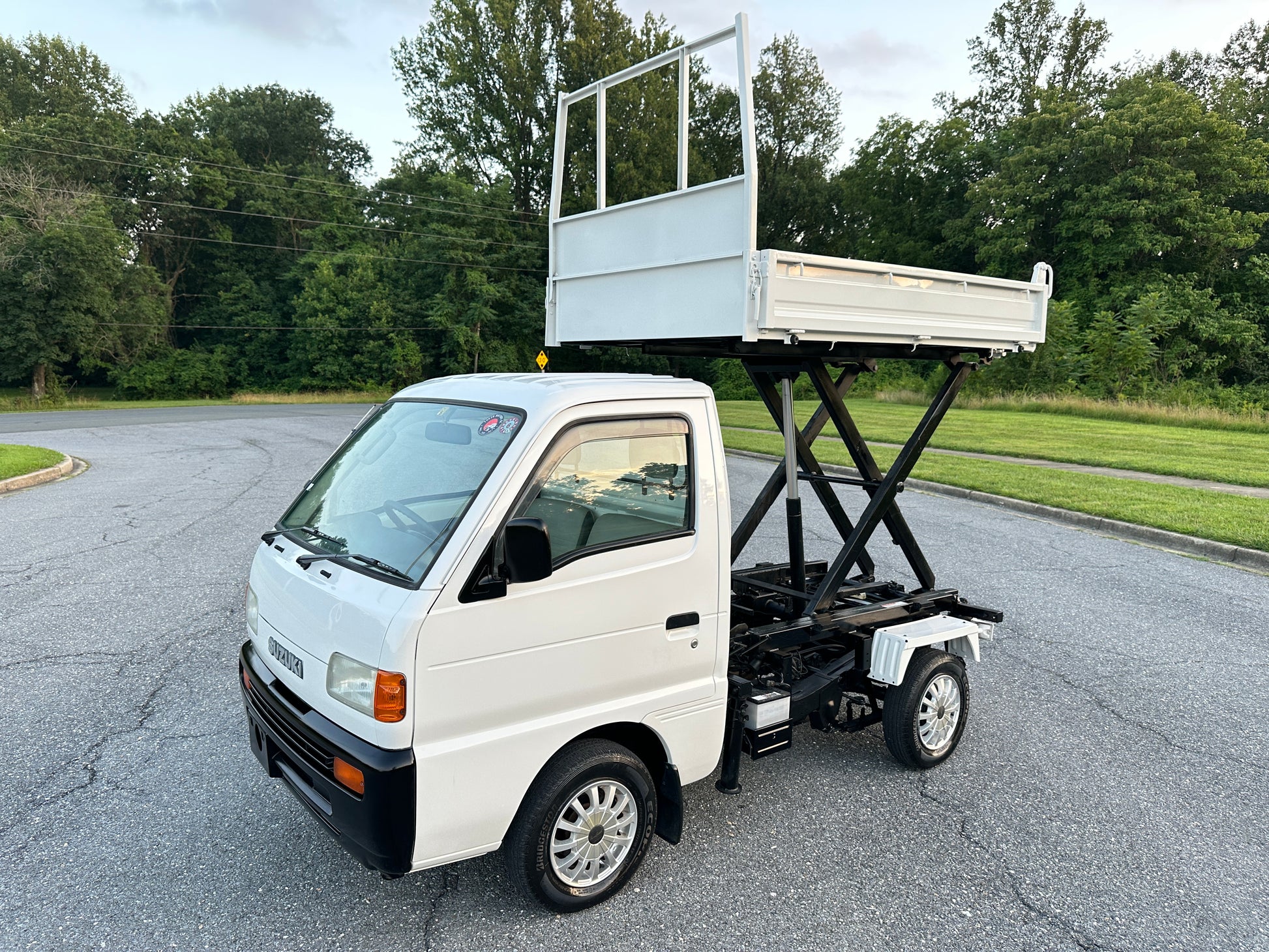 1997 SUZUKI CARRY V-DD51B—— 92,891 Miles, “F6A” Engine, 660CC Inline-Three, Gasoline, 5-Speed Manual Transmission With EXTRA LOW GEAR, Selectable 4WD, AXLE LOCK, FULLY REPAINTED, DUMP BED WITH THE DROP-SIDES, SCISSOR LIFT With 350kg Load Capacity, Heat & Fan, Aftermarket Wheels.