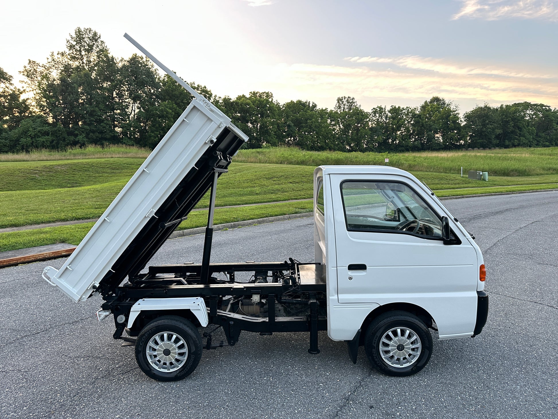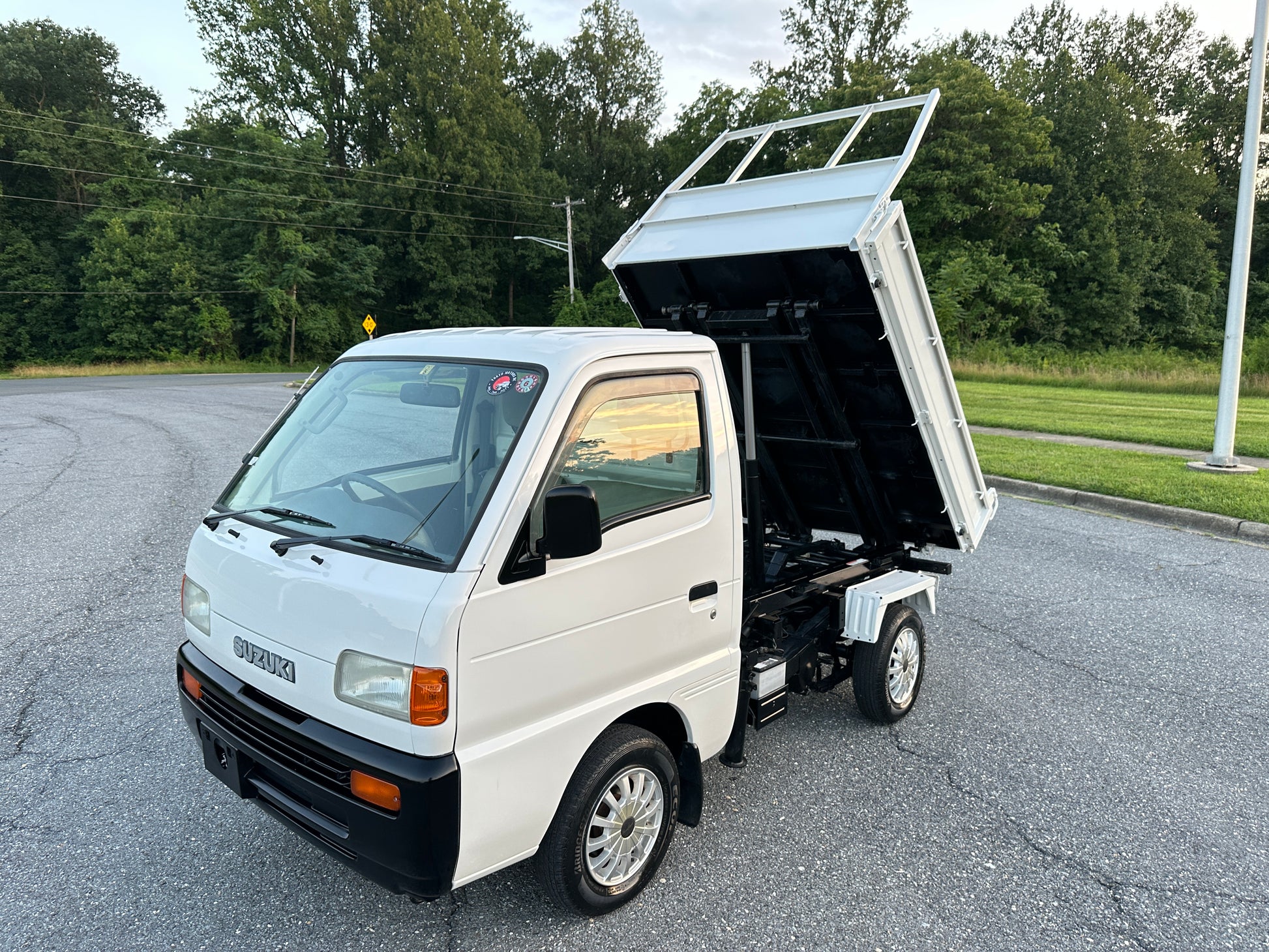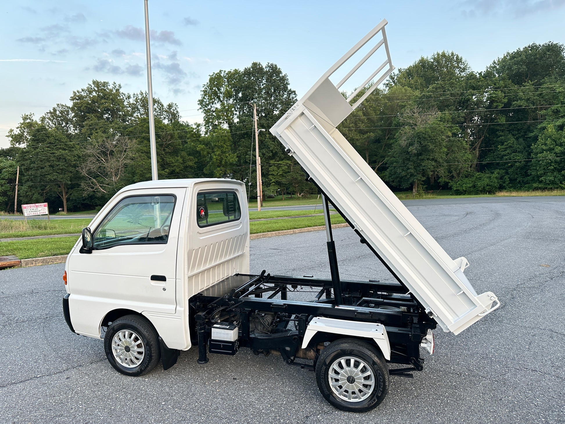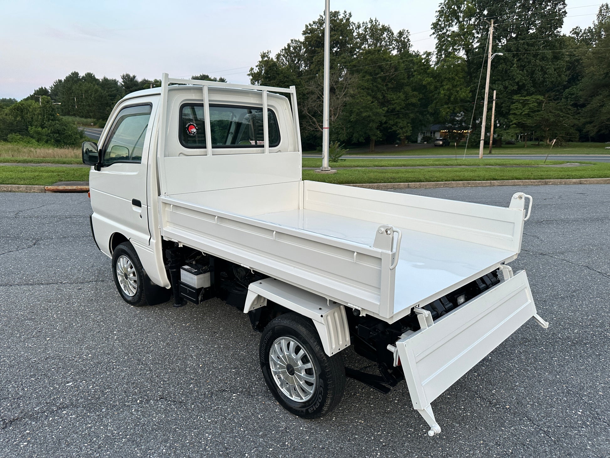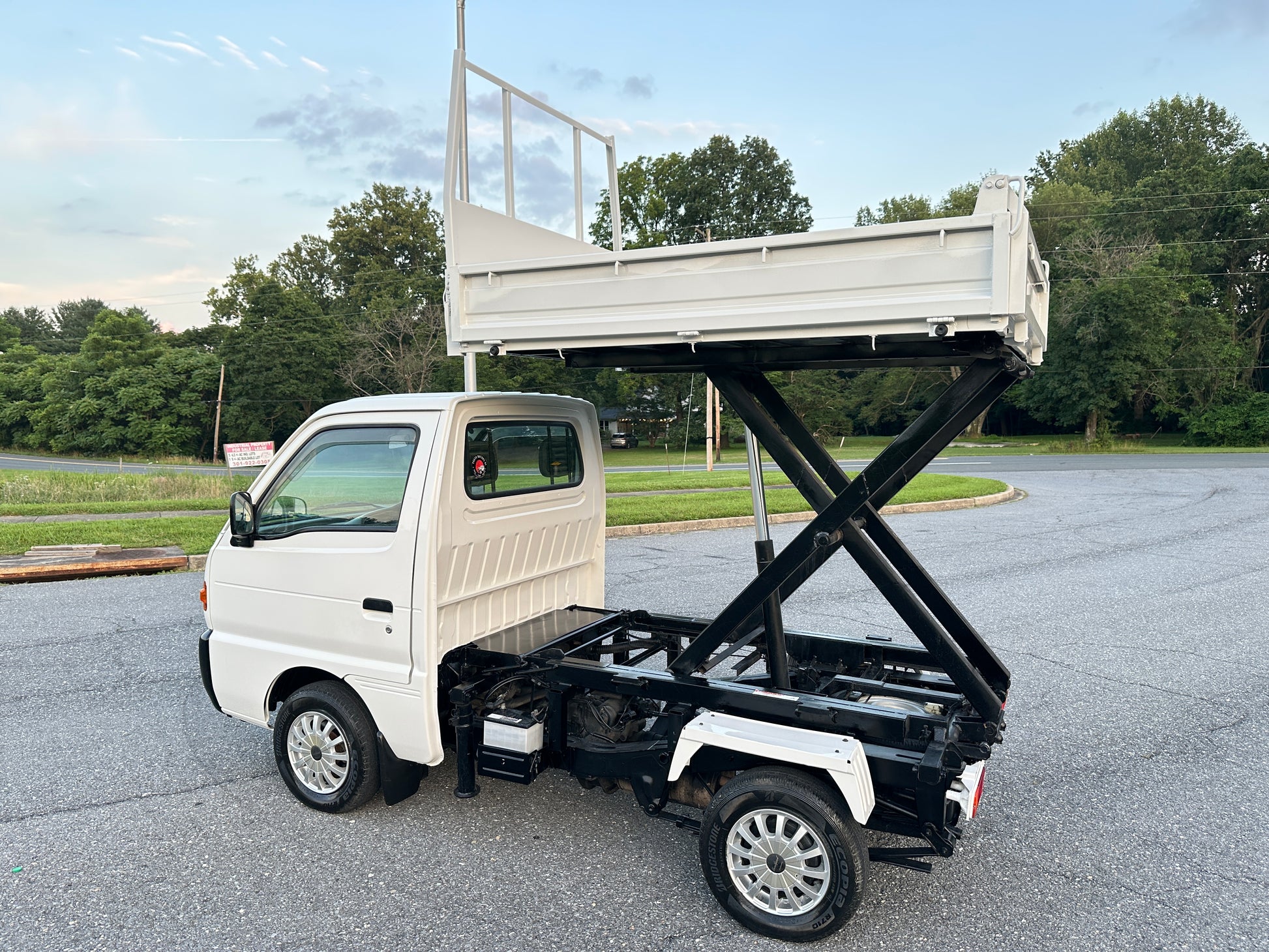 1997 SUZUKI CARRY V-DD51B—— 92,891 Miles, “F6A” Engine, 660CC Inline-Three, Gasoline, 5-Speed Manual Transmission With EXTRA LOW GEAR, Selectable 4WD, AXLE LOCK, FULLY REPAINTED, DUMP BED WITH THE DROP-SIDES, SCISSOR LIFT With 350kg Load Capacity, Heat & Fan, Aftermarket Wheels.
