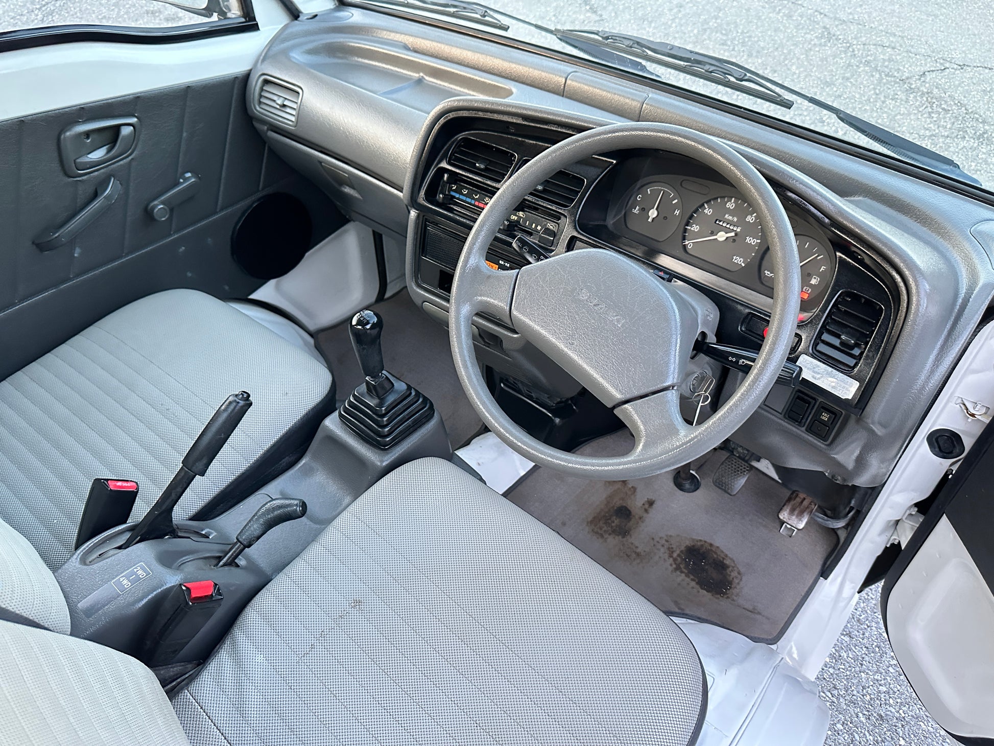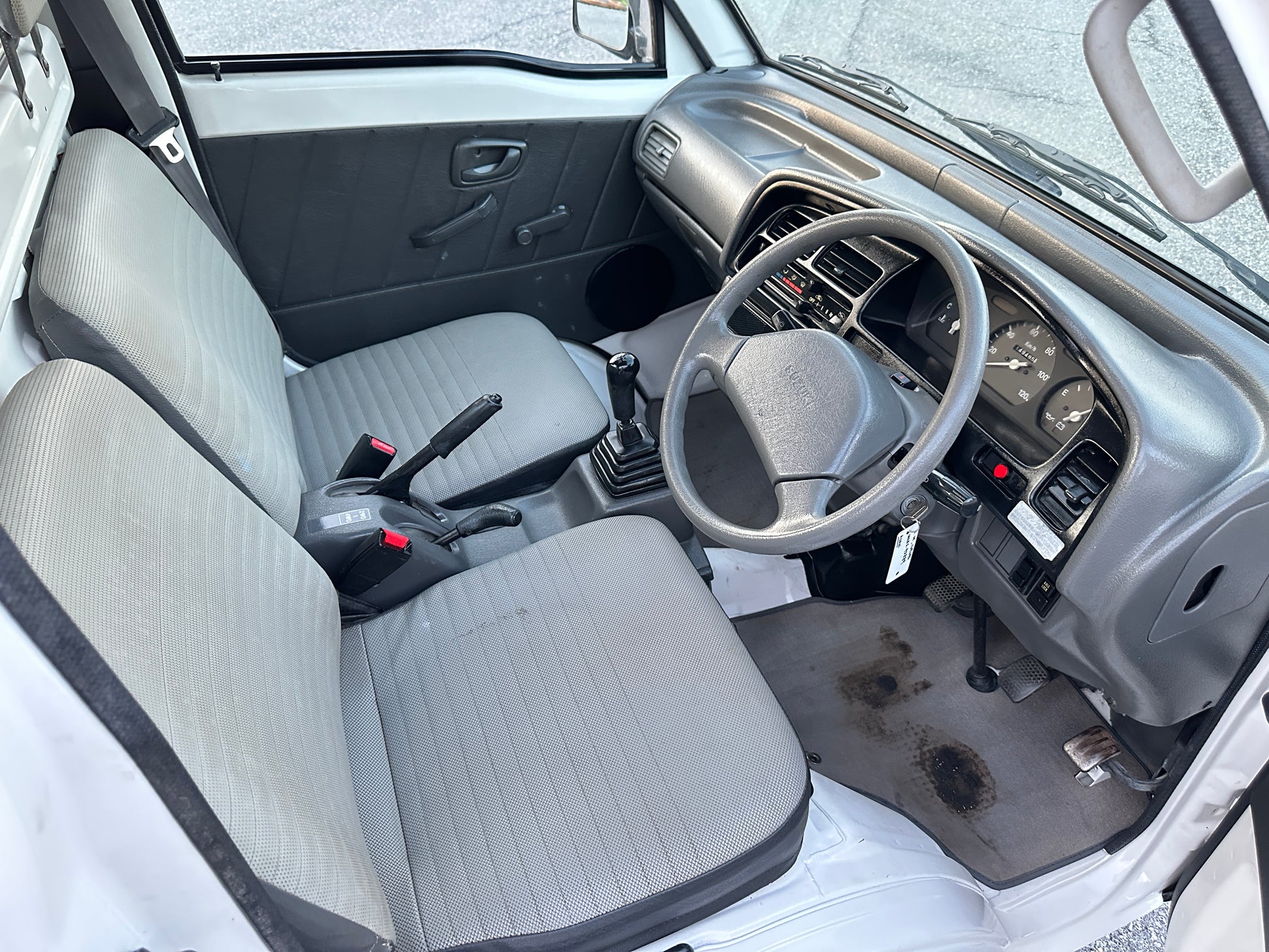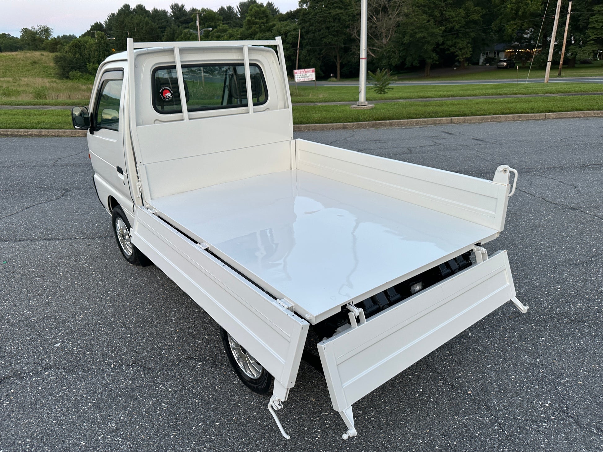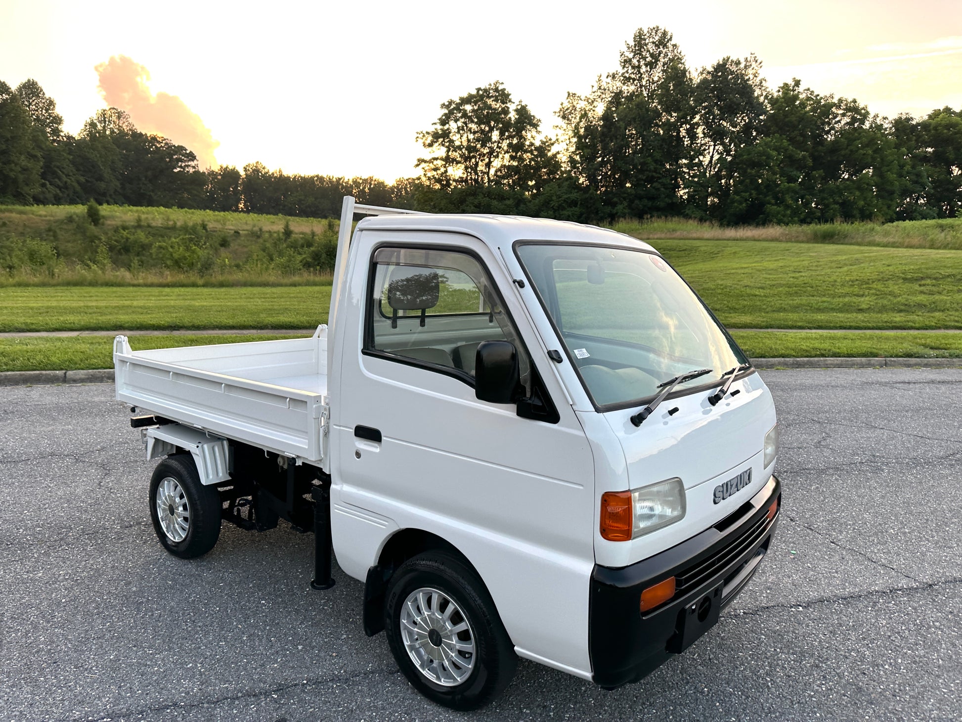 1997 SUZUKI CARRY V-DD51B—— 92,891 Miles, “F6A” Engine, 660CC Inline-Three, Gasoline, 5-Speed Manual Transmission With EXTRA LOW GEAR, Selectable 4WD, AXLE LOCK, FULLY REPAINTED, DUMP BED WITH THE DROP-SIDES, SCISSOR LIFT With 350kg Load Capacity, Heat & Fan, Aftermarket Wheels.