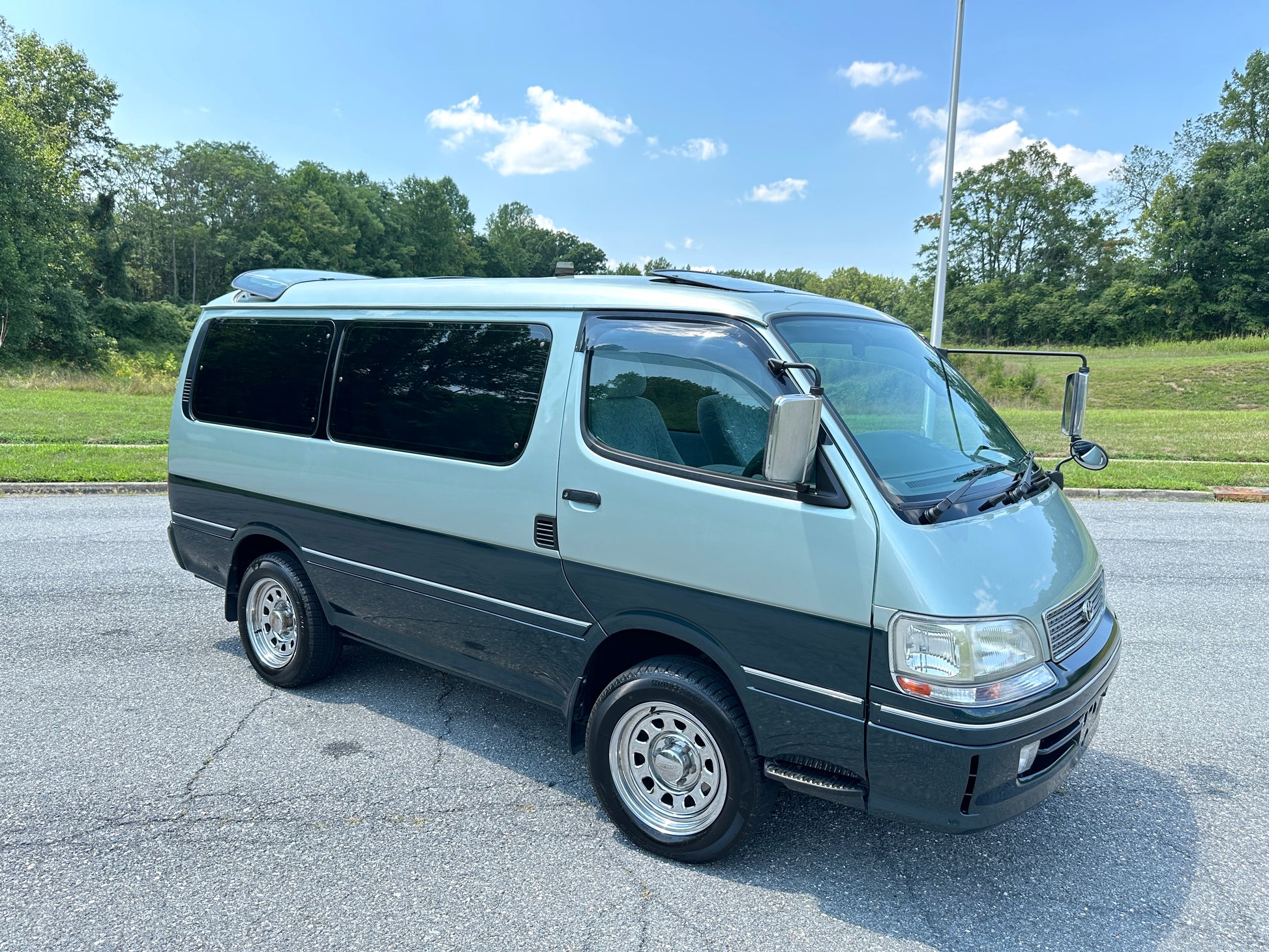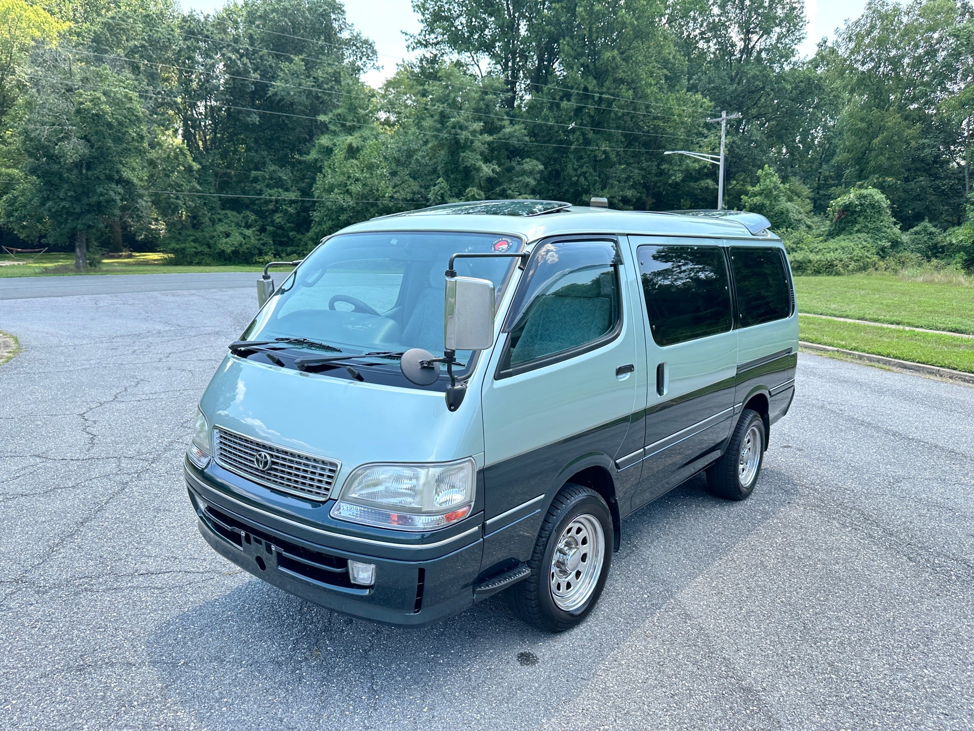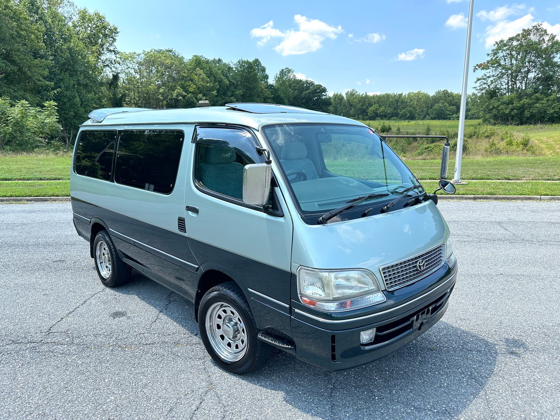 1997 TOYOTA HIACE SUPER CUSTOM G KZH106 ——104,951 Miles, “1KZ-TE”, 3.0 Liter Inline 4, Turbo Diesel, Automatic Transmission, Full Time 4WD, ABS, SRS AIRBAGS, Venting Front Sunroof, Massive Central Sunroof, Power Rear Sunroof, Rare Green Two-Tone Paint, Blue Cloth Upholstery, Factory 3rd Row, 180 Degree Swivel Middle Row, Full Flat Folding Seats, Dual Zone Climate Control, Power Windows, Power Mirrors, Power Locks, Soft Closing Sliding Door, Aftermarket Wheels, COOLER BOX WITH ICE-MAKER, New Battery, New U-Joints & CV Boots.