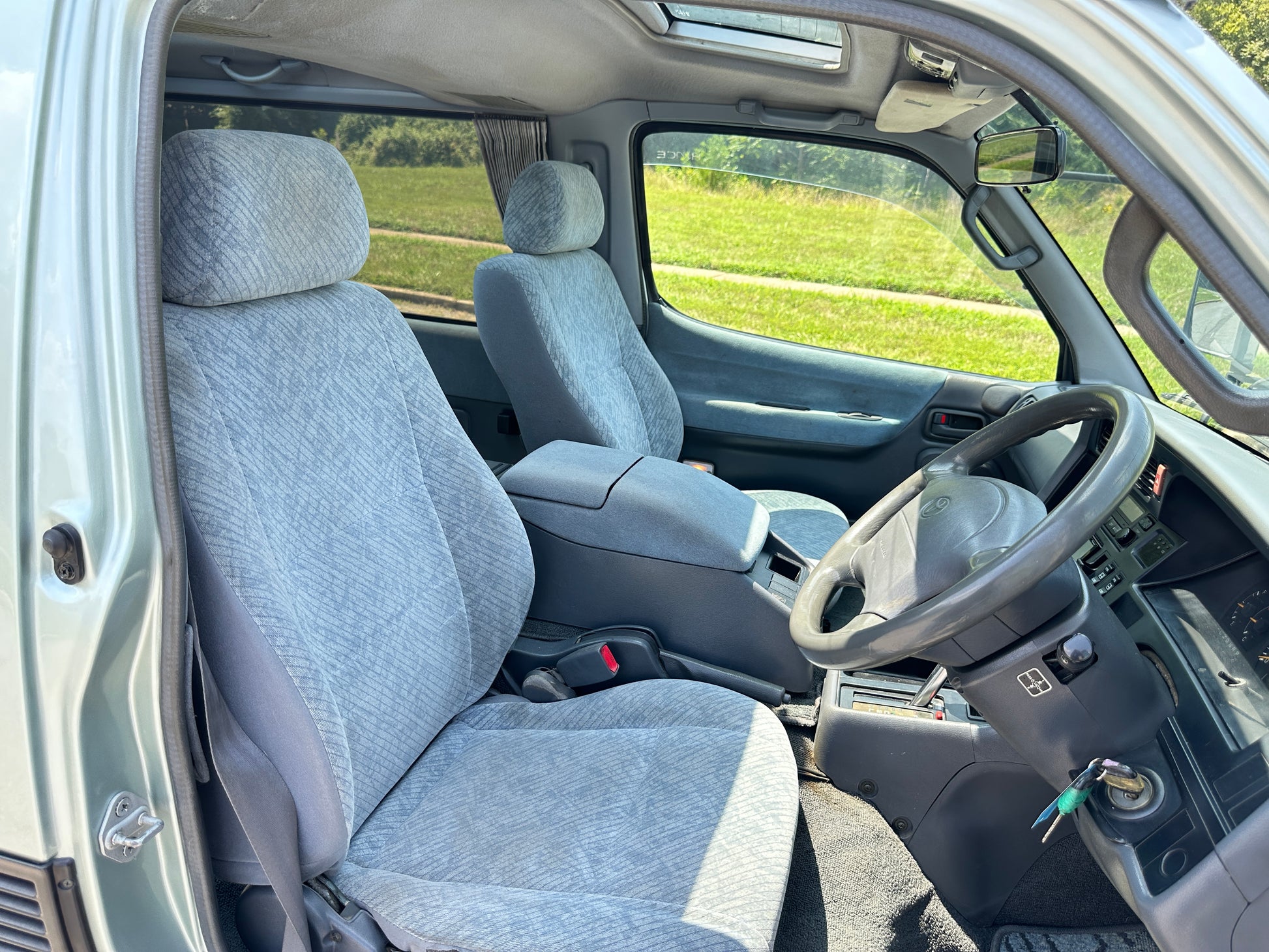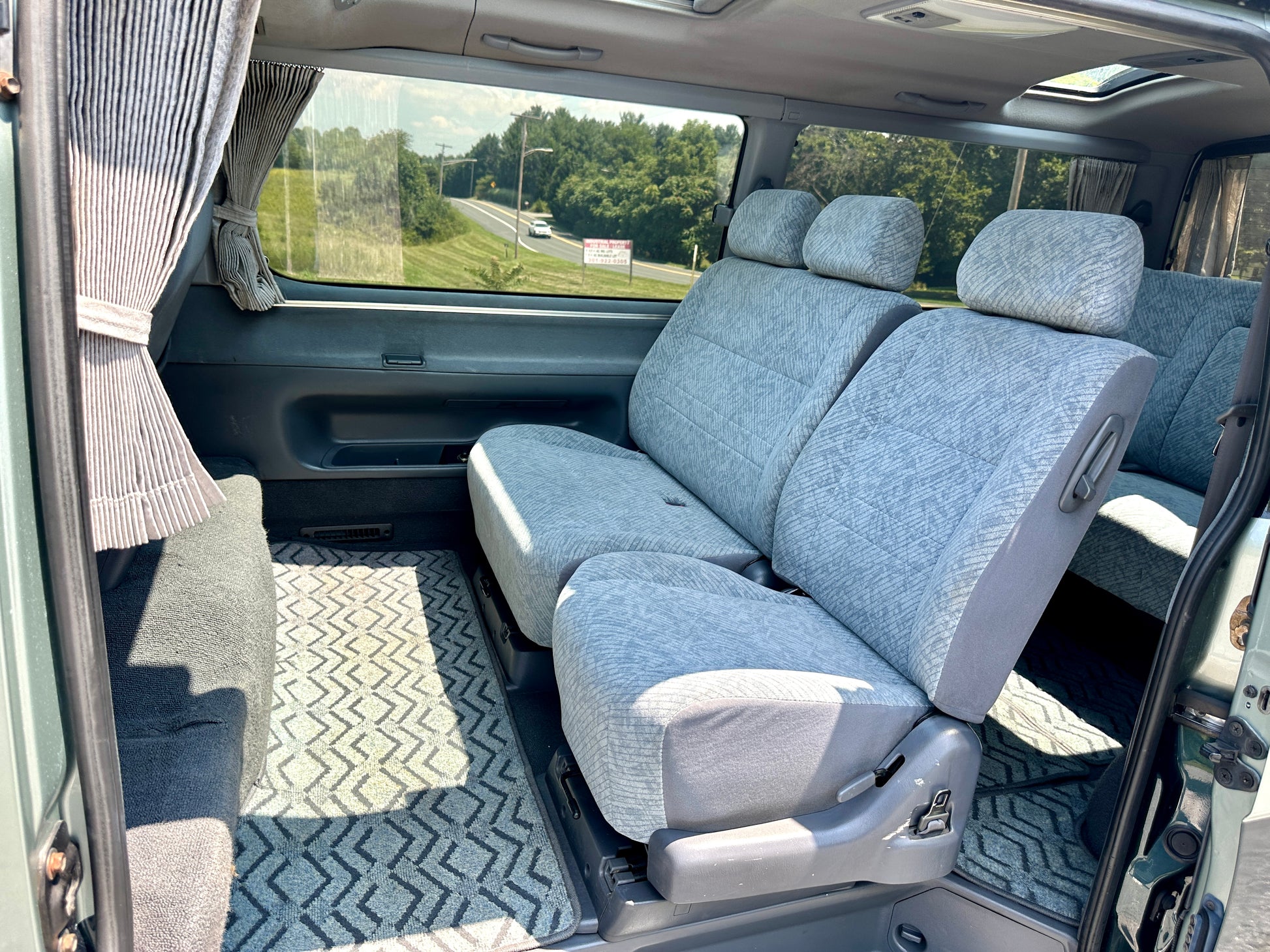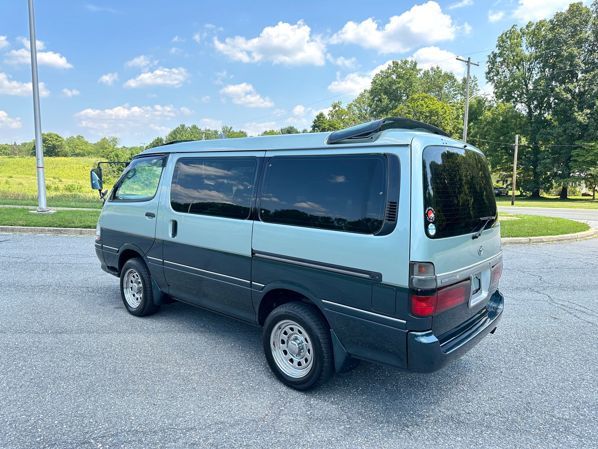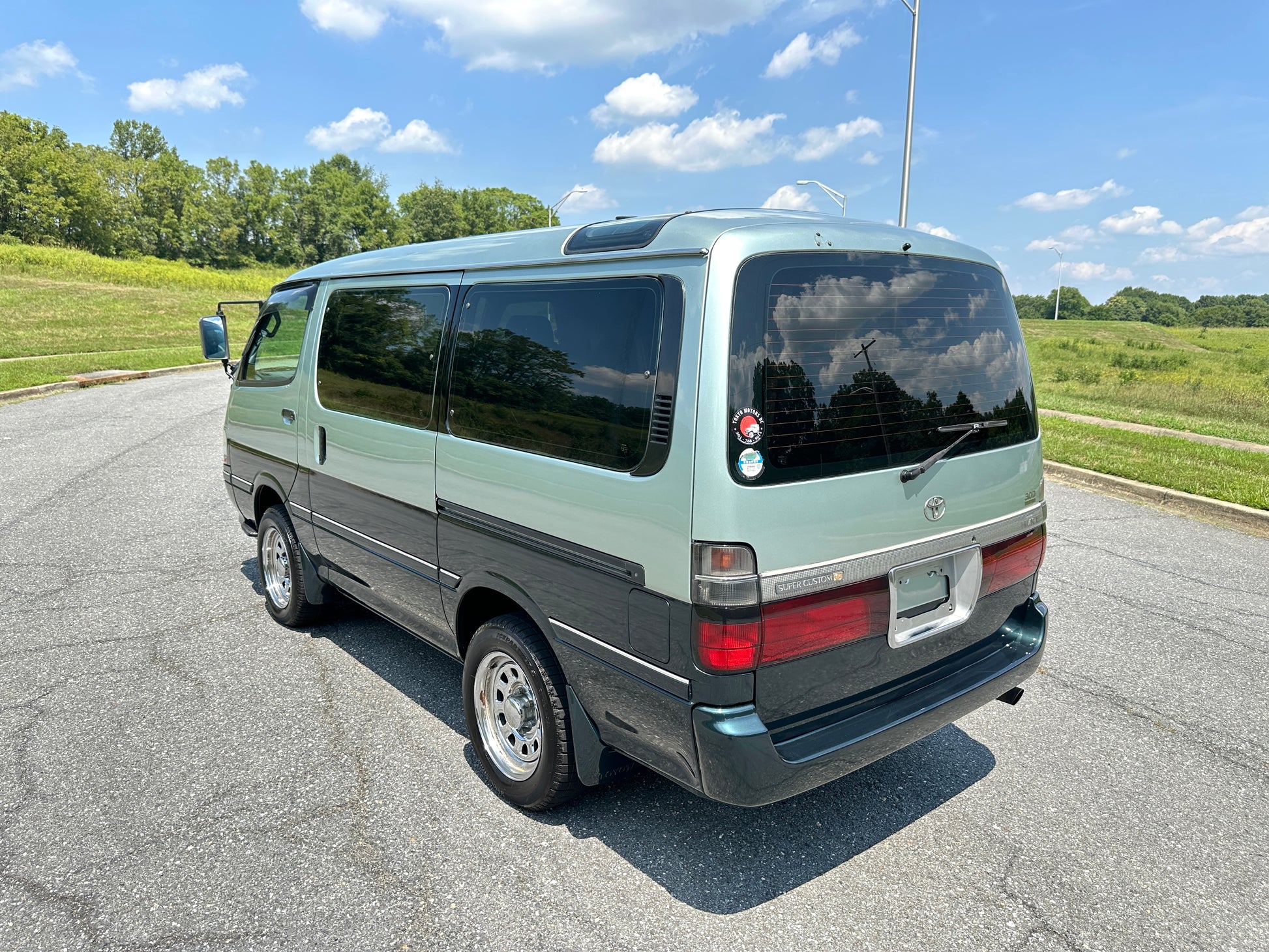 1997 TOYOTA HIACE SUPER CUSTOM G KZH106 ——104,951 Miles, “1KZ-TE”, 3.0 Liter Inline 4, Turbo Diesel, Automatic Transmission, Full Time 4WD, ABS, SRS AIRBAGS, Venting Front Sunroof, Massive Central Sunroof, Power Rear Sunroof, Rare Green Two-Tone Paint, Blue Cloth Upholstery, Factory 3rd Row, 180 Degree Swivel Middle Row, Full Flat Folding Seats, Dual Zone Climate Control, Power Windows, Power Mirrors, Power Locks, Soft Closing Sliding Door, Aftermarket Wheels, COOLER BOX WITH ICE-MAKER, New Battery, New U-Joints & CV Boots.