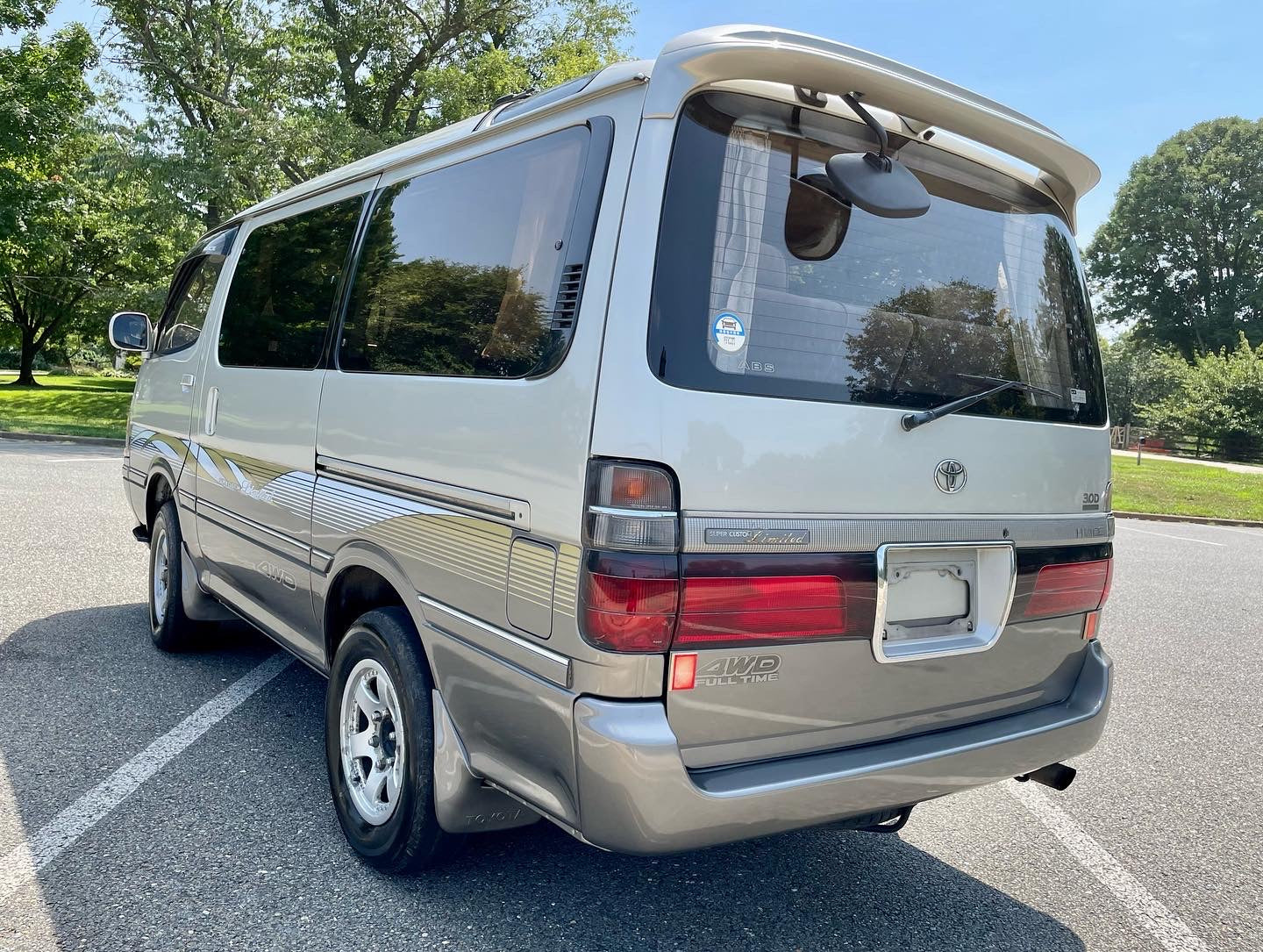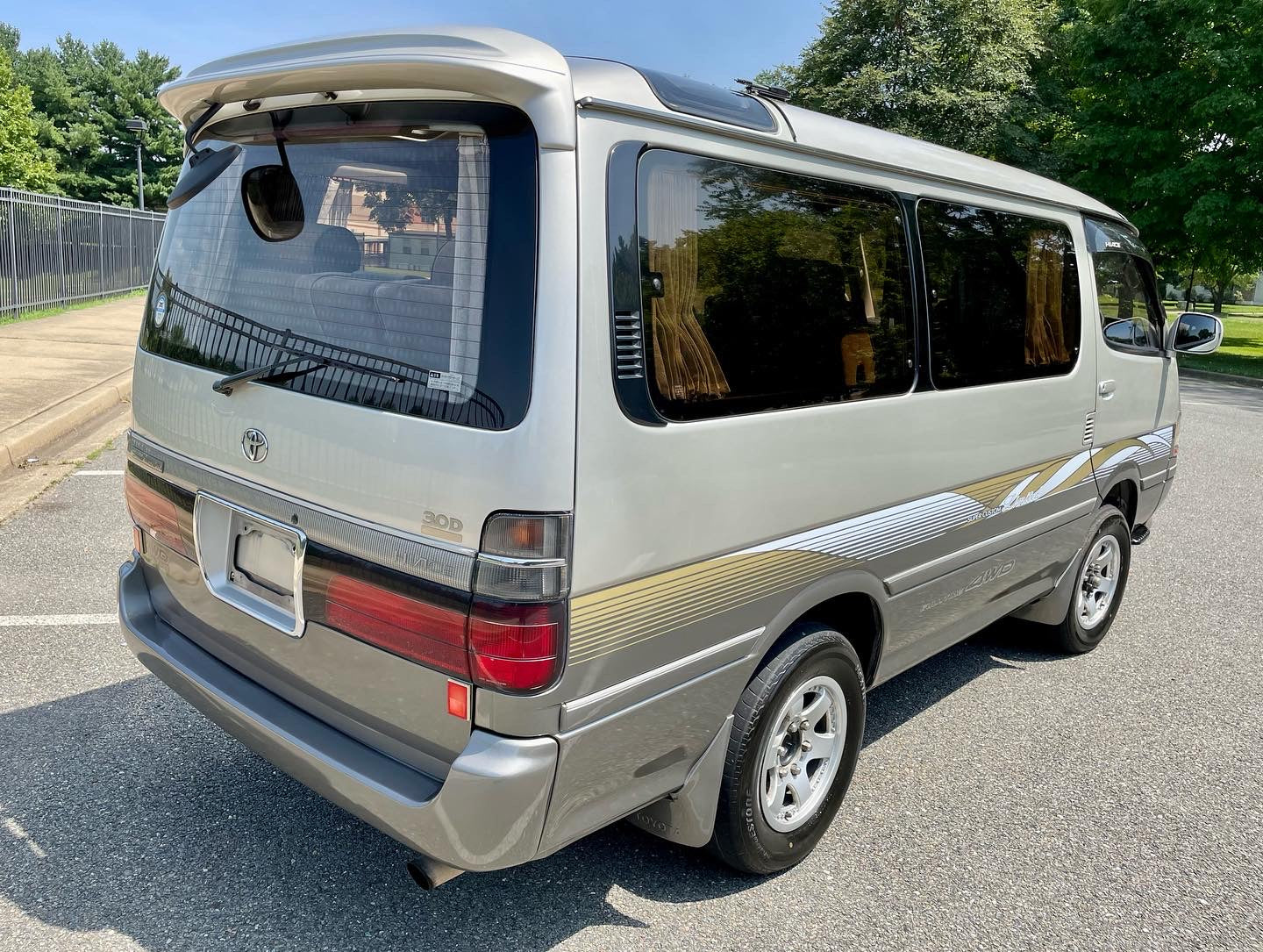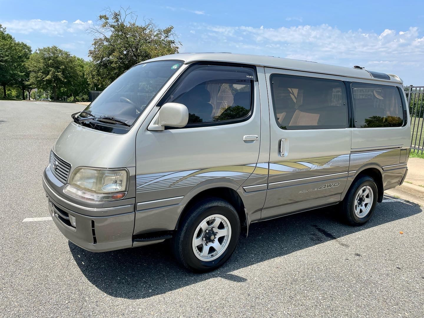 1997 TOYOTA HIACE SUPER CUSTOM LIMITED KZH106 ——116K miles, “1KZ-TE” 3.0 Liter Inline 4, Turbo Diesel, Automatic Transmission, Full Time 4WD, Venting Front Sunroof, Massive Central Sunroof, Power Rear Sunroof, Two-Tone Paint, Brown Cloth Upholstery, Alloy Wheels, Factory 3rd Row, 180 Degree Swivel Middle Row, Full Flat Folding Seats, Dual Zone Climate Control, Power Windows, Power Mirrors, Power Locks, Soft Closing Sliding Door, Power Curtains, RARE Digital Instrument Cluster, Electric Driver’s Seat, Mobile Video System (TV). Will Come With A Clean MARYLAND Title and Import Documents.