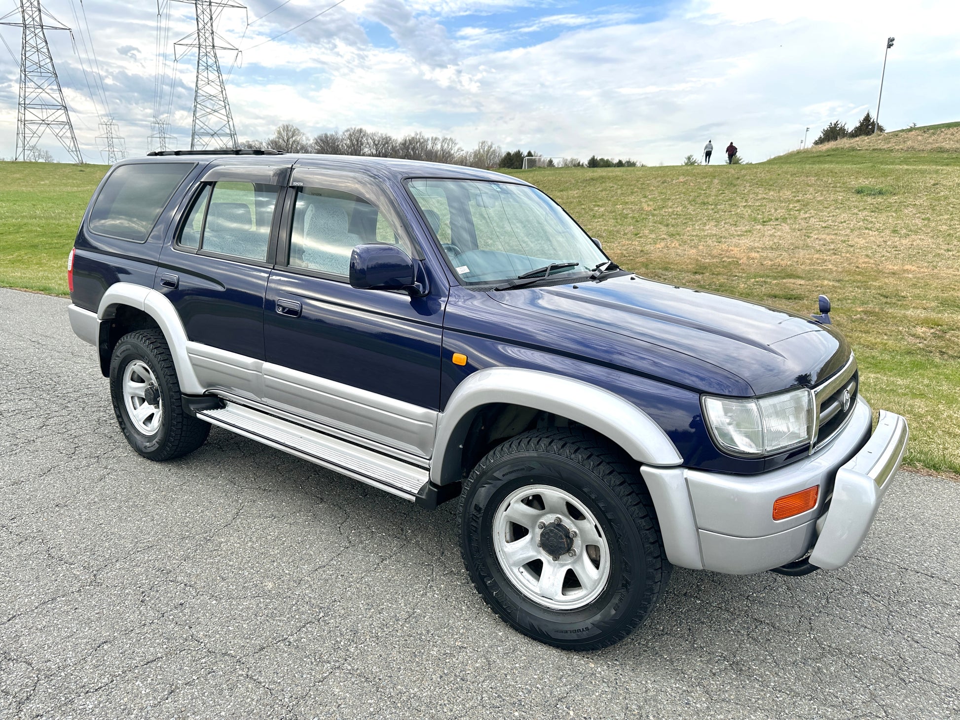1997 Toyota Hilux Surf KZN185 SSR-V ——91,996 Miles, “1KZ-TE” 3.0 Liter Inline 4, Turbo Diesel, 5-SPEED MANUAL TRANSMISSION, Transfer Case With High And Low Ranges, Selectable 4WD, Locking Center Differential, Stellar Blue Paint, Blue Cloth Upholstery, ABS, SRS Airbag, Power Windows, Power Locks, Power Back Glass, Power Folding Mirrors, Automatic Dual-Zone Climate Control, SURF Branded Cargo Mat, OEM Bull-Bar, Idle-Up Switch.