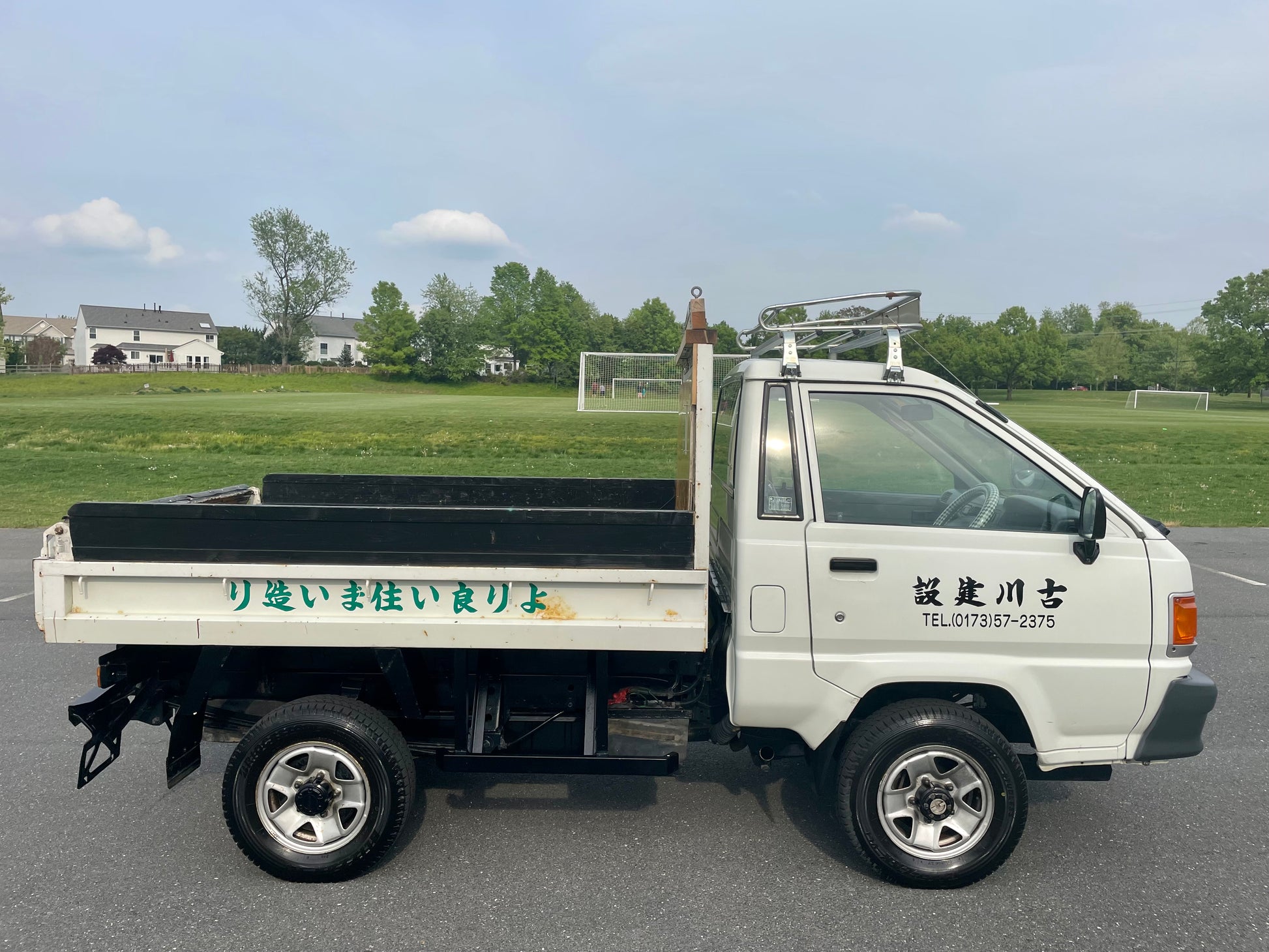1997 TOYOTA TOWNACE CM60——37,843 miles. “2C” 1974cc, Inline Four, Diesel, Column-Shifted 5 Speed Manual Transmission, Floor Shifted 2 Speed Transfer Case, Push Button 4WD, Manually Locking Aisin Front Hubs, White Paint (048), Vinyl Upholstery, 60/40 Split Seat With A Center Armrest, Manual Windows, TECS DUMP BED with a 750KG Payload Capacity, Bulkhead Bar, Roof Rack.