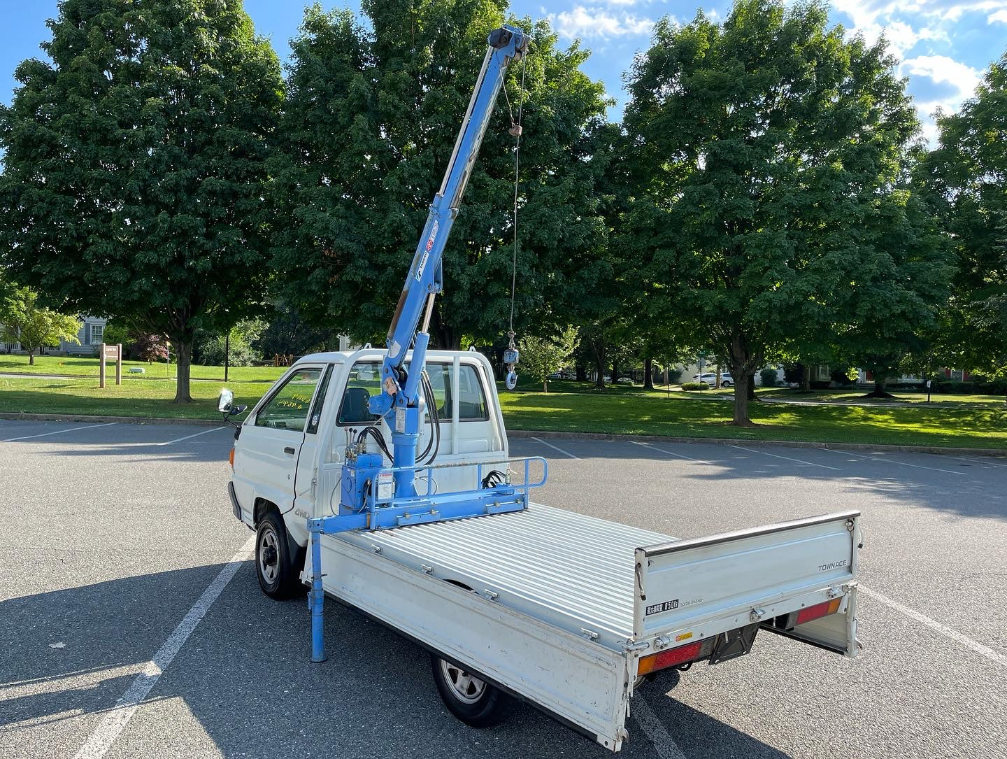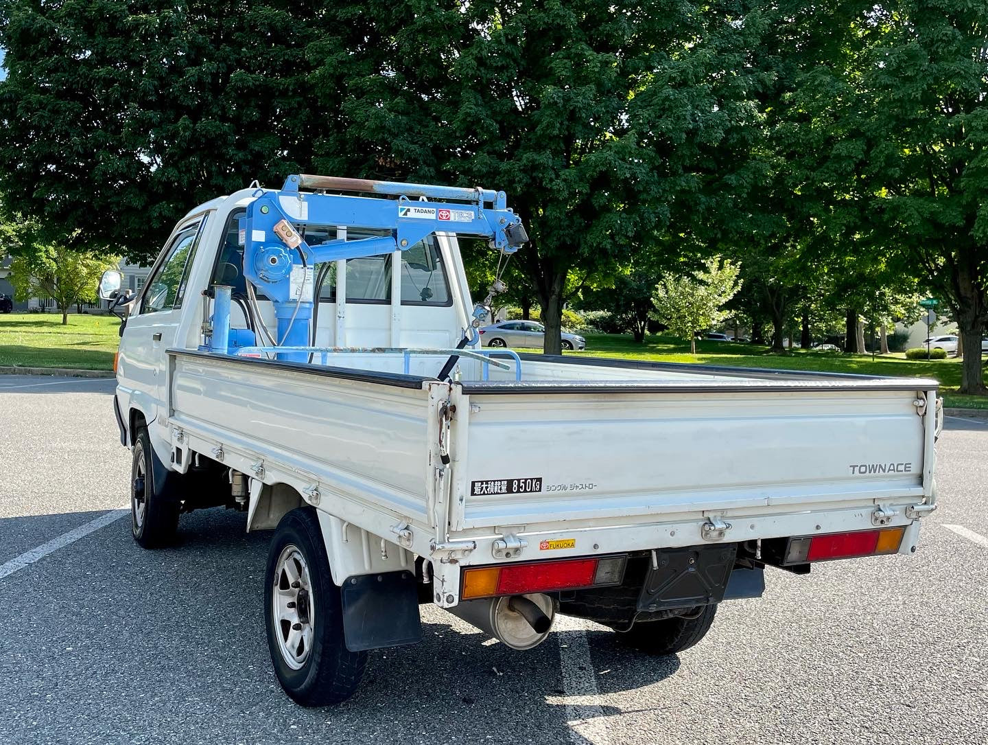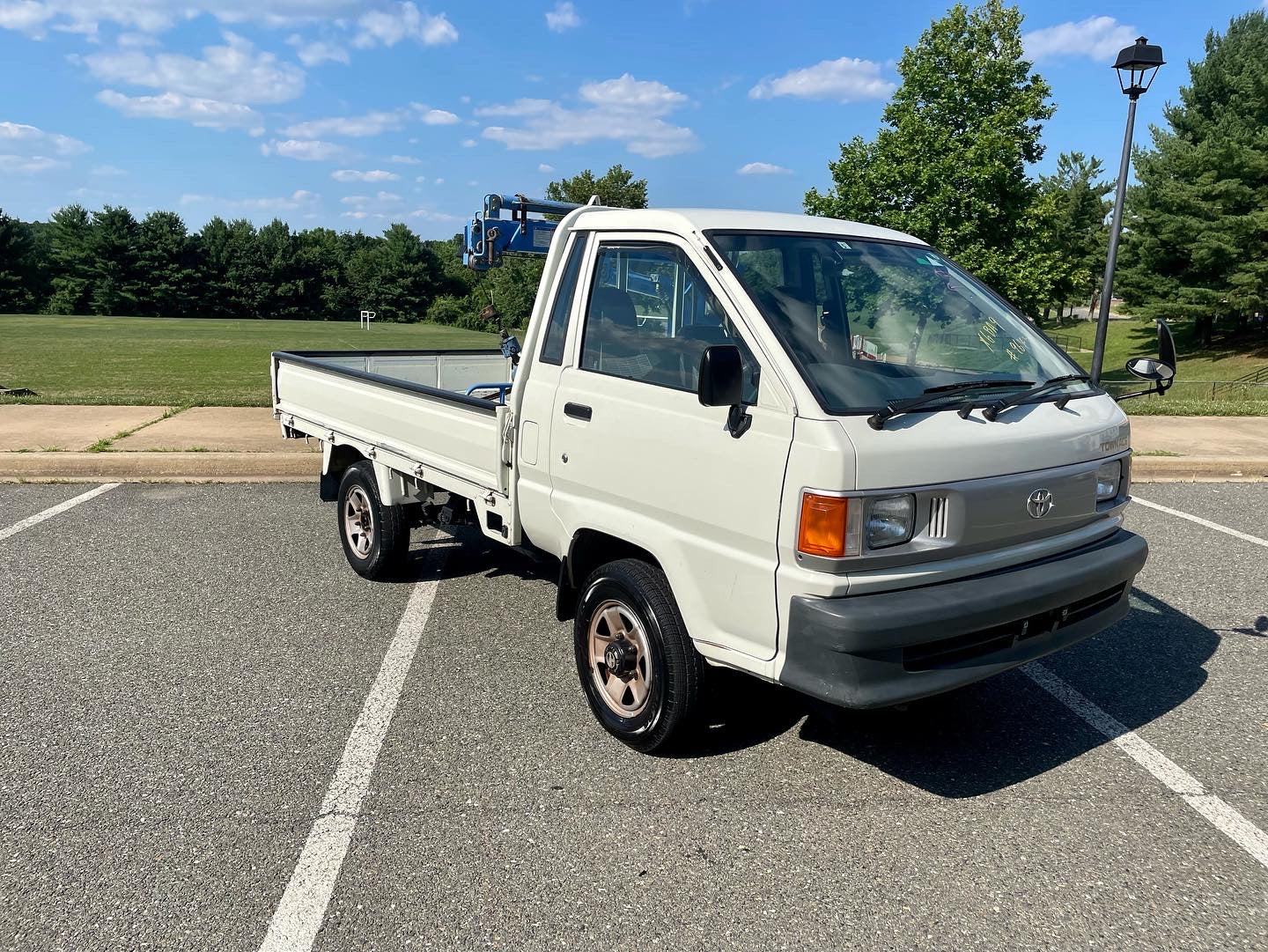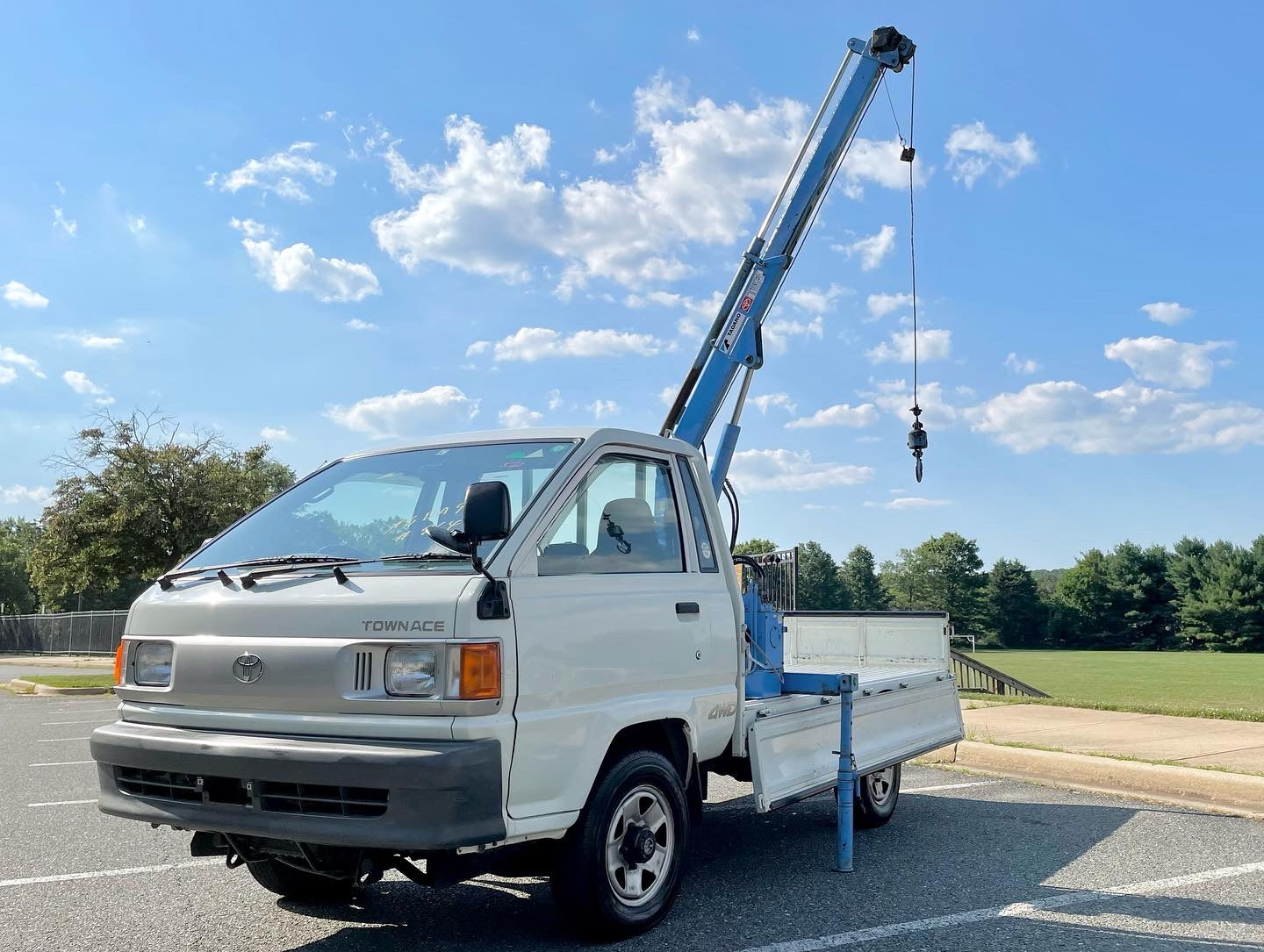 1997 TOYOTA TOWNACE CM65——37K miles. “2C” 1974cc, Inline Four, Diesel, Column-Shifted 5 Speed Manual Transmission, Floor Shifted 2 Speed Transfer Case, Push Button 4WD, Manually Locking AISIN Front Hubs, TADANO BOOM CRANE (490kg lifting capacity), White Paint (048), Gray Vinyl Upholstery, 60/40 Split Seat With A Center Armrest and center console, Manual Windows, AIR CONDITIONING, Drop-Side Cargo Bed (850kg load capacity), Bulkhead Bar, EXCELLENT CONDITION, Will Come With a Maryland Clean Title and Import Documents.