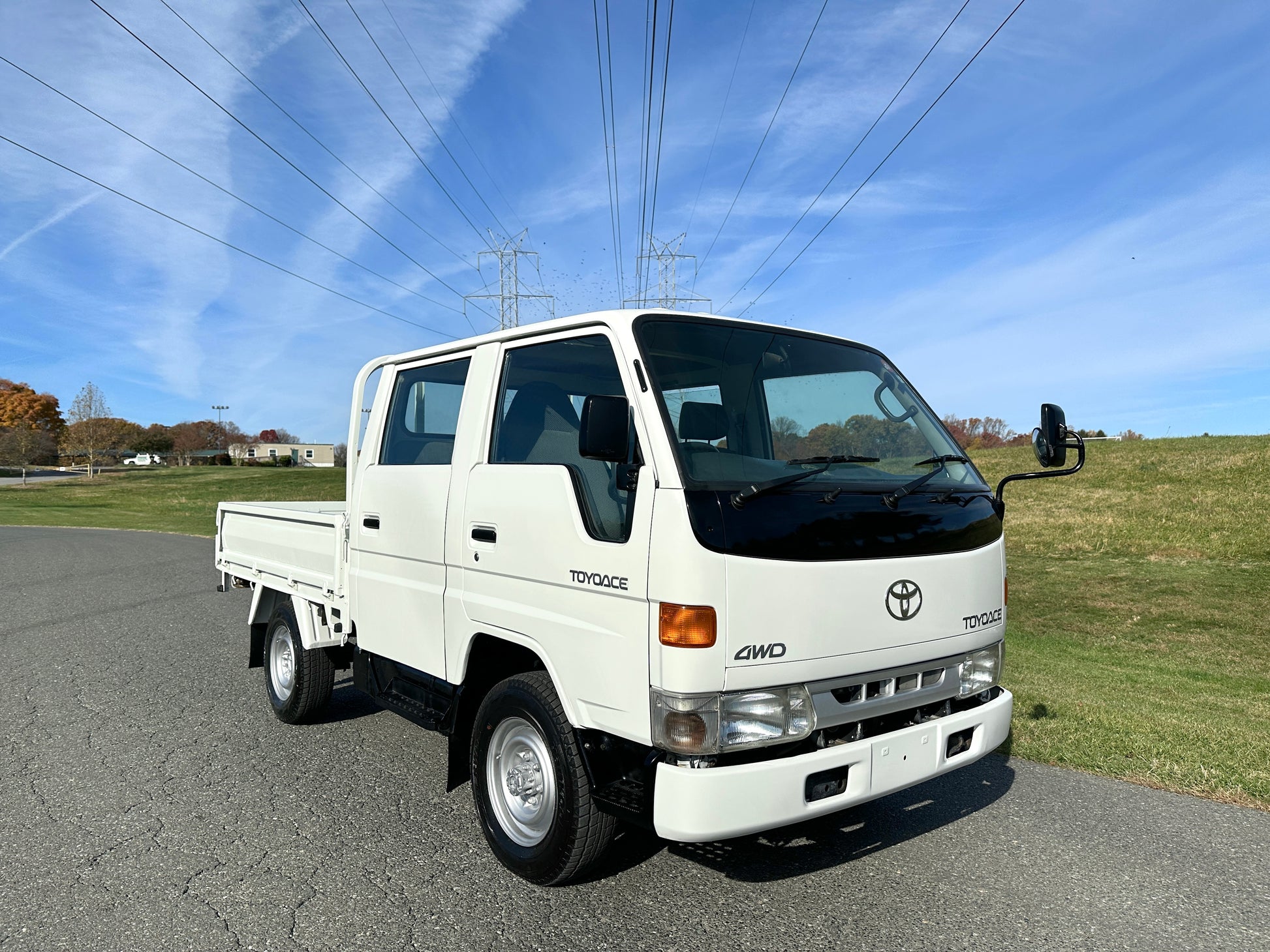 1997 TOYOTA TOYOACE LY161 —165,538 Miles. “3L” 2,779cc, Inline Four, Diesel, 5 Speed Manual Transmission, Selectable 4WD, Floor Shifted 2 Speed Transfer Case, 4WD High And Low Range, Manually Locking Aisin Front Hubs, DOUBLE CAB, White Paint, Cloth Upholstery, Heat, Manual Windows, Drop-Side Cargo Bed, Bulkhead Bar, Load Capacity of 1000KG.