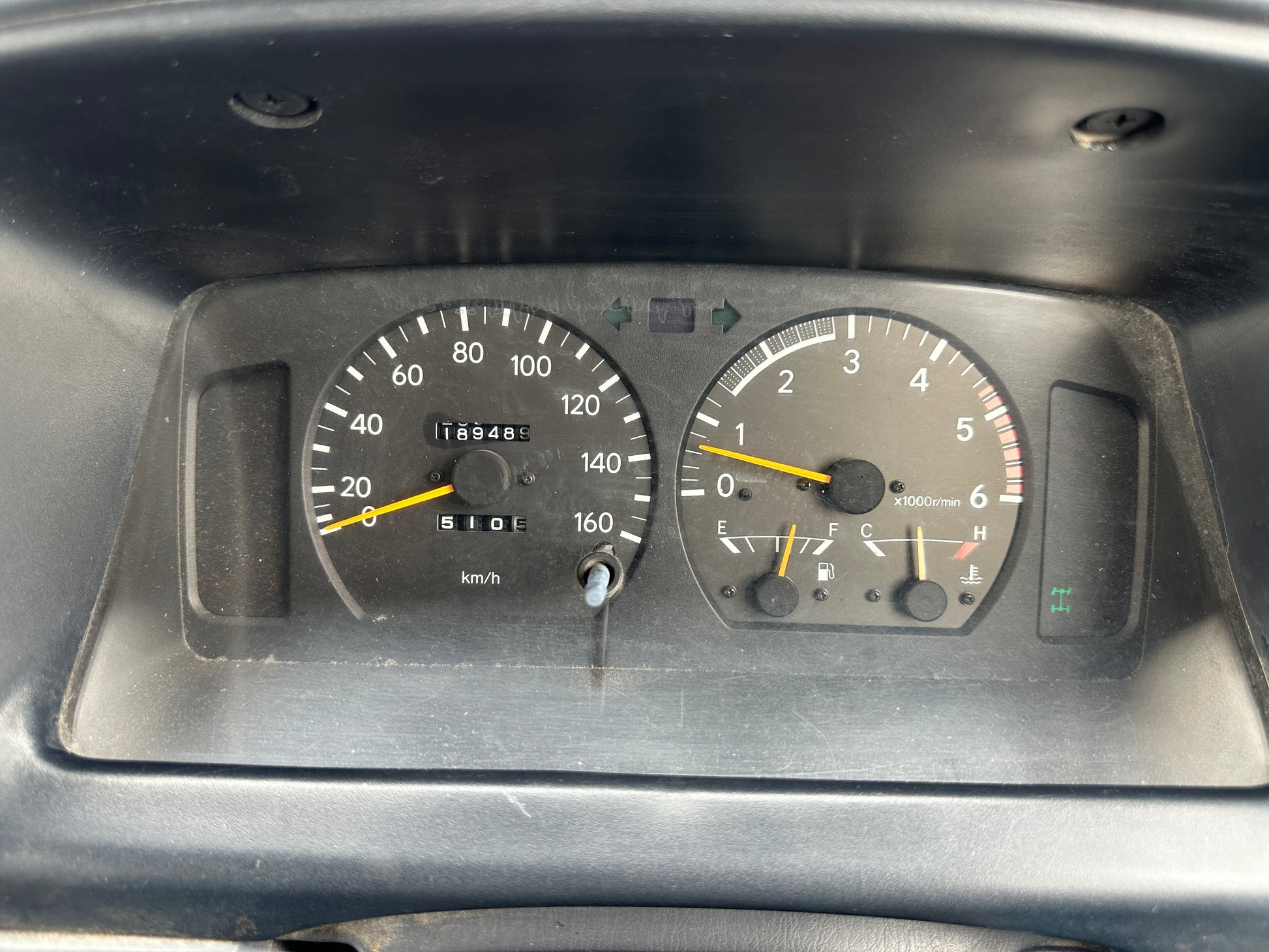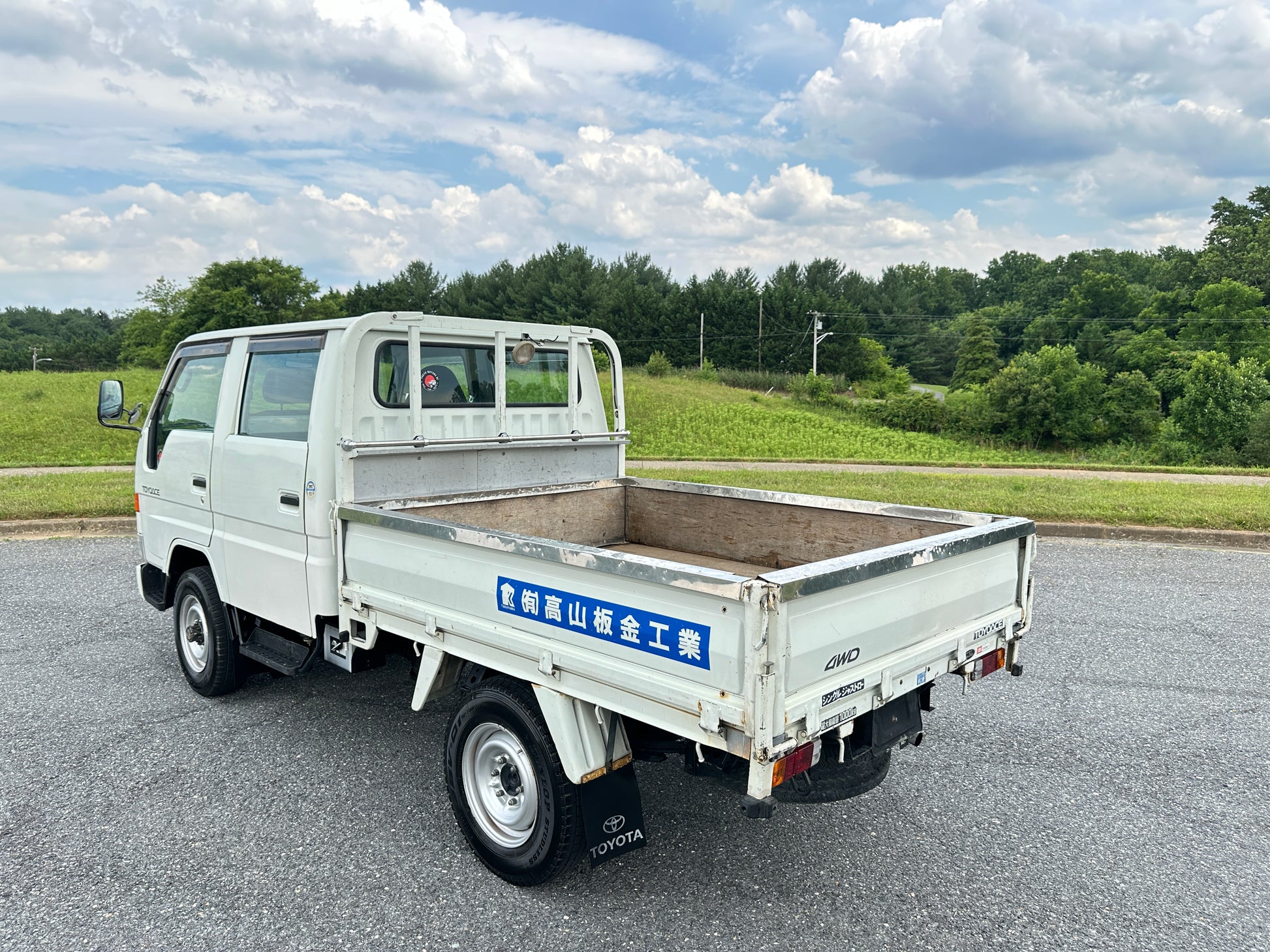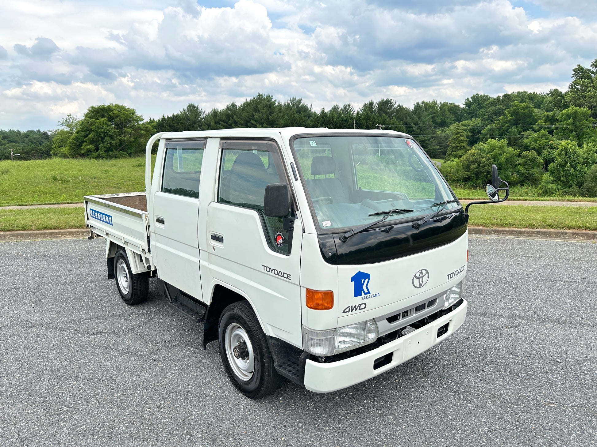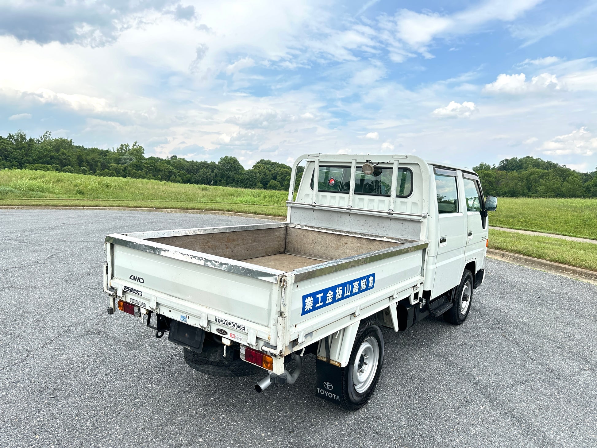 1997 TOYOTA TOYOACE LY161 DOUBLE-CAB TRUCK - 117,743 Miles. “3L” 2,779cc, Inline Four, Diesel, 5 Speed Manual Transmission, Selectable 4WD, Floor Shifted 2 Speed Transfer Case, 4WD With High And Low Ranges, Manually Locking Aisin Front Hubs, DOUBLE CAB, Original Factory White Paint, Gray Cloth Upholstery, Manual Windows, AIR CONDITIONING & HEAT.