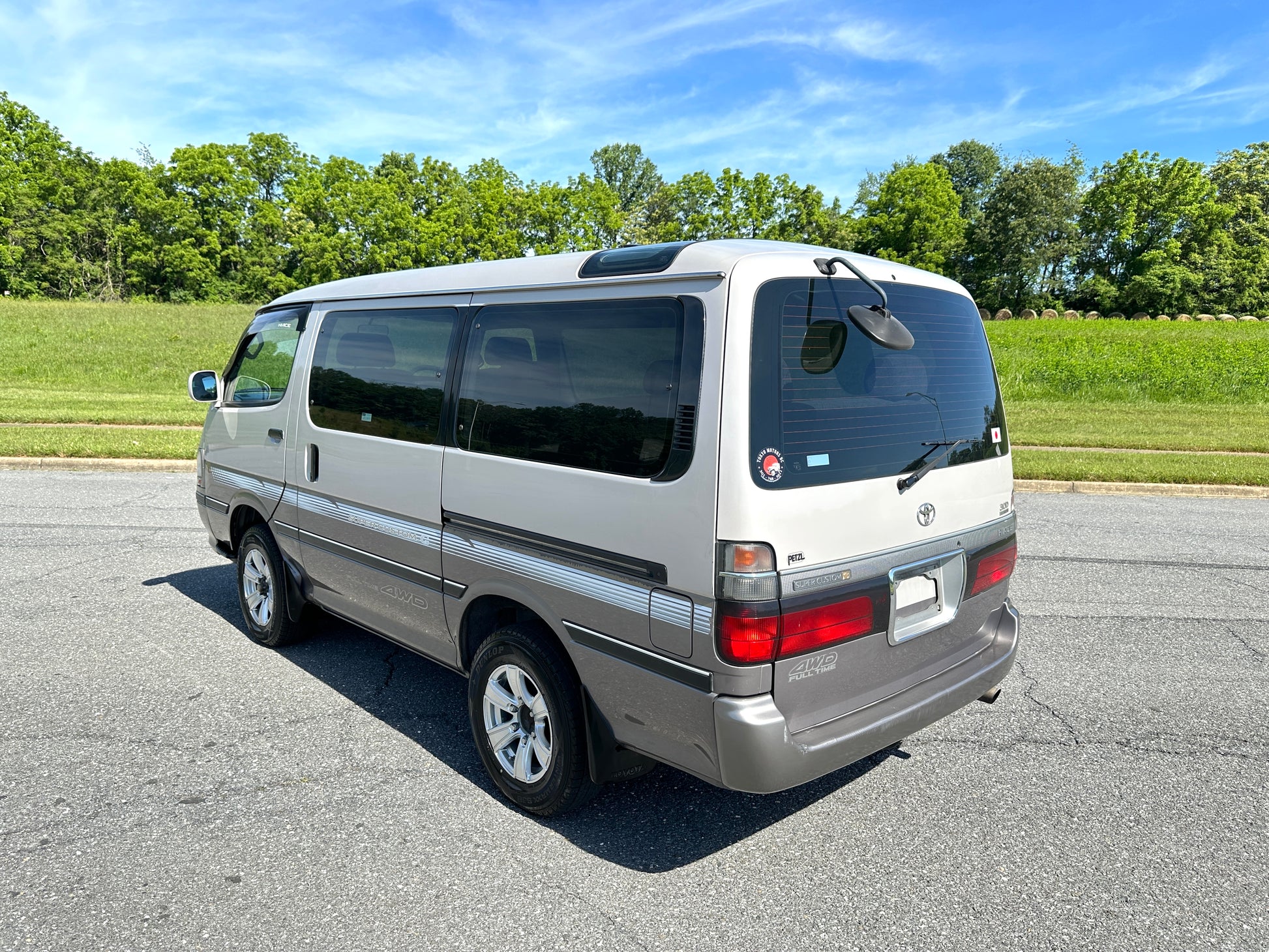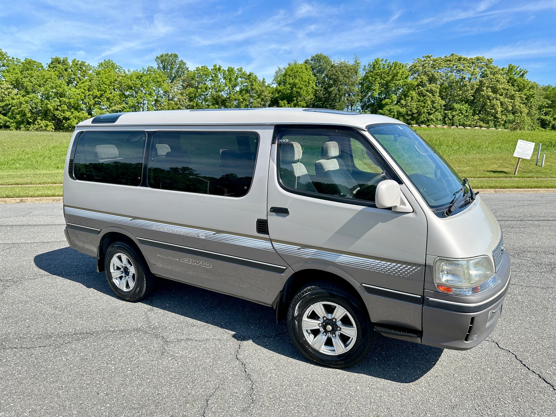 1998 TOYOTA HIACE SUPER CUSTOM G KZH106 ——138,122 Miles, “1KZ-TE”, 3.0 Liter Inline 4, Turbo Diesel, Automatic Transmission, Full Time 4WD, Venting Front Sunroof, Massive Central Sunroof, Power Rear Sunroof, Two-Tone Paint, Gray Cloth Upholstery, Factory 3rd Row, 180 Degree Swivel Middle Row, Full Flat Folding Seats, Dual Zone Climate Control, Power Windows, Power Retractable Mirrors, Power Locks, Aftermarket Wheels.