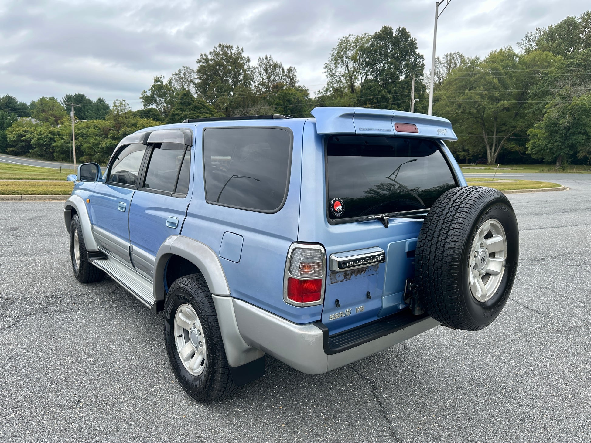 1998 TOYOTA HILUX SURF SSR-G VZN185 — 98,546 Miles, “5VZ-FE” V6, Gasoline, Automatic Transmission, Four-Speed Automatic Transmission With Overdrive, Transfer Case With High And Low Ranges, Selectable 4WD, Locking Center Differential, Azure Pearl Metallic Paint (8L6), Blue Cloth Upholstery, OEM Wheels Wrapped In Good Year Wrangler Tires, OEM Rainguards, ABS, Dual SRS Airbags, Power Windows, Power Locks, Power Folding Mirrors, Power Back Glass, Power Retractable Rear Back-Up Mirror, Automatic Dual-Zone Climate Control, Comfort Adjustable Suspension, Privacy Tint, Swing-Out Spare Tire Carrier With Full Size Spare Wheel, New Battery, New Front Brake Pads & Rotors.