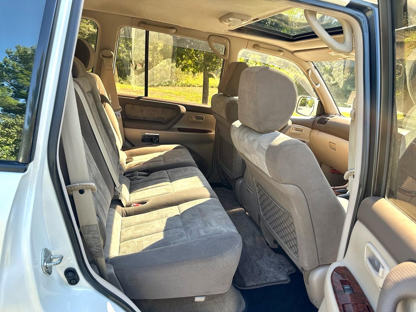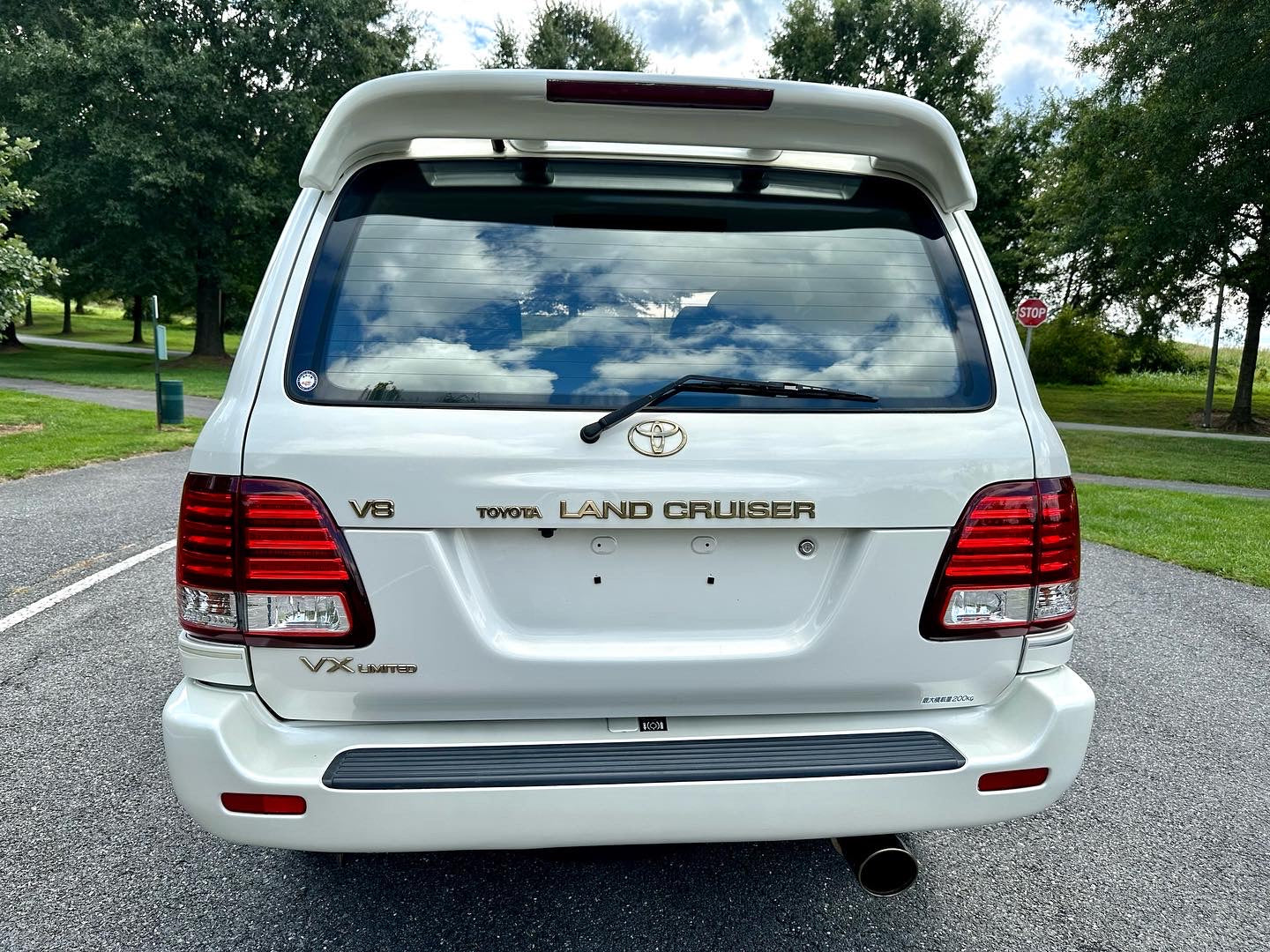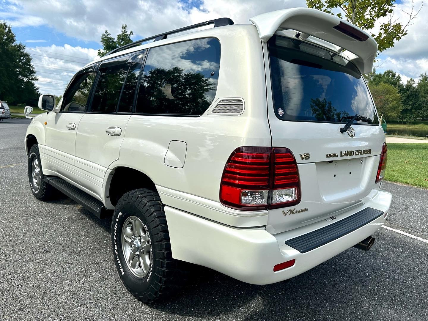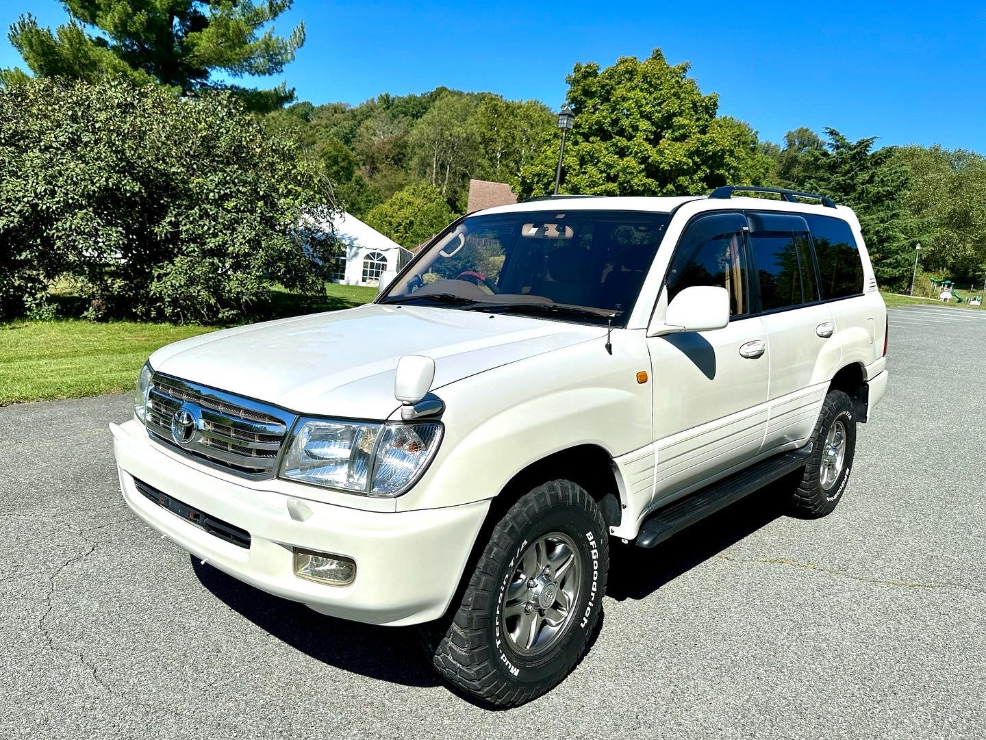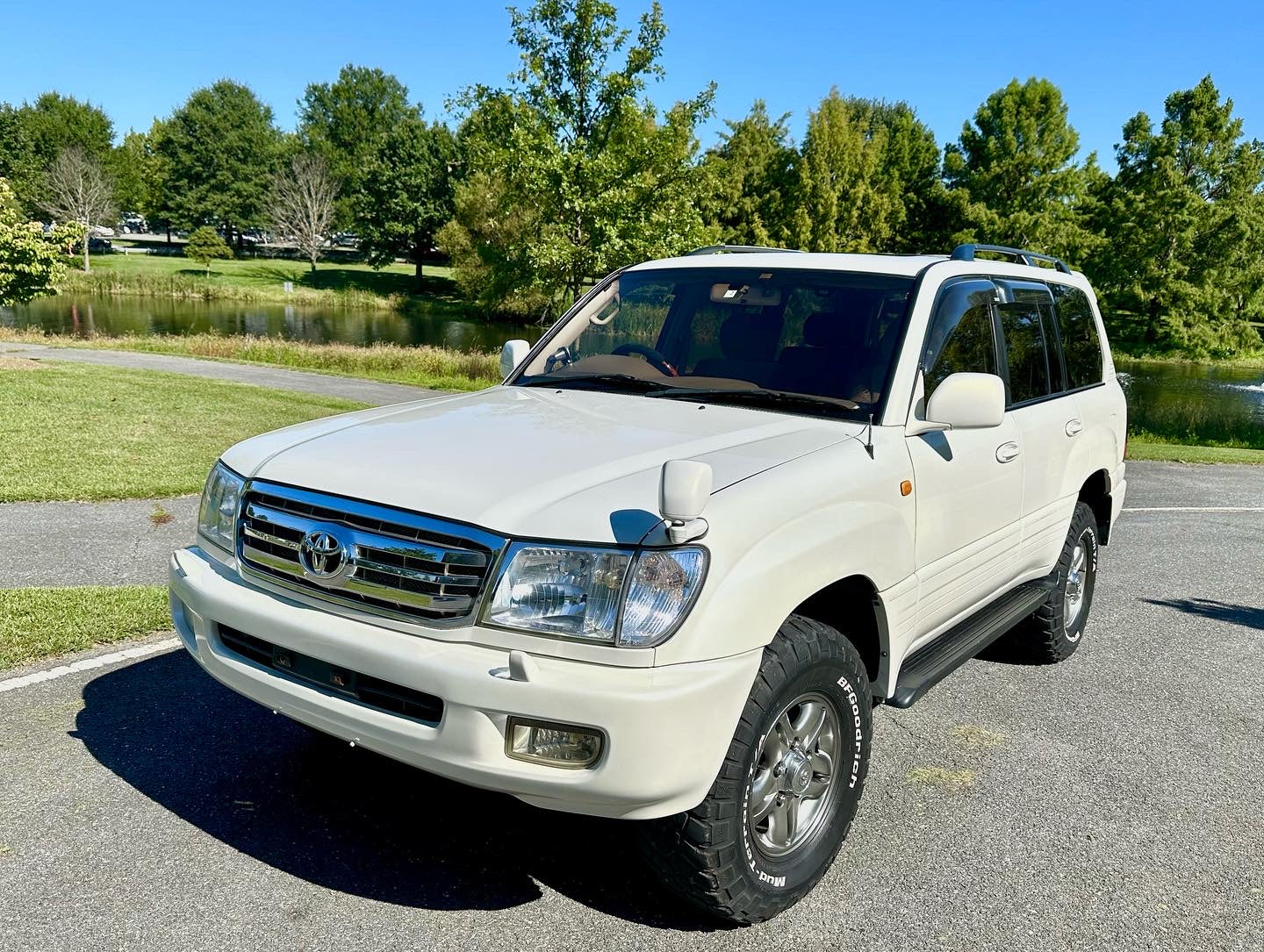 1998 Toyota Land Cruiser UZJ100 VX Limited ——98,213 Miles, “2UZ-FE”, 4.7 Liter V8, Automatic Transmission, FullTime 4WD, 2- Speed TransferCase, Center Locking Differential, White Pearl (057), Patterned Brown Cloth Upholstery, Dual Front SRS Airbags, SUNROOF, ABS, Tilt- Adjust Steering Column, OEM Woodgrain Steering Wheel, Power Driver Lumbar Adjustment, Dual Zone Climate Control, Cold A/C, Power Windows, Power Locks, Power Folding Mirrors, Privacy Tint, OEM Skid Plate, OEM RainGuards, CRUISE CONTROL, OEM HEIGHT ADJUSTABLE SUSPENSION, OEM 16” Wheels Wrapped in BFGoodrich Mud-Terrain T/A.