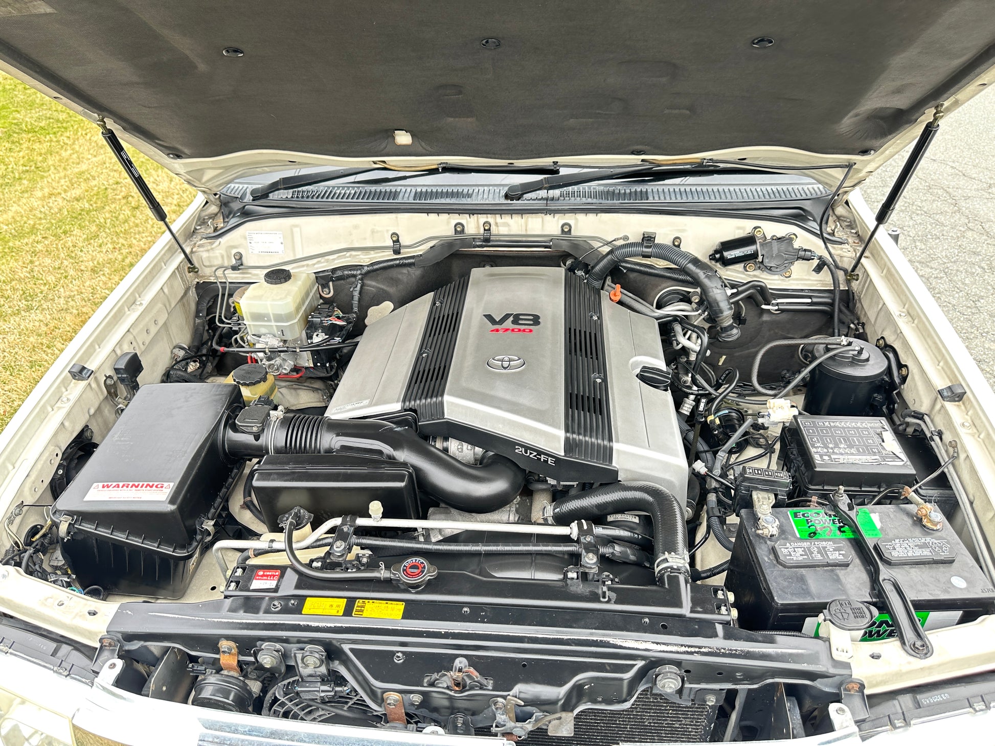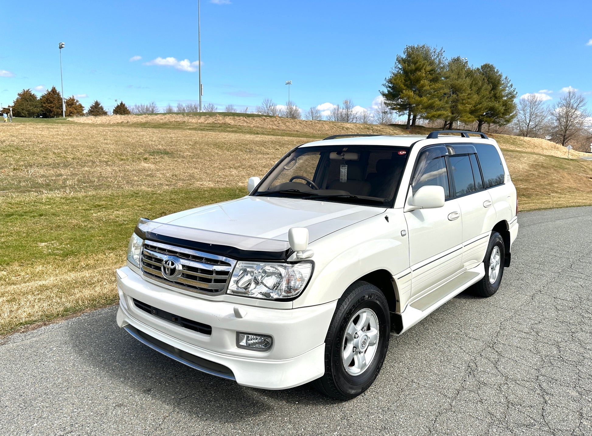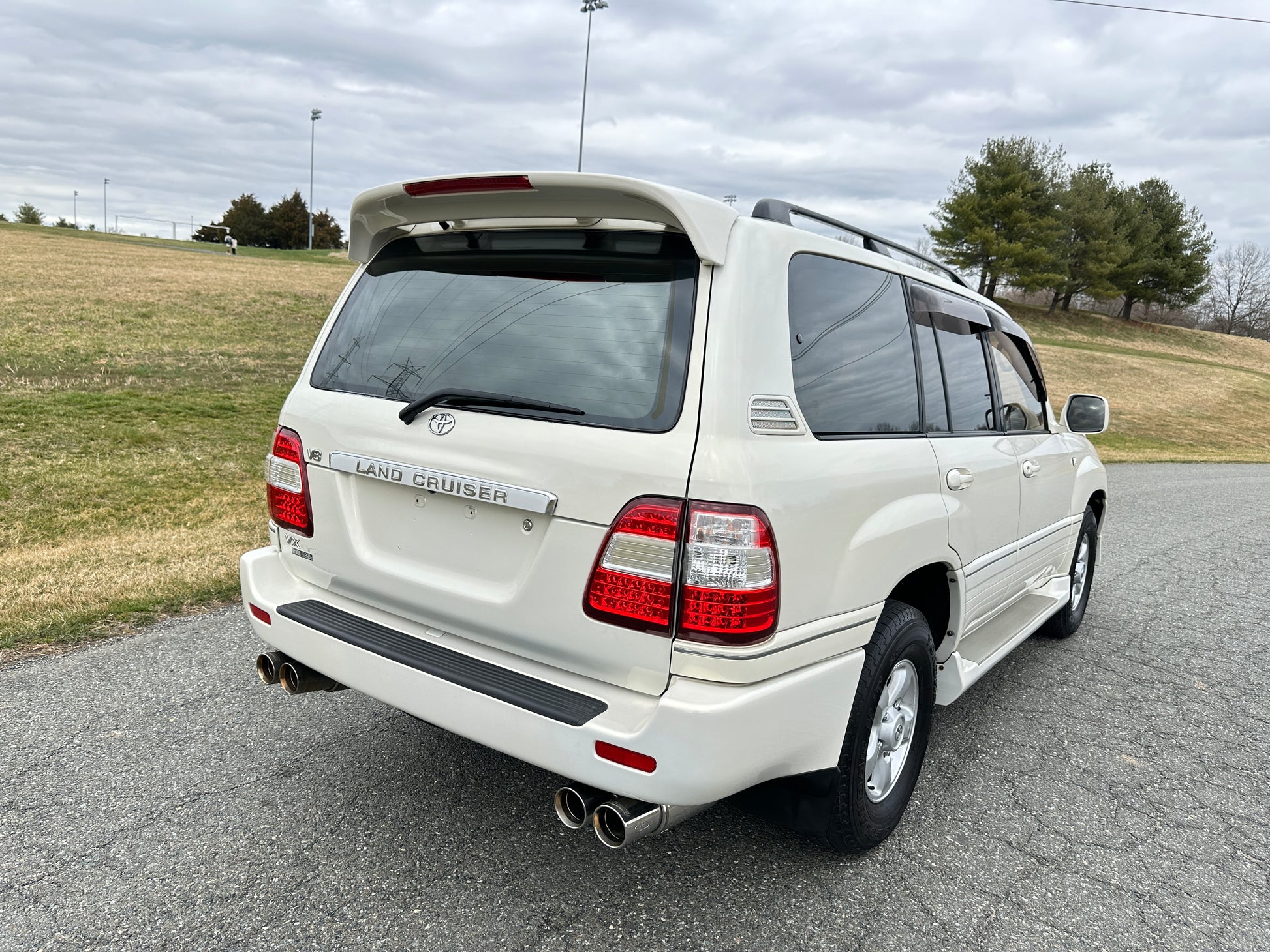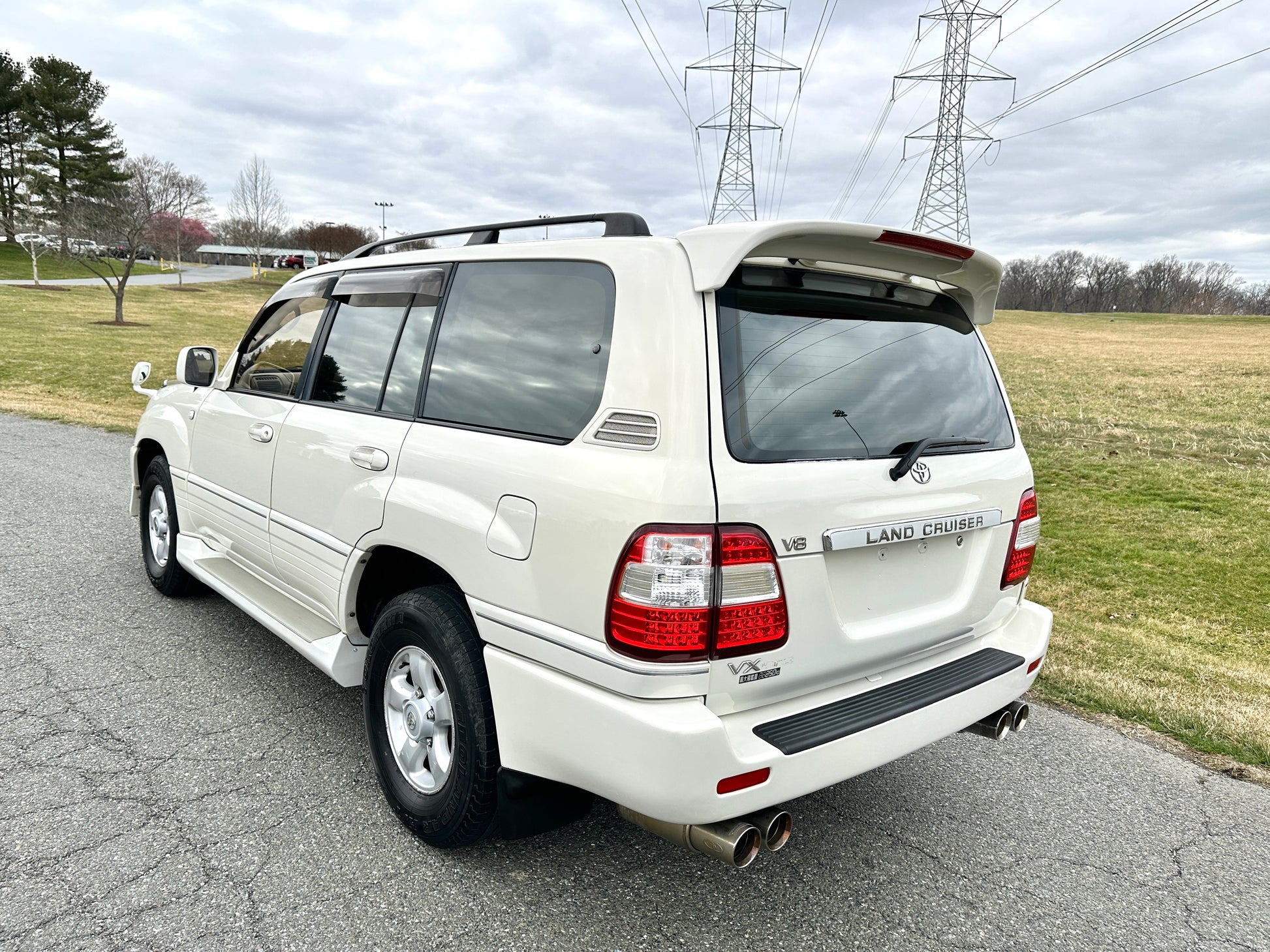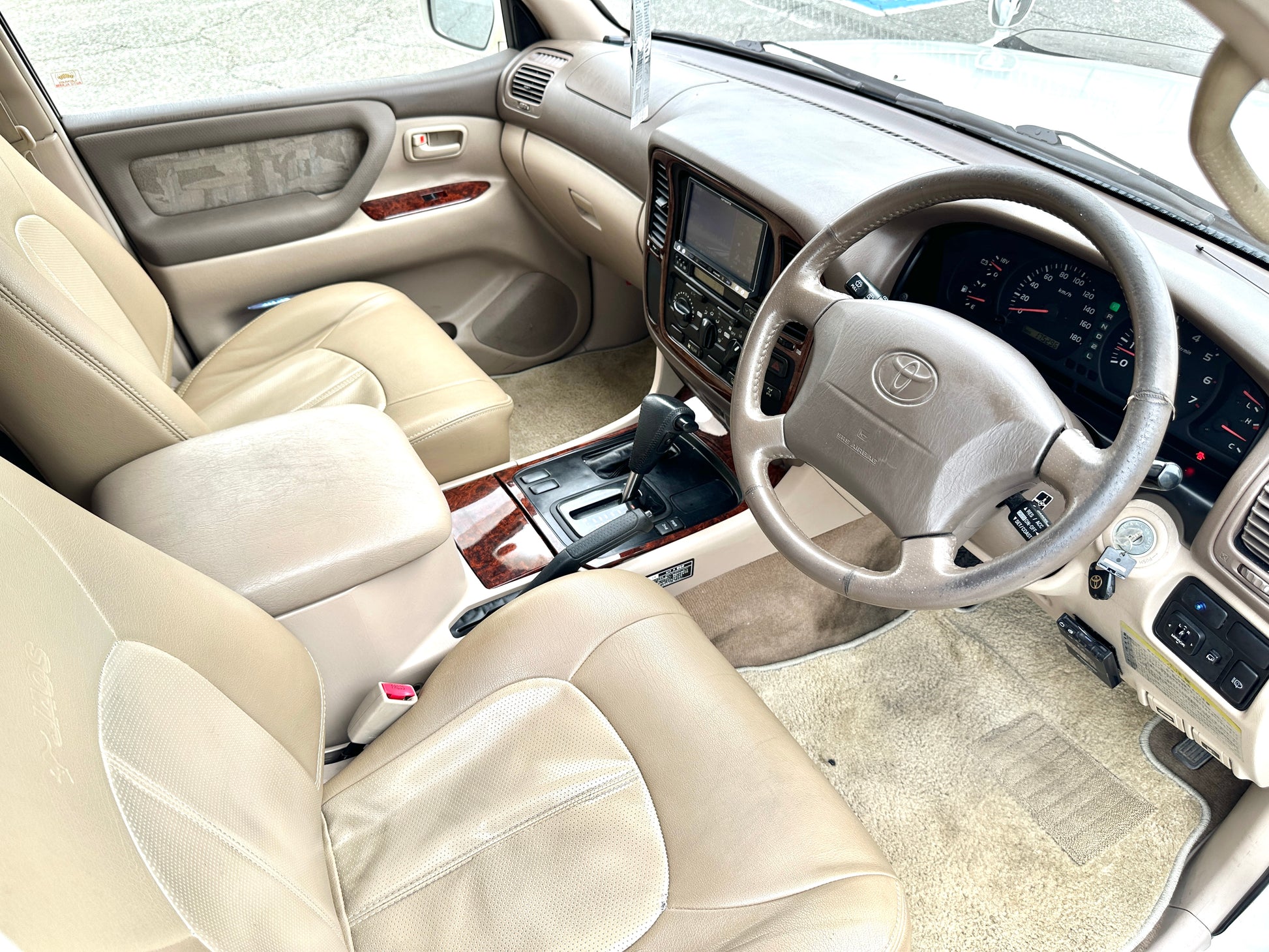 1998 Toyota Land Cruiser UZJ100 VX Limited ——108,913 Miles, “2UZ-FE”, 4.7 Liter V8, Automatic Transmission, FullTime 4WD, 2- Speed TransferCase, Center Locking Differential, White Pearl (057), Patterned Brown Cloth Upholstery With JAOS Branded Leather Seat Covers, Dual Front SRS Airbags, ABS, Tilt- Adjust Steering Column, OEM Woodgrain Accents, Power Driver Lumbar Adjustment, Dual Zone Climate Control, Cold A/C, Power Windows, Power Locks, Power Folding Mirrors, Privacy Tint, OEM Skid Plate, OEM RainGuards, CRUISE CONTROL, OEM Wheels, Rear Spoiler, GANADOR QUAD-TIP EXHAUST.