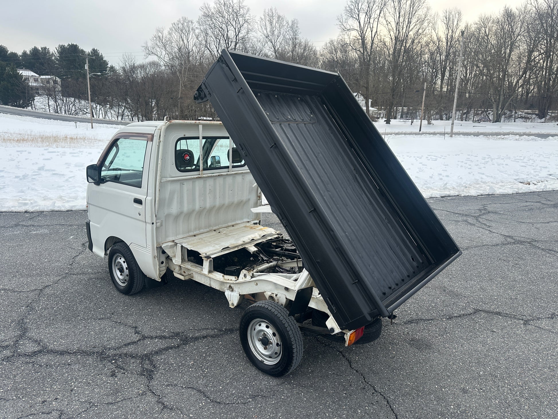 1999 DAIHATSU HIJET GD-S210P——69,637 Miles, “EF-SE” Engine, 659CC Inline-Three, ELECTRONIC FUEL INJECTION, Gasoline, Distributor-Less Ignition (DLI), 5-Speed Manual Transmission, Dual Range Transfer Case With High & Low Gears, Selectable 4WD, Air Conditioning & Heat, DUMP BED WITH DROP-DOWN SIDES, Heavy Duty Textured Paint On The Bed, 350kg Load Capacity, DIFF-LOCK, New Battery.