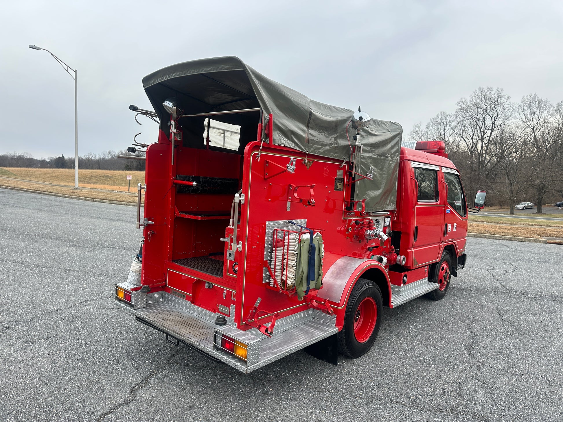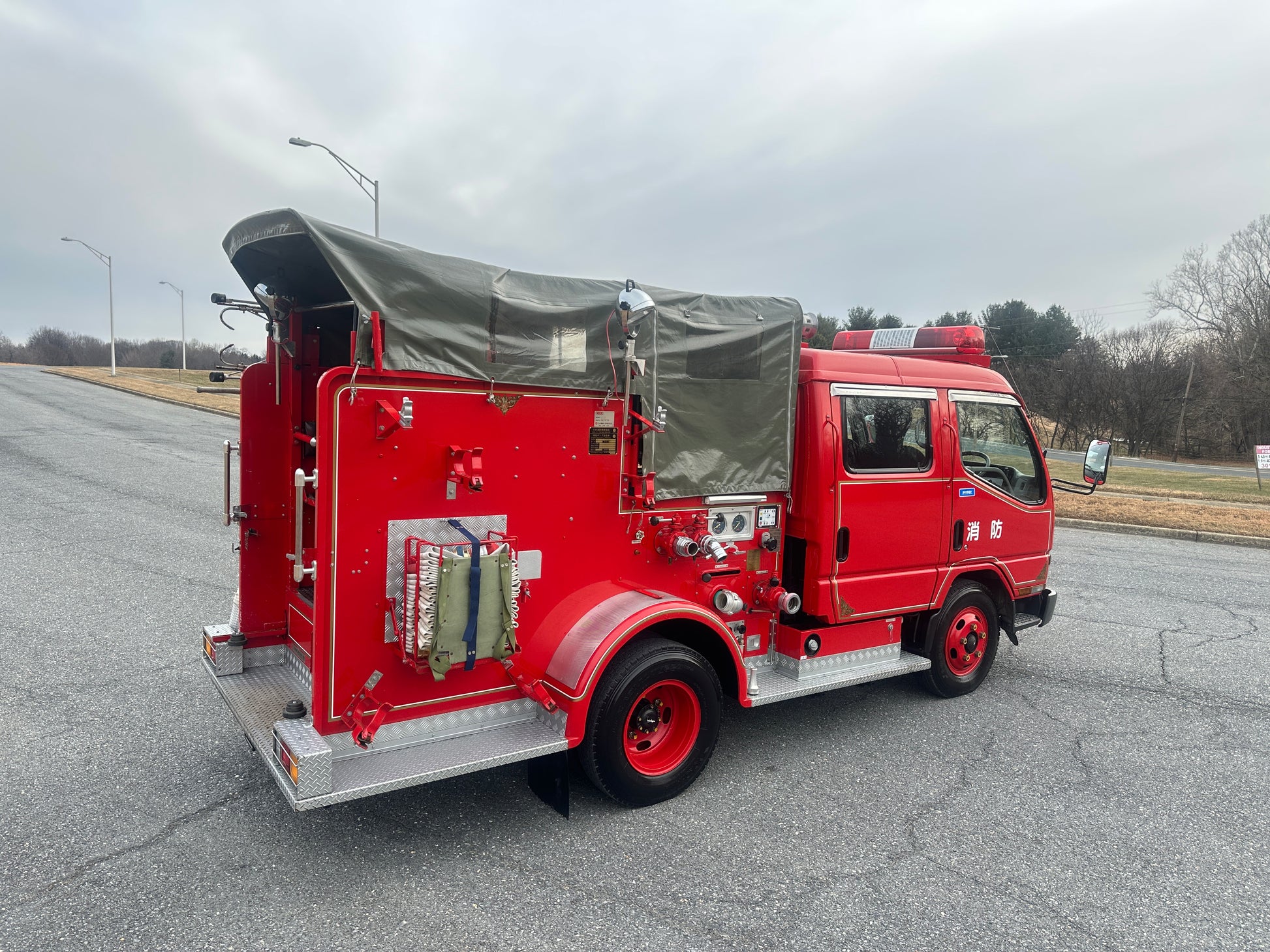 1999 MITSUBISHI CANTER FE53EB JAPANESE FIRE TRUCK—12,995 Miles. “4M51” 5,200cc, Inline Four, Diesel, 5 Speed Manual Transmission, RWD, Dually Rear Axle, Hill Start Assist, Engine Braking, DOUBLE CAB, Red Paint, Vinyl Upholstery, A/C & Heat, Power Windows, PTO Operated NIKKI Pump, Fire Hoses & Storage Compartments, Spotlights, Sirens & Oscillating Lights, PA Speaker, Fire Attachments.