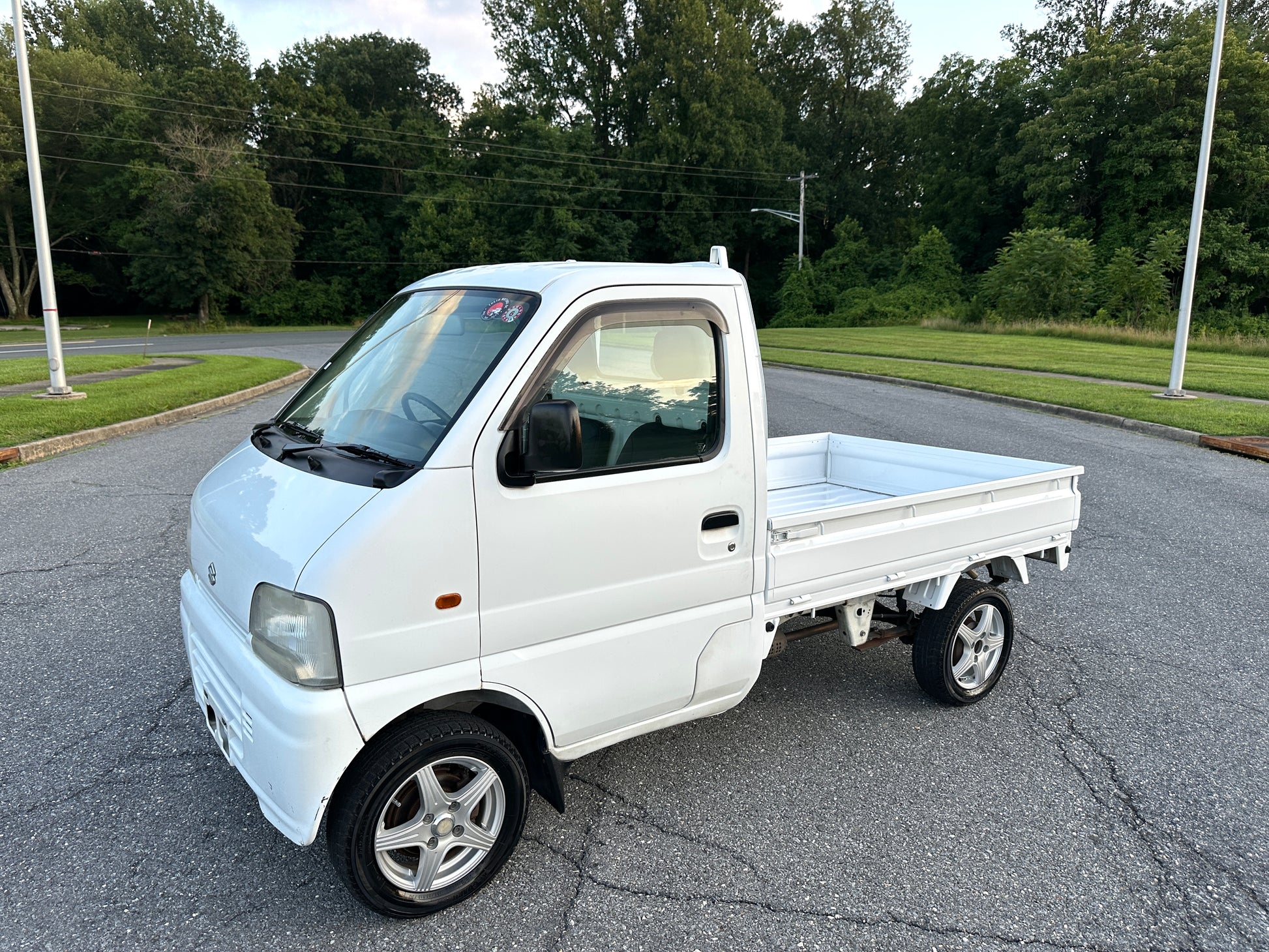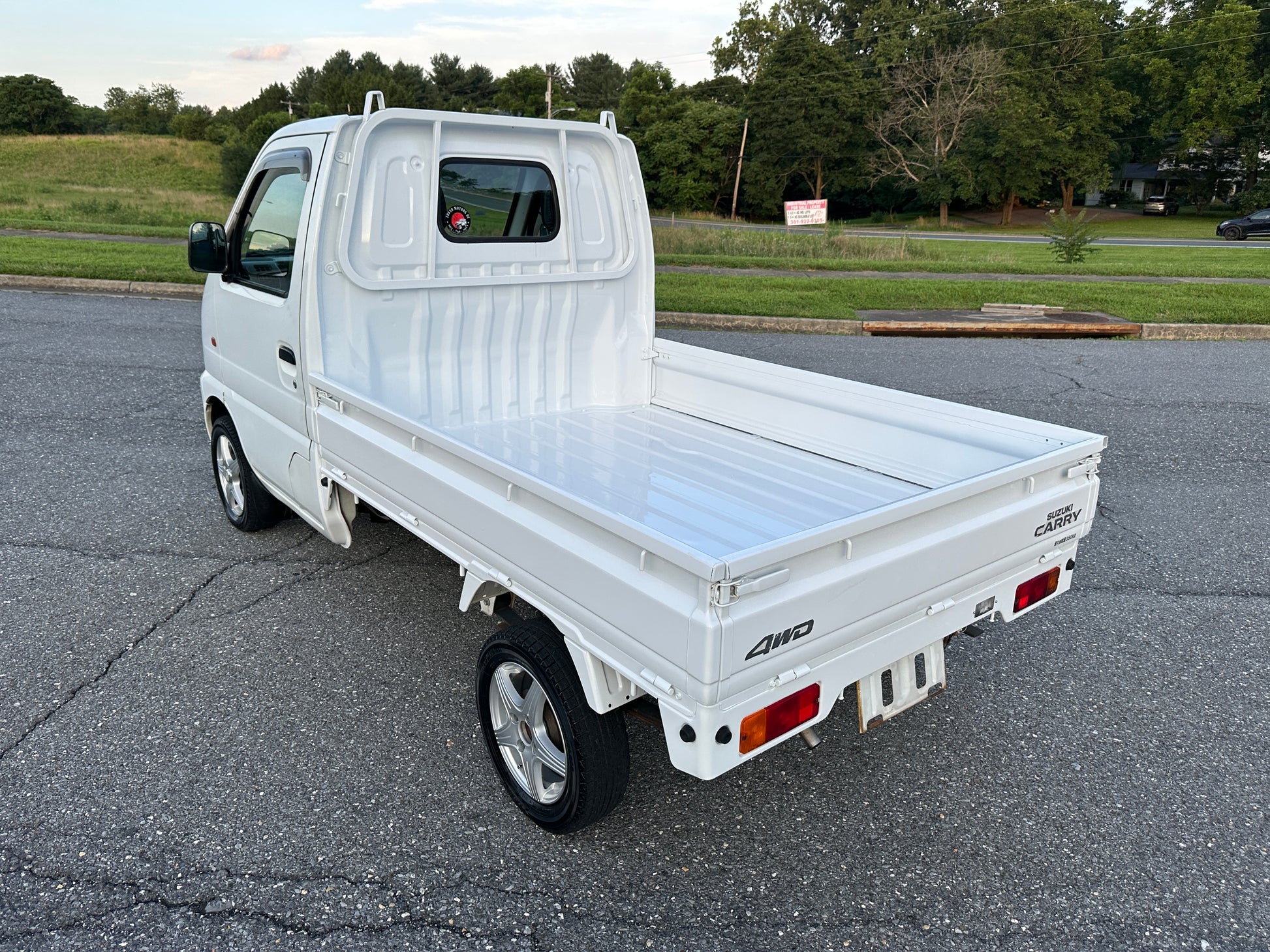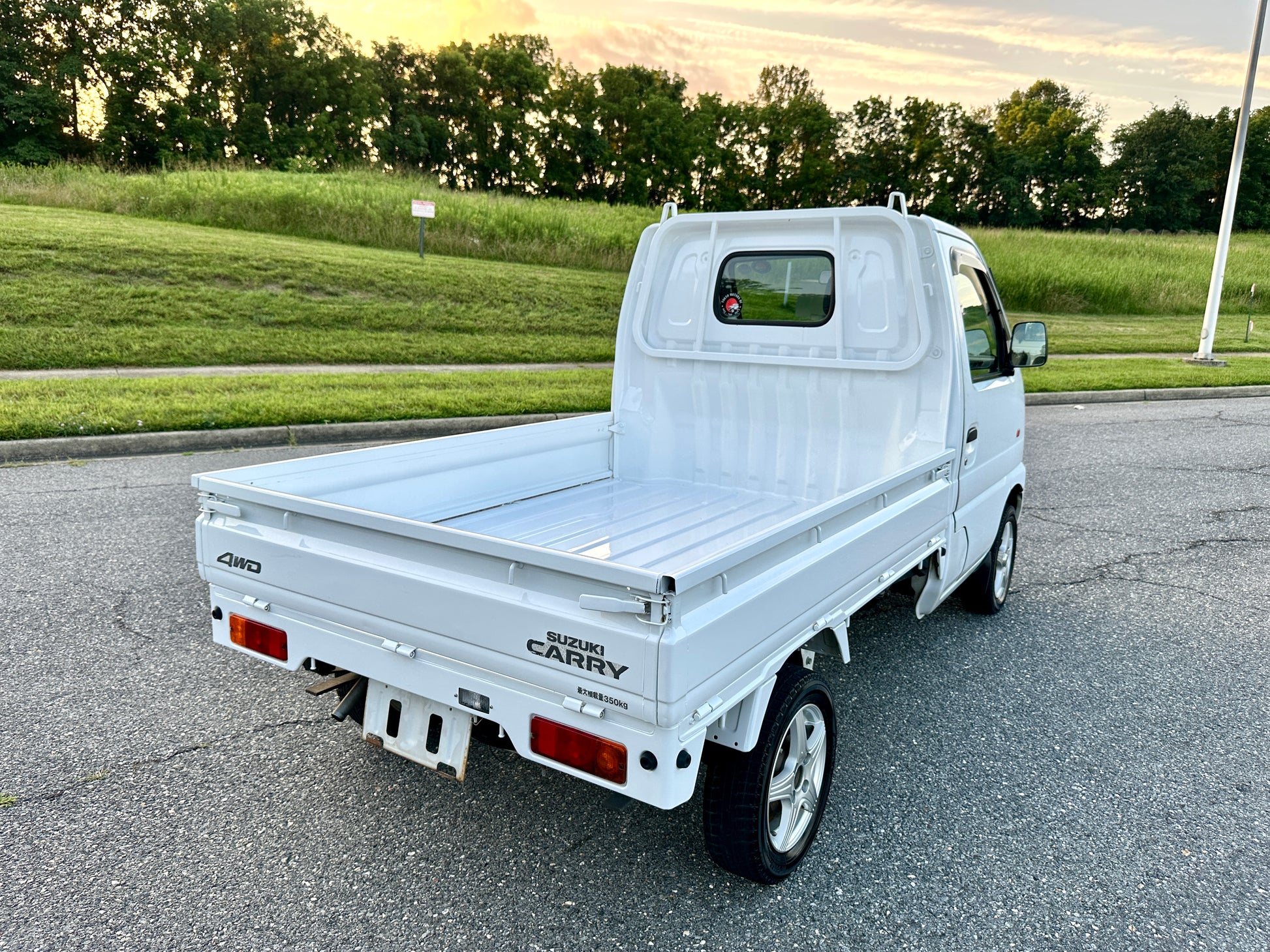 1999 SUZUKI CARRY GD-DB52T——33,849 Miles, “F6A” Engine, 660CC Inline-Three, ELECTRONIC FUEL INJECTED, Gasoline, 5-Speed Manual Transmission, Dual Range Transfer Case, Selectable 4WD, DROP-SIDE CARGO BED, 350kg Load Capacity, Heat & AIR CONDITIONING, Black Faux Leather Seat Covers, Aftermarket Wheels.
