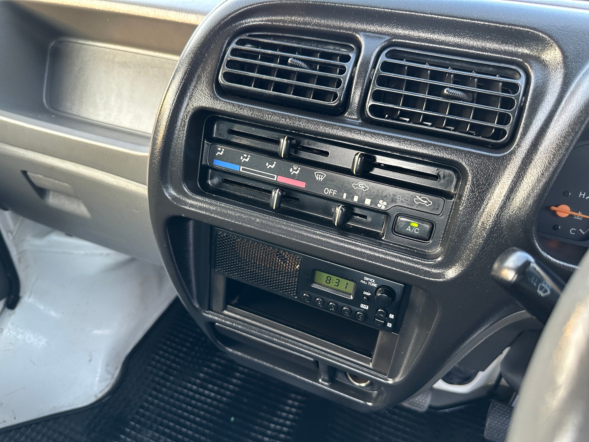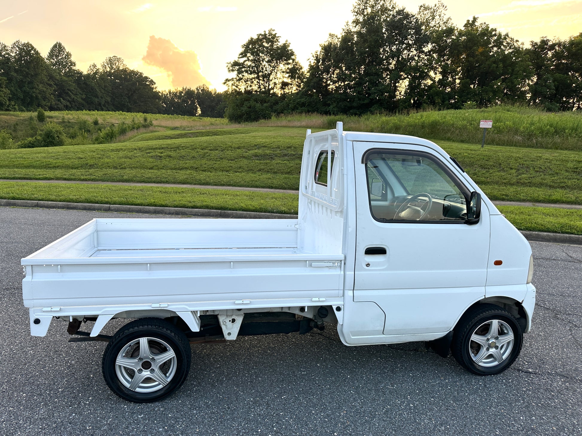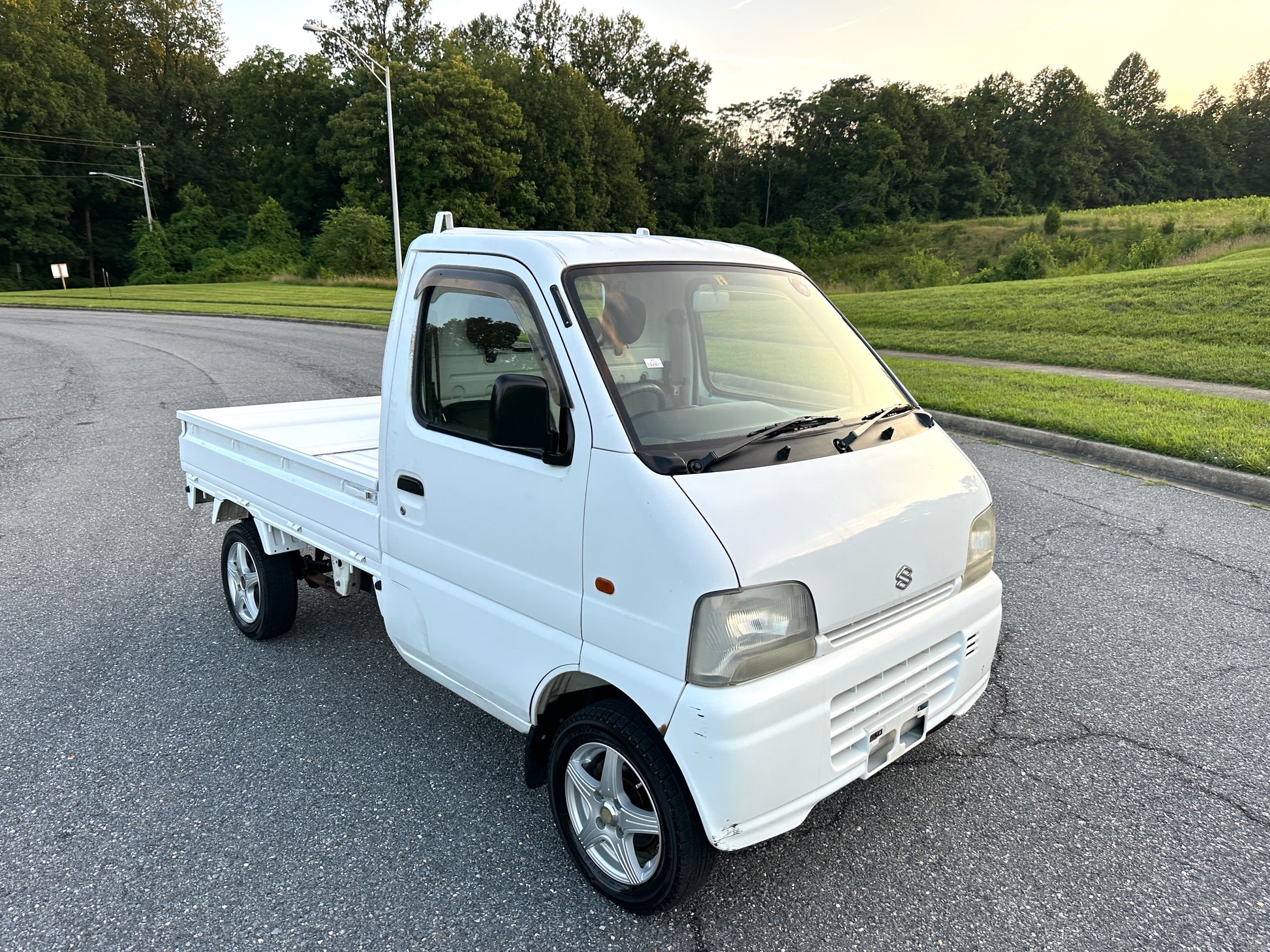 1999 SUZUKI CARRY GD-DB52T——33,849 Miles, “F6A” Engine, 660CC Inline-Three, ELECTRONIC FUEL INJECTED, Gasoline, 5-Speed Manual Transmission, Dual Range Transfer Case, Selectable 4WD, DROP-SIDE CARGO BED, 350kg Load Capacity, Heat & AIR CONDITIONING, Black Faux Leather Seat Covers, Aftermarket Wheels.