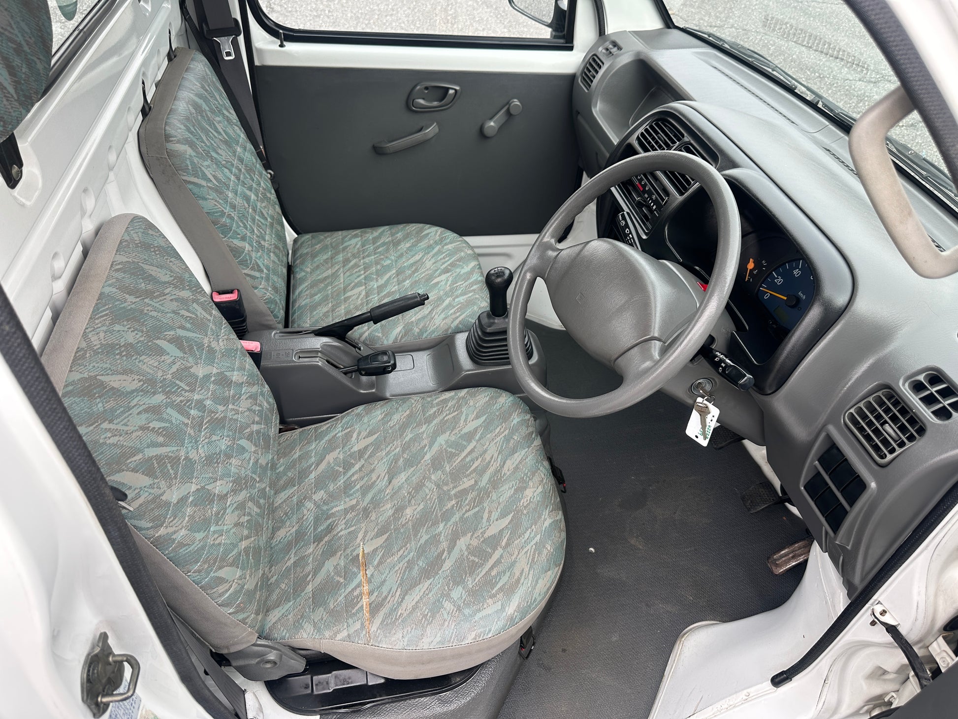 1999 SUZUKI CARRY GD-DB52T——26,241 Miles, “F6A” Engine, 660CC Inline-Three, ELECTRONIC FUEL INJECTED, Gasoline, 5-Speed Manual Transmission, Dual Range Transfer Case, Selectable 4WD, DROP-SIDE CARGO BED, 350kg Load Capacity, Heat & Fan.