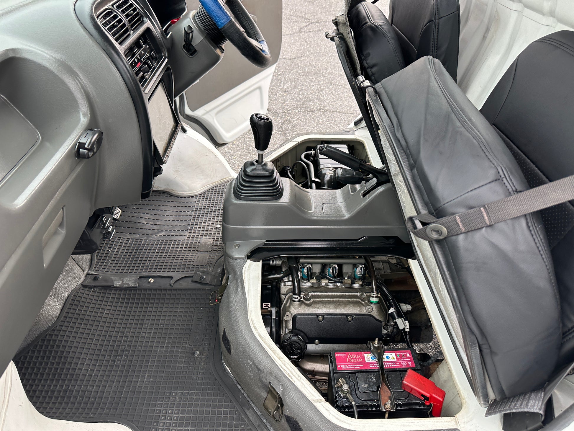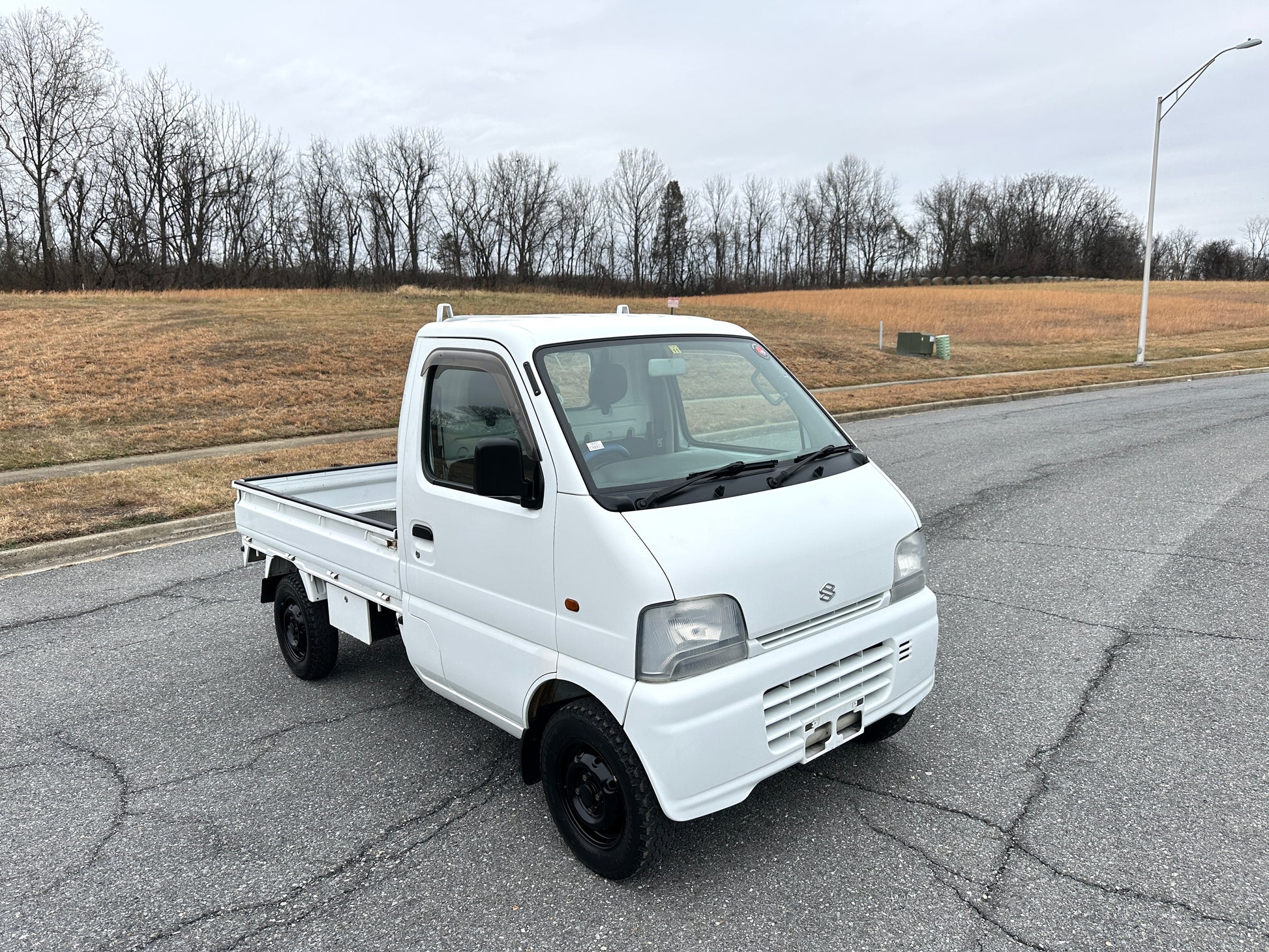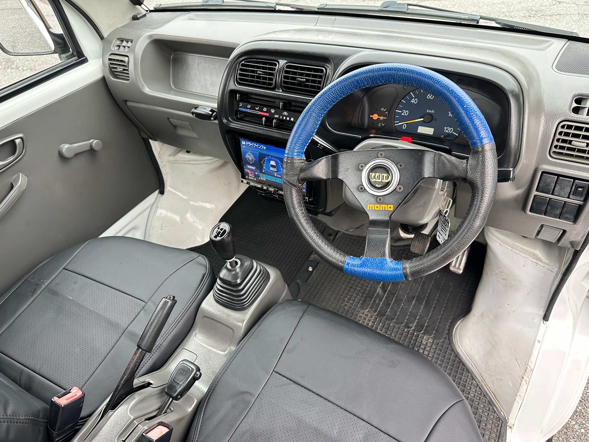 1999 SUZUKI CARRY GD-DB52T——53,133 Miles, “F6A” Engine, 660CC Inline-Three, ELECTRONIC FUEL INJECTED, Gasoline, 5-Speed Manual Transmission, Dual Range Transfer Case, Selectable 4WD, DROP-SIDE CARGO BED, 350kg Load Capacity, Heat & AIR CONDITIONING, Faux Leather Seat Covers, MOMO Steering Wheel.