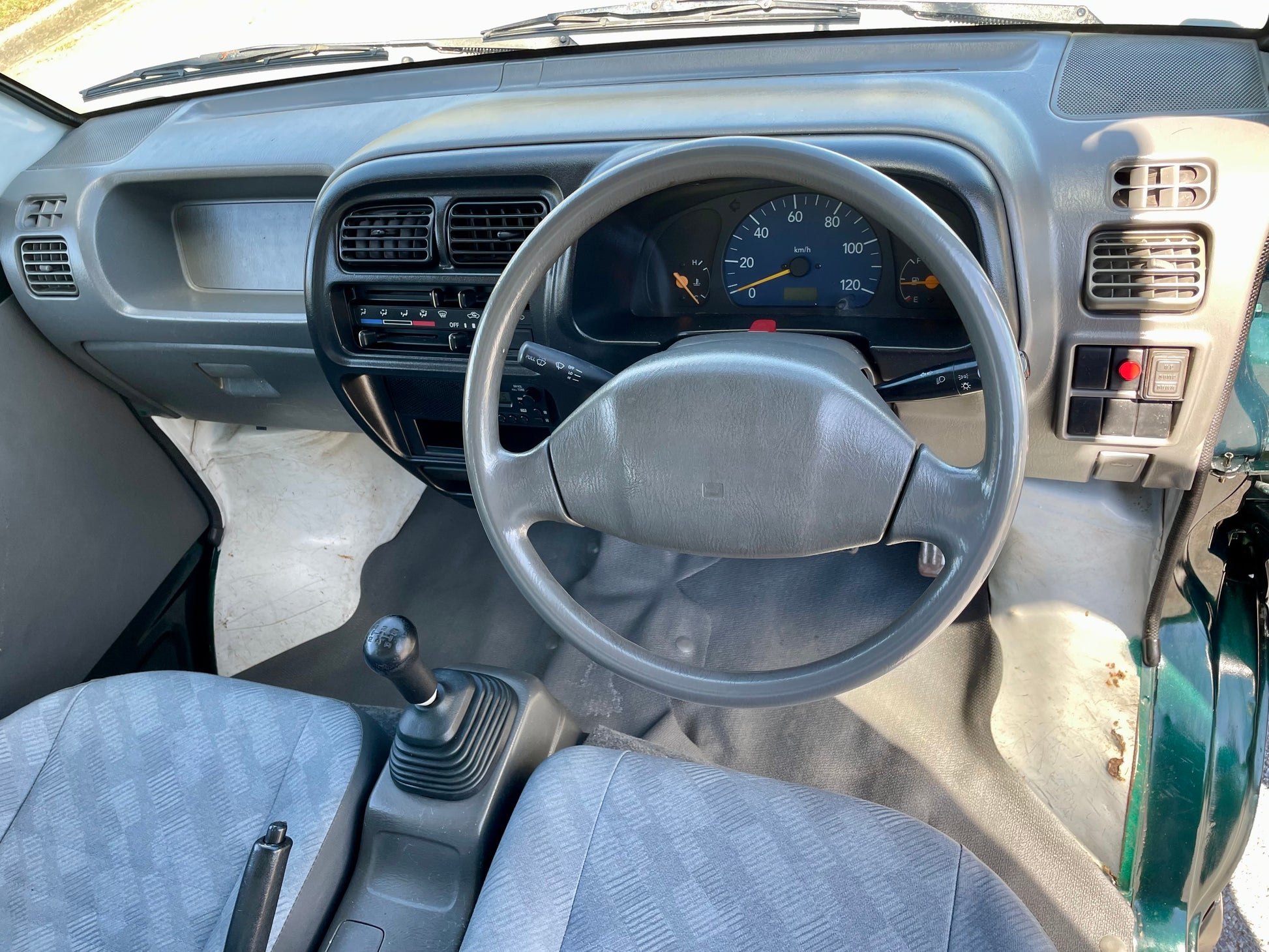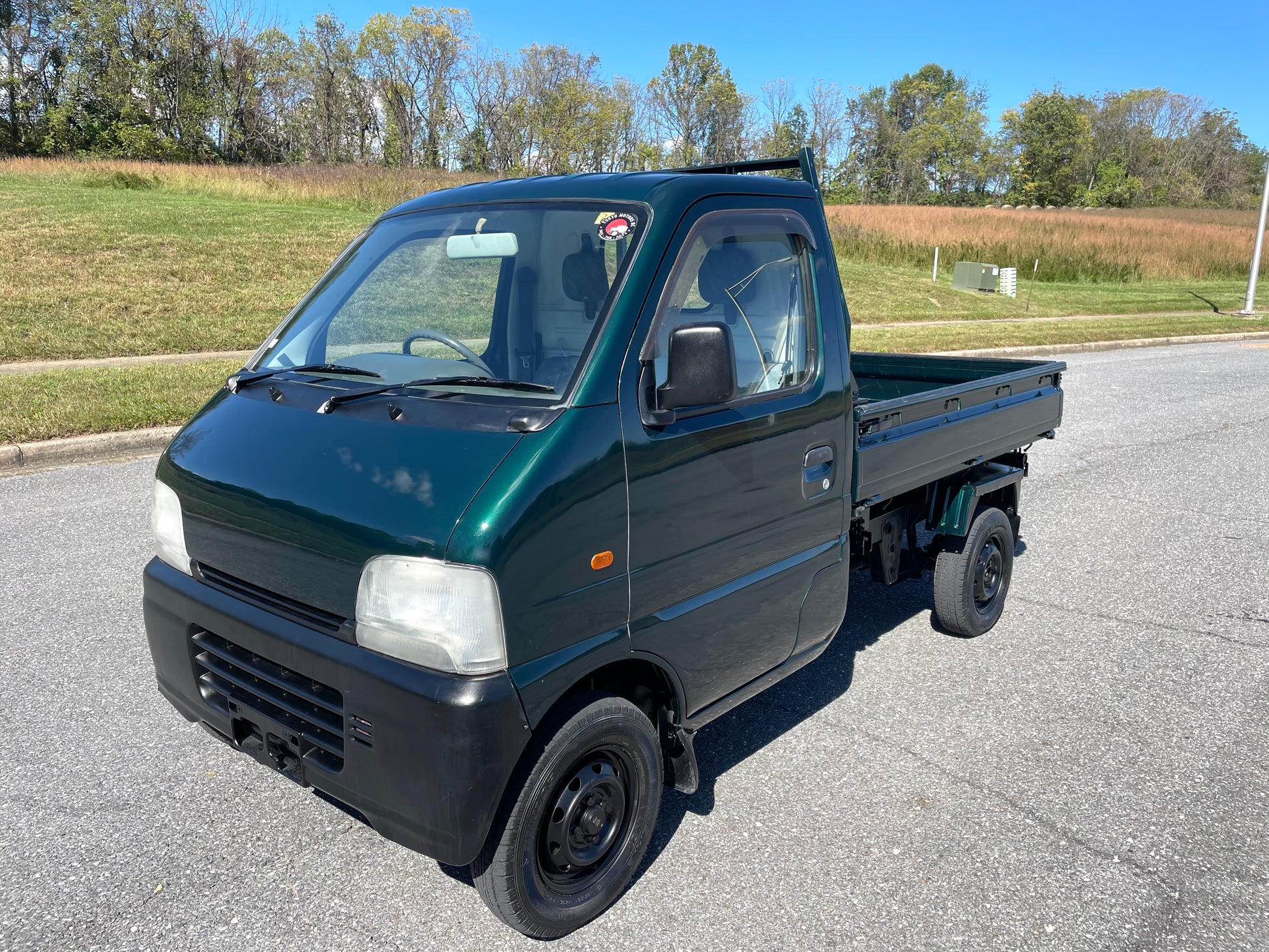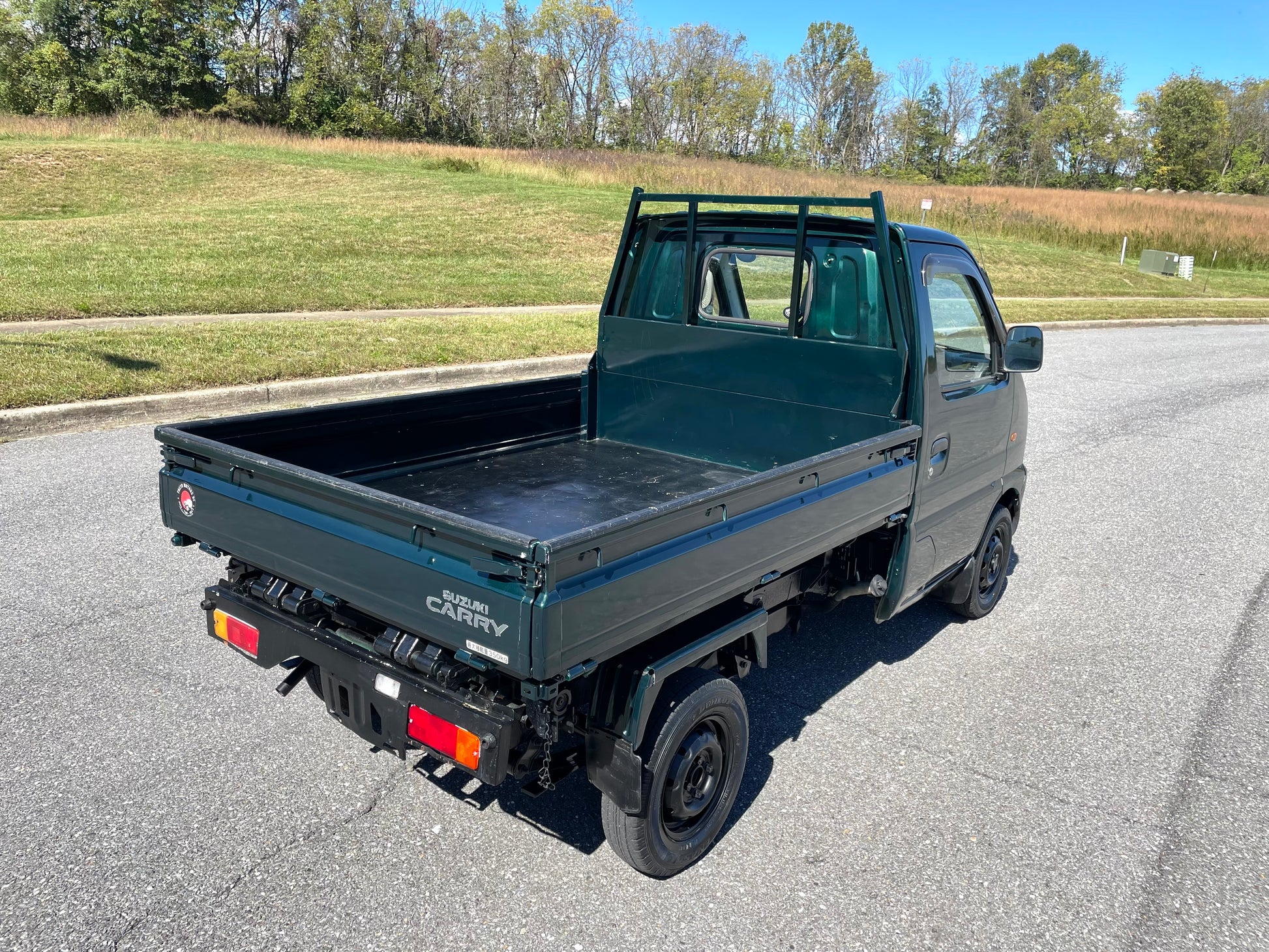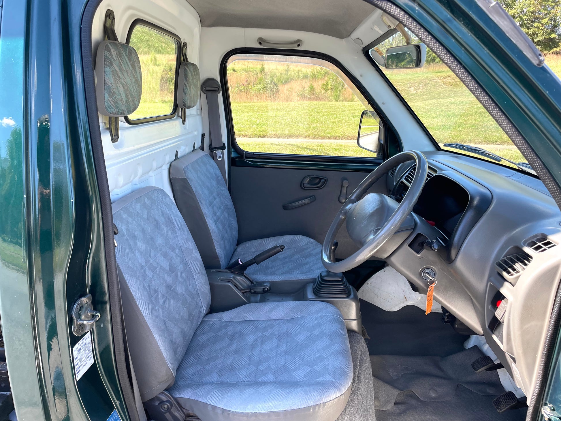 1999 SUZUKI CARRY GD-DB52T—— 46,760 Miles, “F6A” Engine, 660CC Inline-Three, ELECTRONIC FUEL INJECTED, Gasoline, 5-Speed Manual Transmission, Dual Range Transfer Case, Selectable 4WD, CUSTOM BRITISH RACING GREEN PAINT-JOB, DUMP BED WITH THE DROP-SIDES, SCISSOR LIFT With 350kg Load Capacity, Heat & Fan.