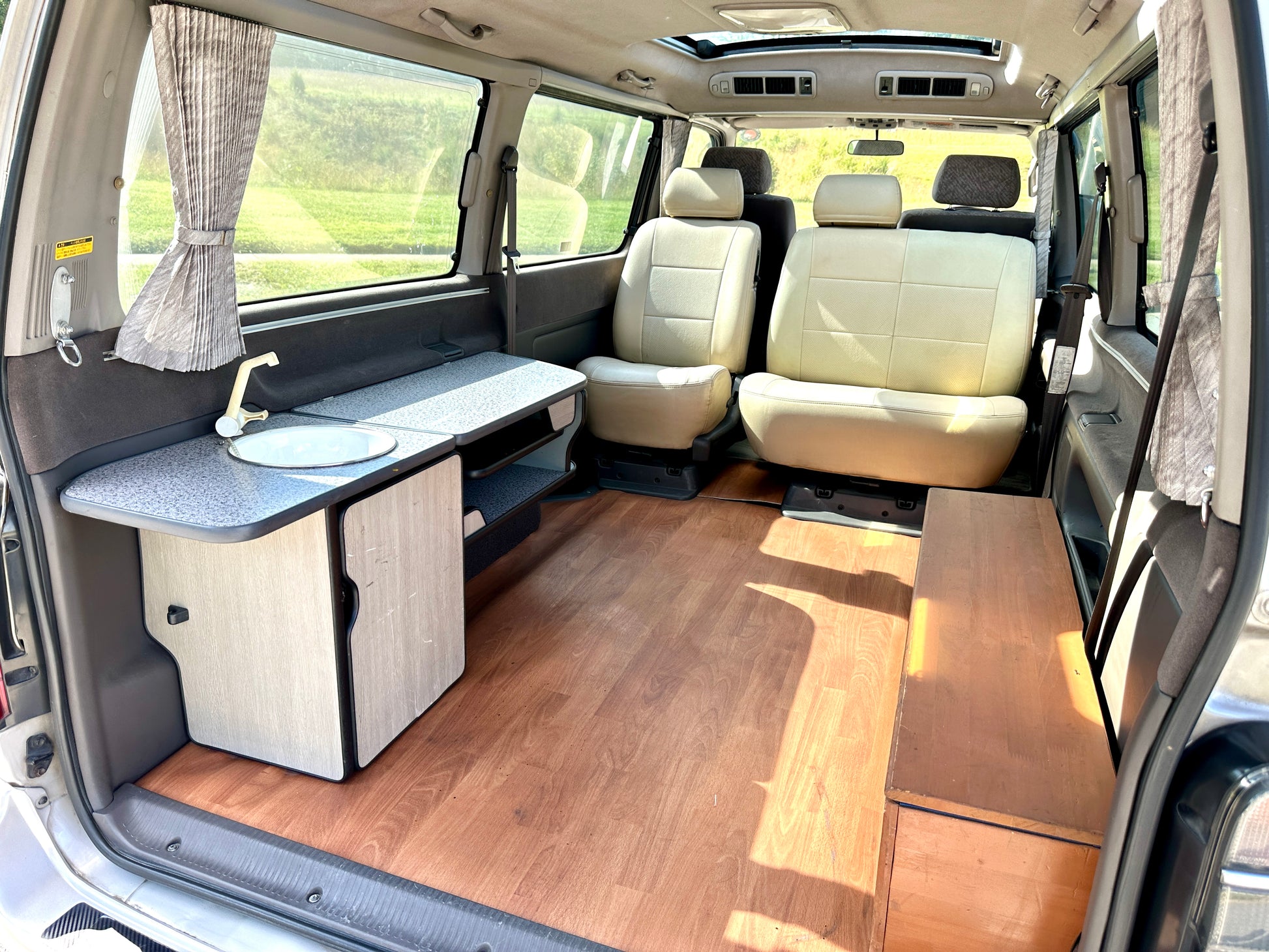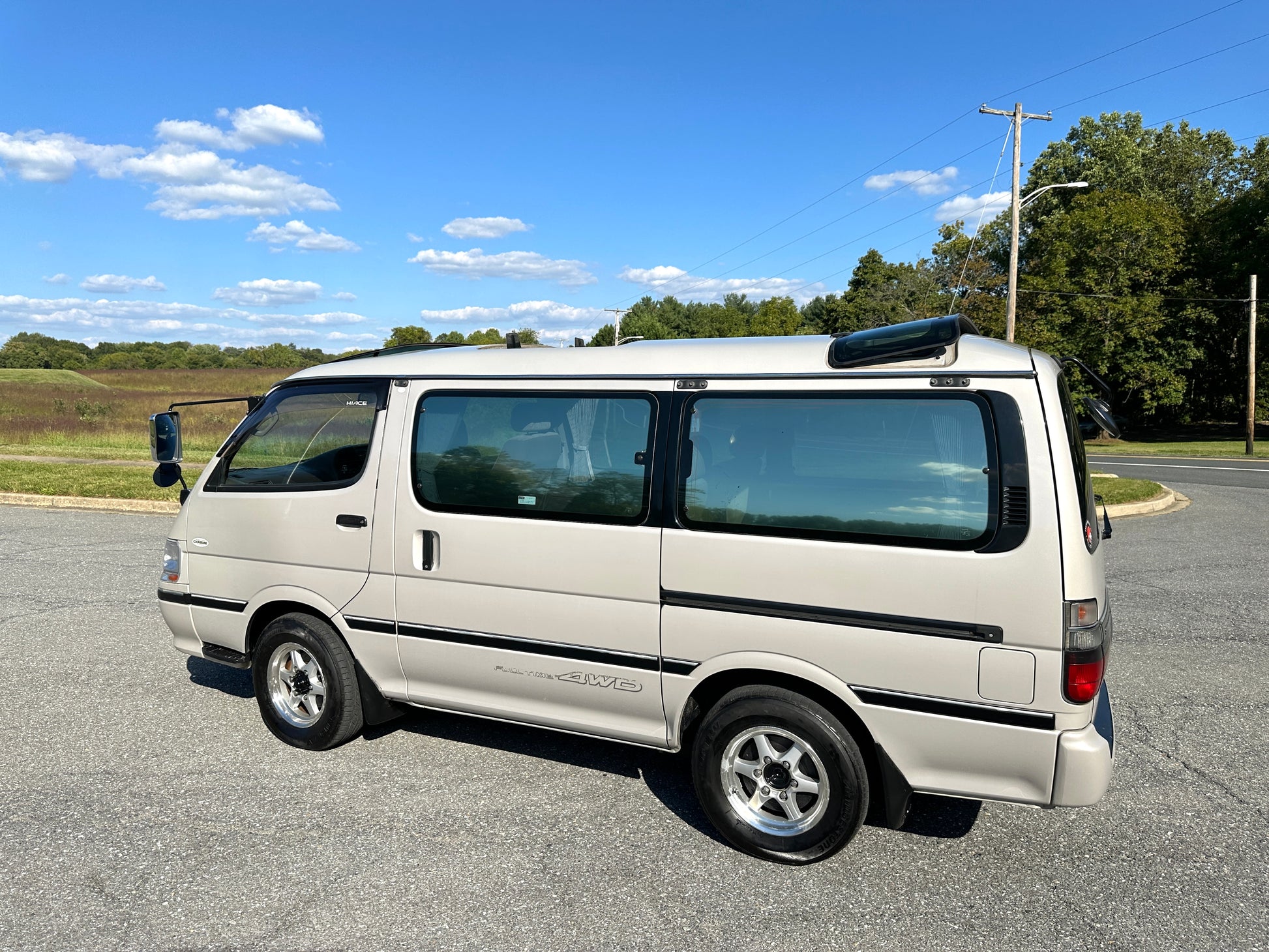 1999 TOYOTA HIACE SUPER CUSTOM G, PLEASURE WAGON CHARME KZH106 ——157,812 Miles, “1KZ-TE”, 3.0 Liter Inline 4, Turbo Diesel, Automatic Transmission, Full Time 4WD, ABS, SRS AIRBAGS, Venting Front Sunroof, Massive Central Sunroof, Power Rear Sunroof, Desert Dune Metallic Paint (1A5), Brown Cloth Upholstery, 180 Degree Swivel Middle Row With Seat Covers, Full Flat Folding Seats, Dual Zone Climate Control, Power Windows, Power Mirrors, Power Locks, Soft Closing Sliding Door, Aftermarket Wheels, NEW BATTERIES & ALTERNATOR, CAMPER PLATFORM WITH SINK, SHORE POWER CONNECTOR.