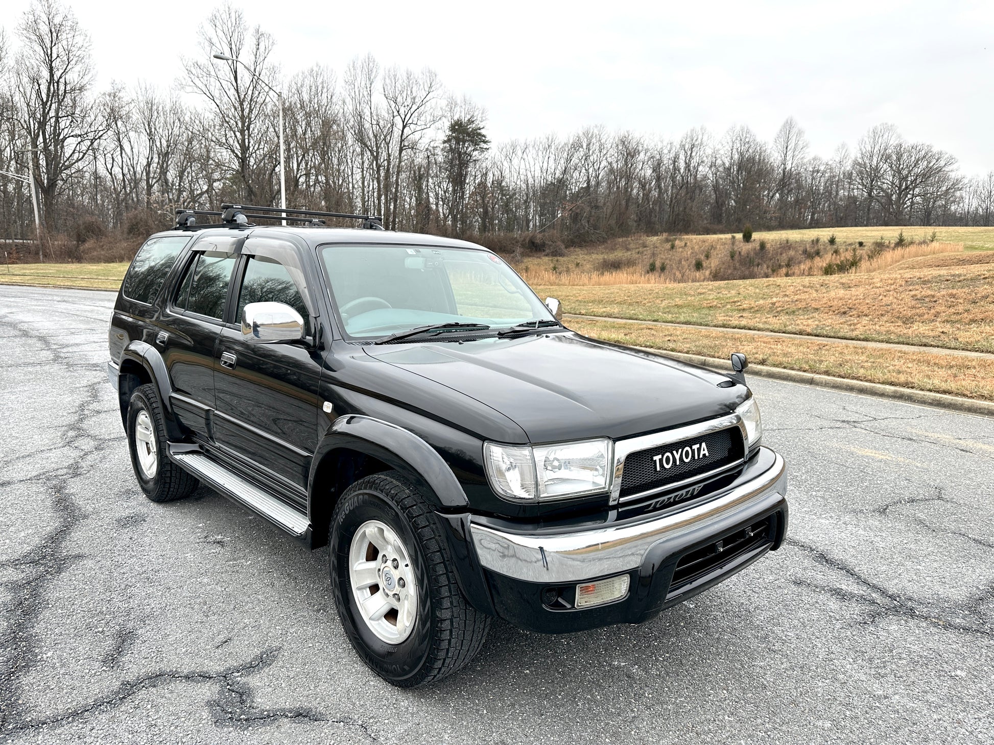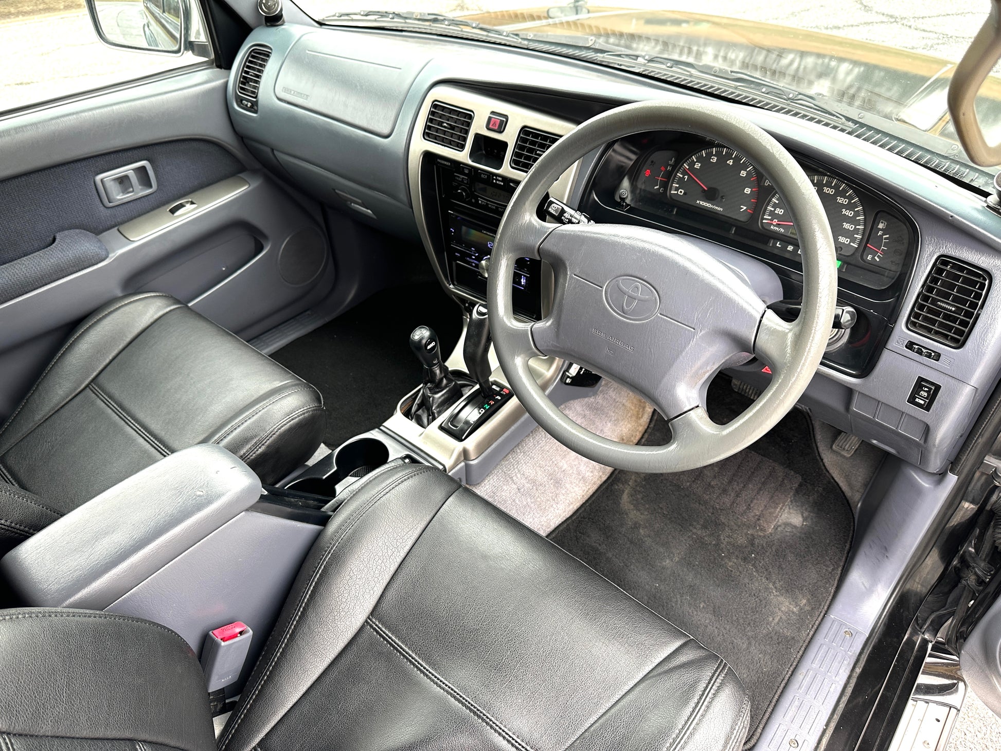 1999 TOYOTA HILUX SURF SSR-X RZN185 — 140,562 Miles, “3RZ-FE” 2.7 Liter, Inline 4, Gasoline, Four-Speed Automatic Transmission With Overdrive, Transfer Case With High And Low Ranges, Selectable 4WD, Locking Center Differential, Black Metallic Paint, Blue Cloth Upholstery, With Black Leather Seat Covers, OEM Wheels, OEM Rainguards, ABS, Dual SRS Airbags, Power Windows, Power Locks, Power Folding Mirrors, Automatic Dual-Zone Climate Control, Privacy Tint, Roof Rack Cross-Rails.