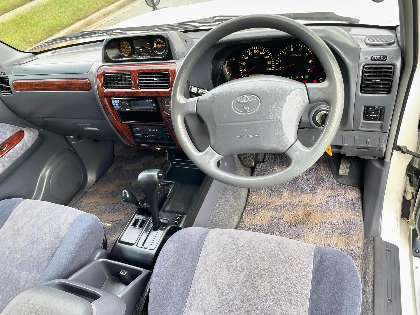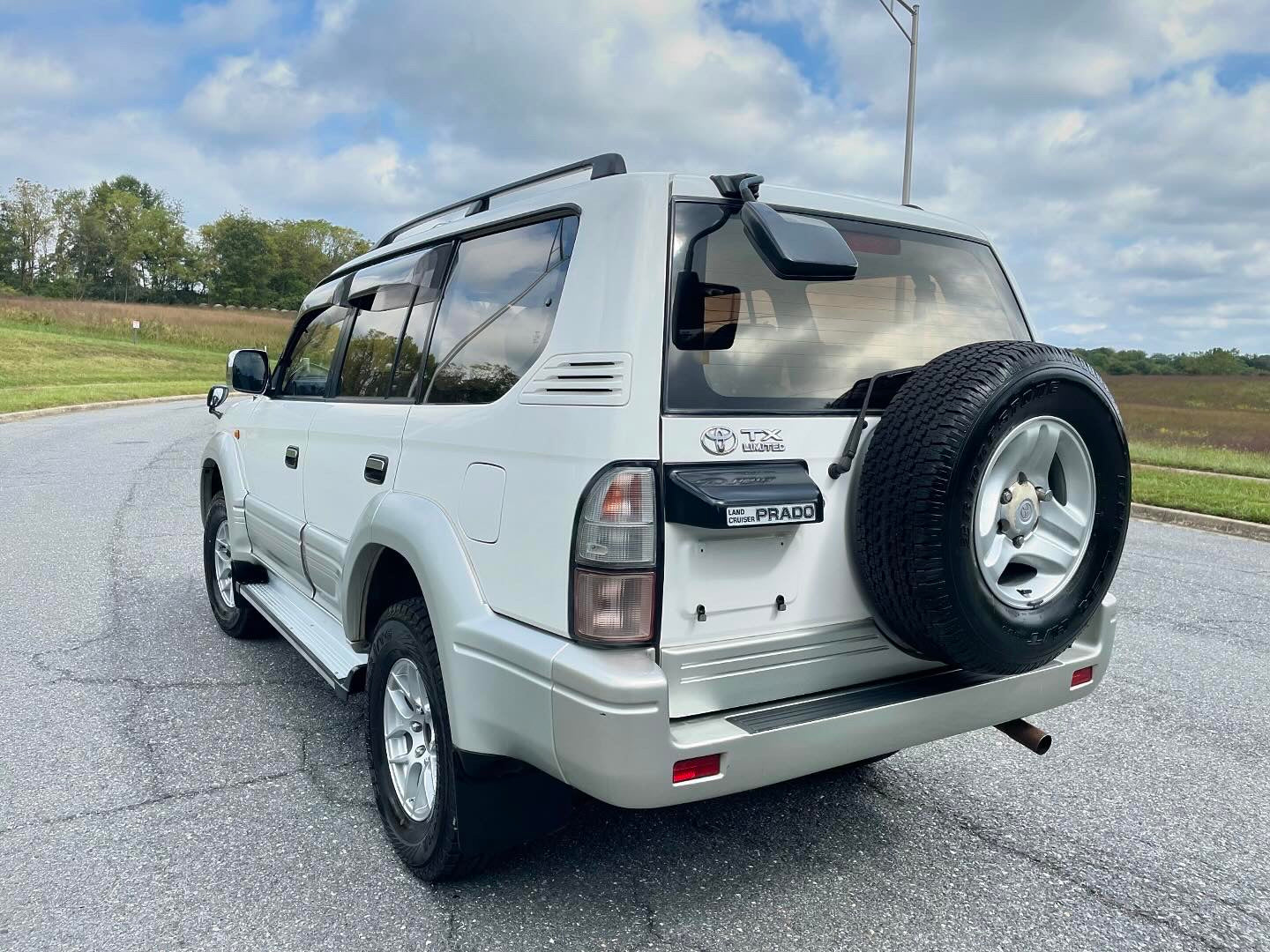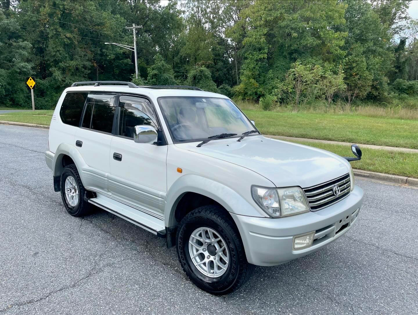 1999 Toyota Land Cruiser Prado TX LIMITED RZJ95——115,663 Miles, “3RZ-FE” I4, Gasoline, Automatic Transmission, Transfer Case With High And Low Ranges, Full-Time 4WD, Locking Center Differential, Natural White / Millennium Silver Metallic Two-Tone (K72), Patterned Blue Cloth Upholstery, SUNROOF, 3RD ROW SEATS, Aftermarket Wheels, OEM Rainguards, ABS, Dual SRS Airbags, Field Monitor System, Power Windows, Power Locks, Power Folding Mirrors, Automatic Dual-Zone Climate Control, Fog-Lights.