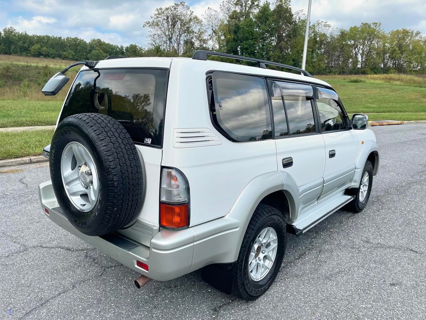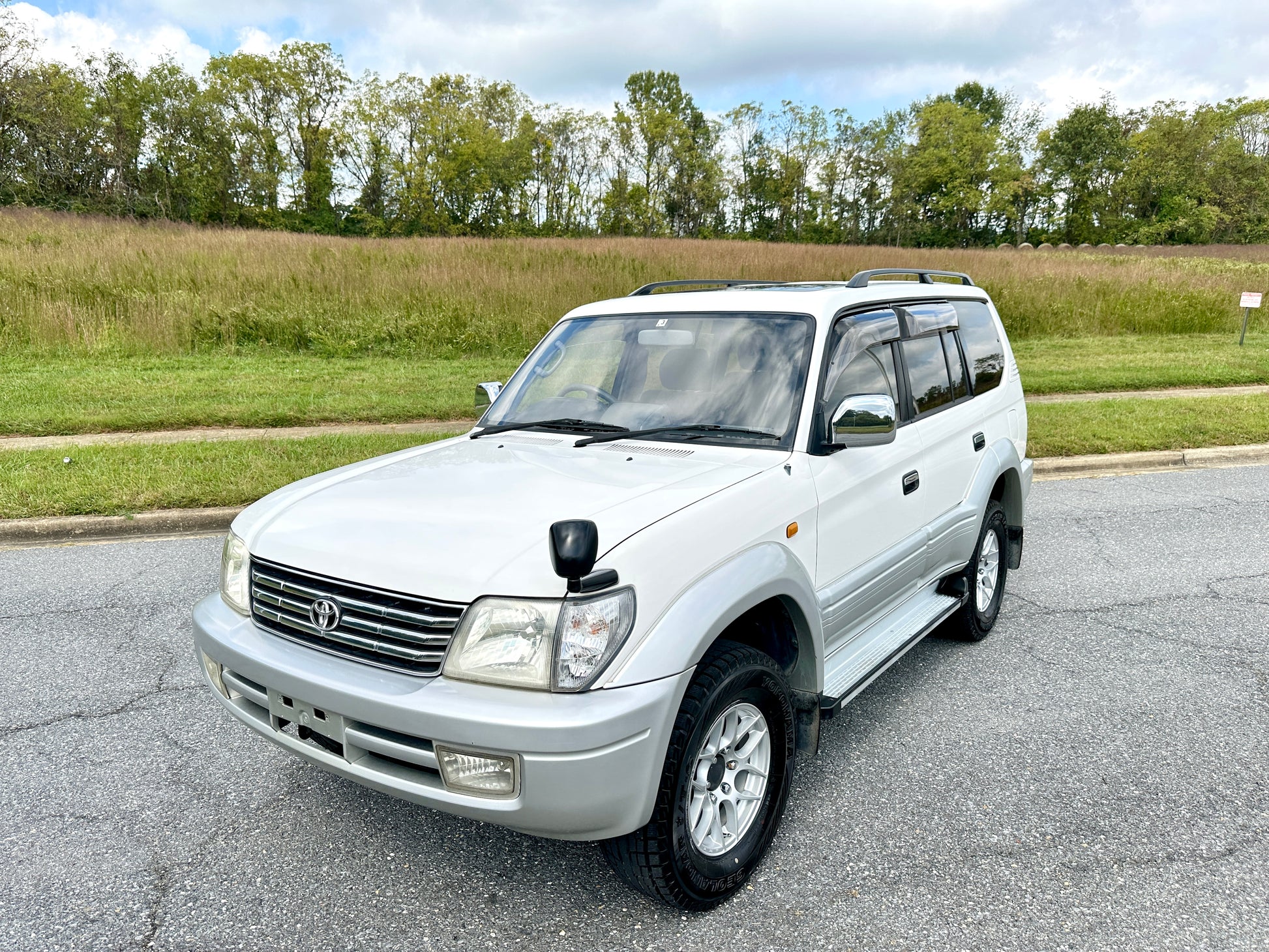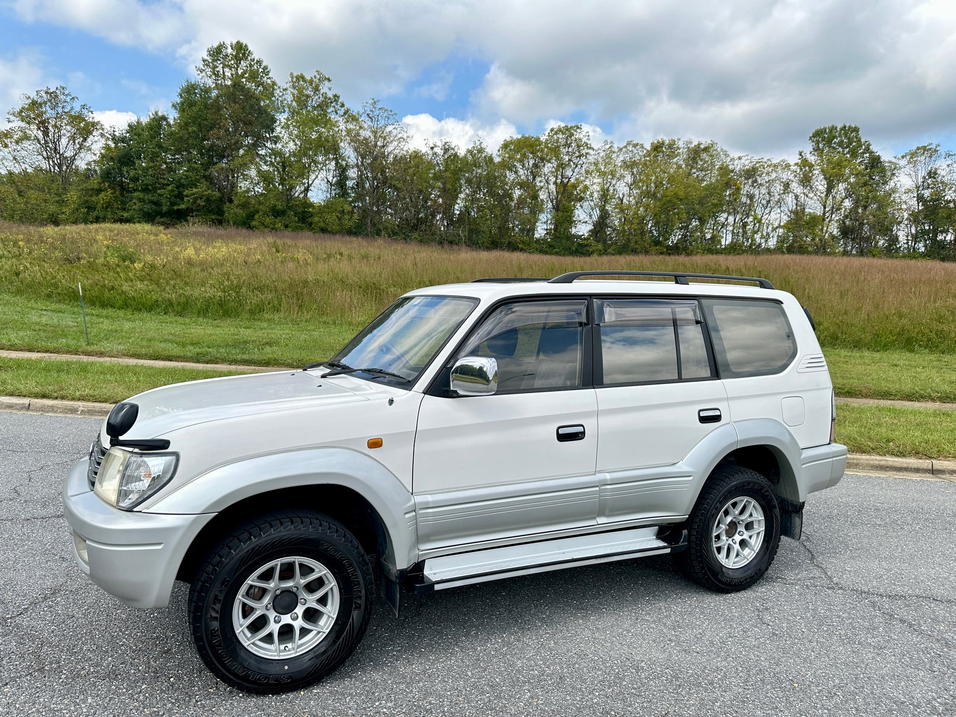 1999 Toyota Land Cruiser Prado TX LIMITED RZJ95——115,663 Miles, “3RZ-FE” I4, Gasoline, Automatic Transmission, Transfer Case With High And Low Ranges, Full-Time 4WD, Locking Center Differential, Natural White / Millennium Silver Metallic Two-Tone (K72), Patterned Blue Cloth Upholstery, SUNROOF, 3RD ROW SEATS, Aftermarket Wheels, OEM Rainguards, ABS, Dual SRS Airbags, Field Monitor System, Power Windows, Power Locks, Power Folding Mirrors, Automatic Dual-Zone Climate Control, Fog-Lights.