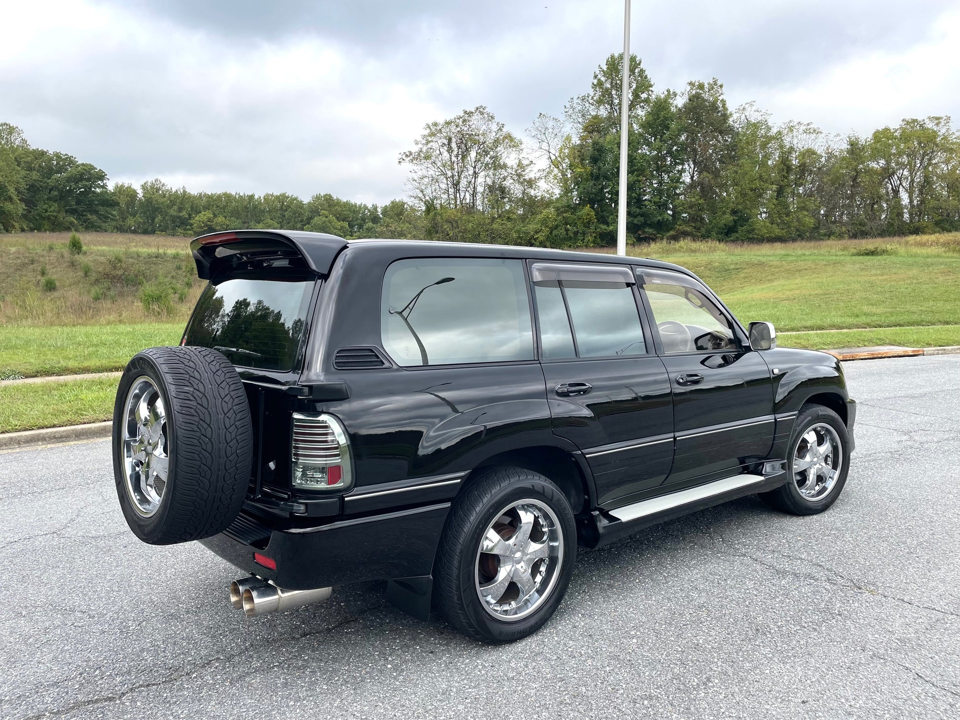 1999 Toyota Land Cruiser UZJ100 VX Limited ——100,650 Miles, “2UZ-FE”, 4.7 Liter V8, Automatic Transmission, FullTime 4WD, 2- Speed TransferCase, Center Locking Differential, Black Paint, Patterned Beige Cloth Upholstery Wrapped In High Quality Leather Seat Covers, Dual Front SRS Airbags, ABS, Tilt-Adjust Steering Column, Power Driver Lumbar Adjustment, Dual Zone Climate Control, Cold A/C, Power Windows, Power Locks, Power Folding Mirrors, Privacy Tint, OEM Skid Plate, OEM RainGuards, CRUISE CONTROL, Aftermarket Wheels, OEM BODYKIT, AFTERMARKET TWIN-TIP EXHAUST, SWING-OUT SPARE WHEEL CARRIER, SUNROOF.