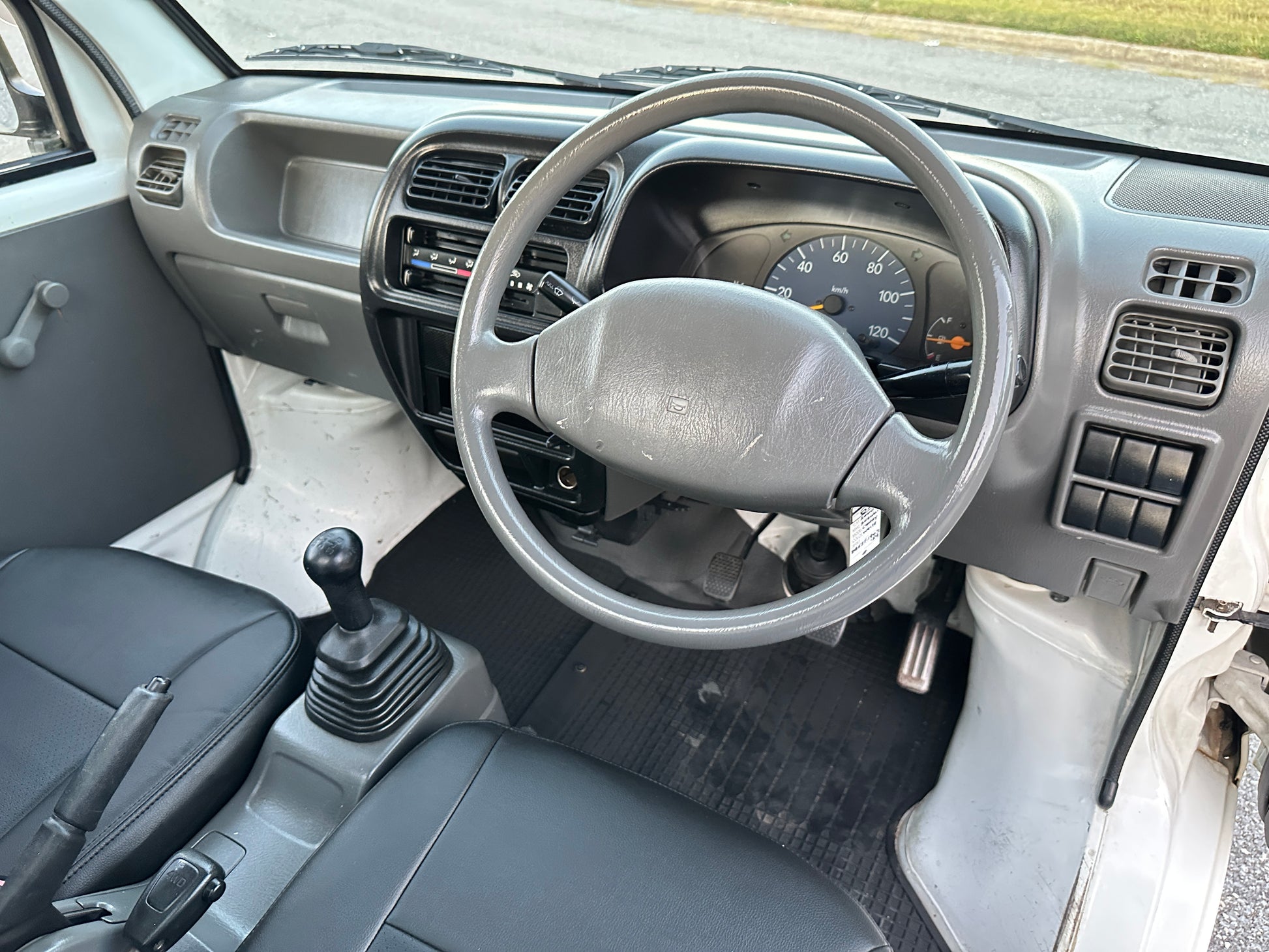 2000 SUZUKI CARRY GD-DB52T—— 61,029 Miles, “F6A” Engine, 660CC Inline-Three, ELECTRONIC FUEL INJECTED, Gasoline, 5-Speed Manual Transmission, Dual Range Transfer Case, Selectable 4WD, DROP-SIDE CARGO BED, 350kg Load Capacity, Heat & Fan, Faux Leather Seat Covers, Brand New 13” Tires.