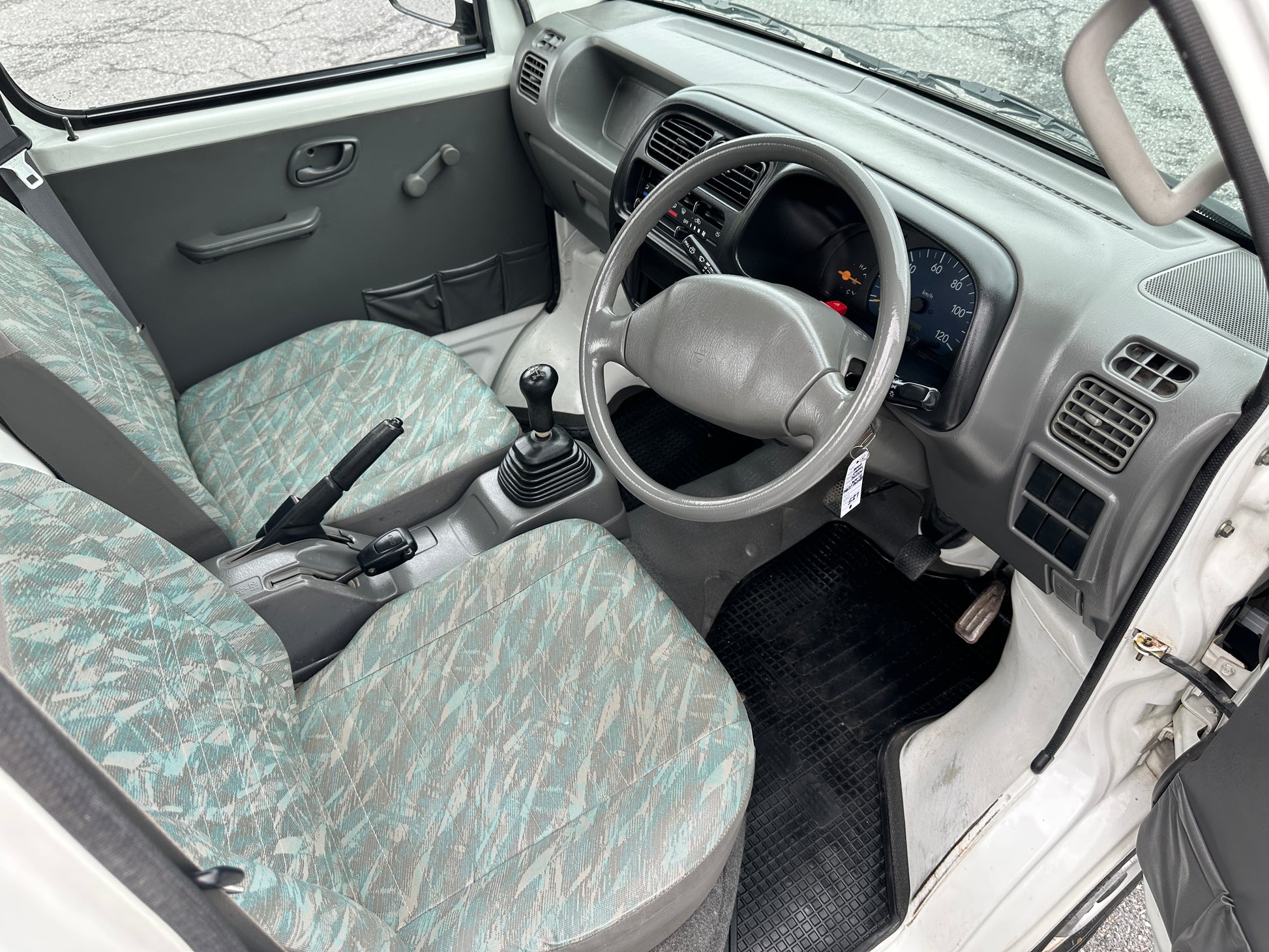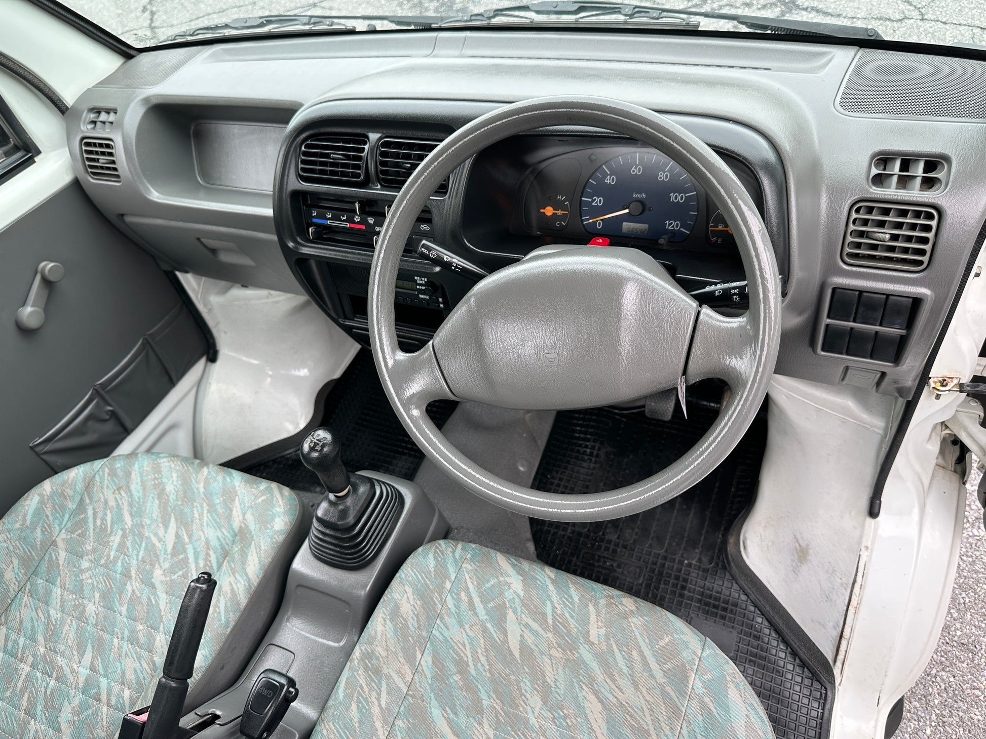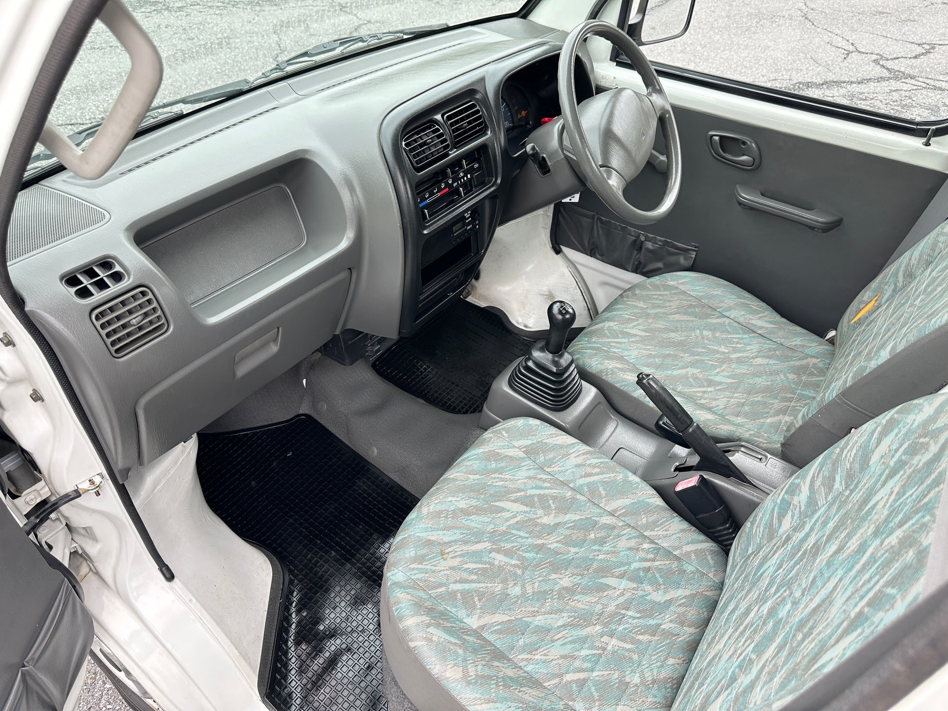 2000 SUZUKI CARRY GD-DB52T—— 36,376 Miles, “F6A” Engine, 660CC Inline-Three, ELECTRONIC FUEL INJECTED, Gasoline, 5-Speed Manual Transmission, Dual Range Transfer Case, Selectable 4WD, DROP-SIDE CARGO BED, 350kg Load Capacity, Heat & Fan.