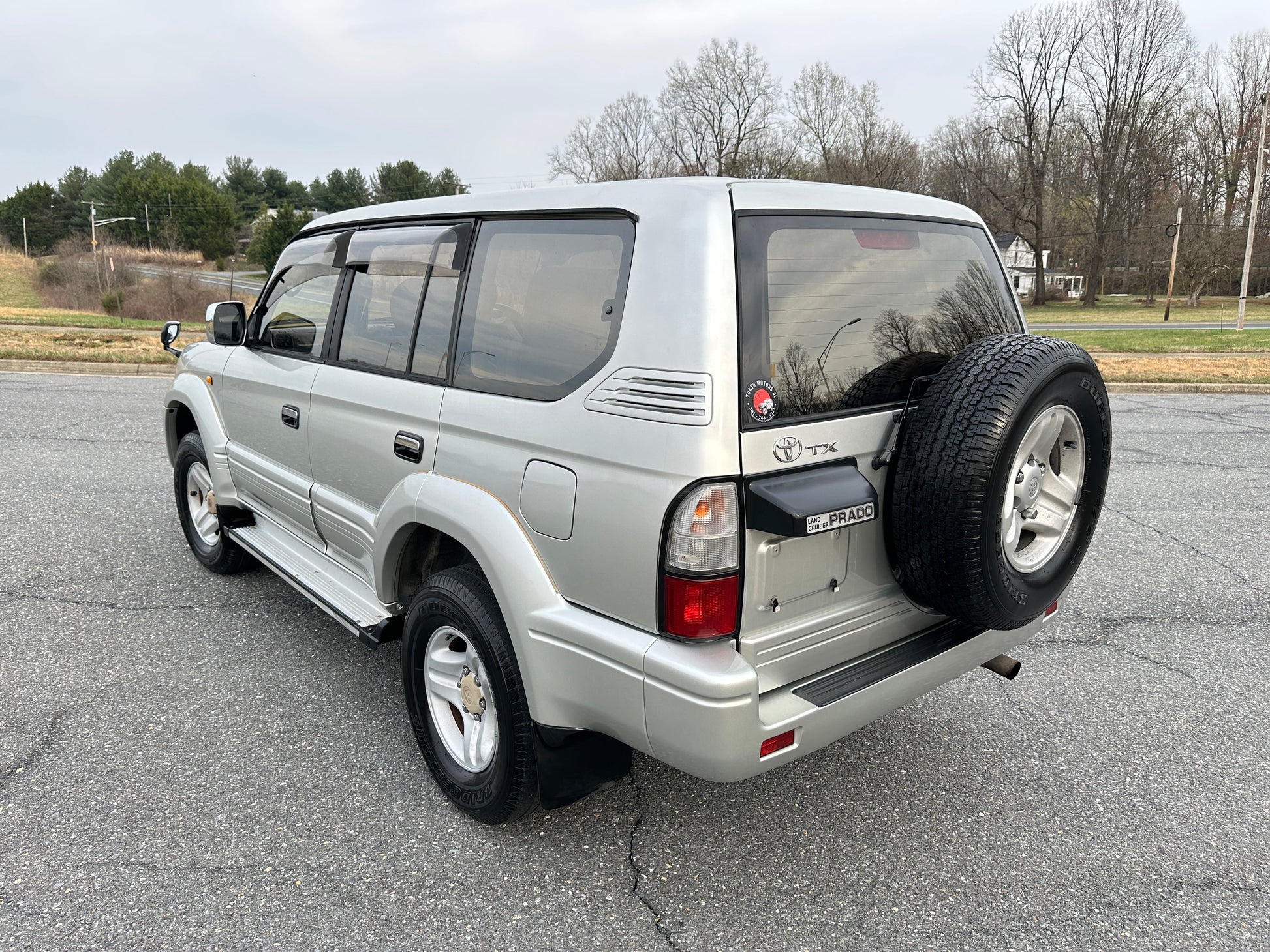 2000 Toyota Land Cruiser Prado TX KZJ95——134,113 Miles, “1KZ-TE” 3.0 Liter Inline 4, Turbo Diesel, 5-SPEED MANUAL TRANSMISSION, Transfer Case With High And Low Ranges, Full-Time 4WD, Locking Center Differential, Silver Metallic Paint (K73), Patterned Blue Cloth Upholstery, 3RD ROW SEATS, CENTER DIFF LOCK, Fog Lights, OEM Rainguards, ABS, Dual SRS Airbags, Power Windows, Power Locks, Power Folding Mirrors, Automatic Dual-Zone Climate Control, TOYOTA 3-Spoke Wheels.