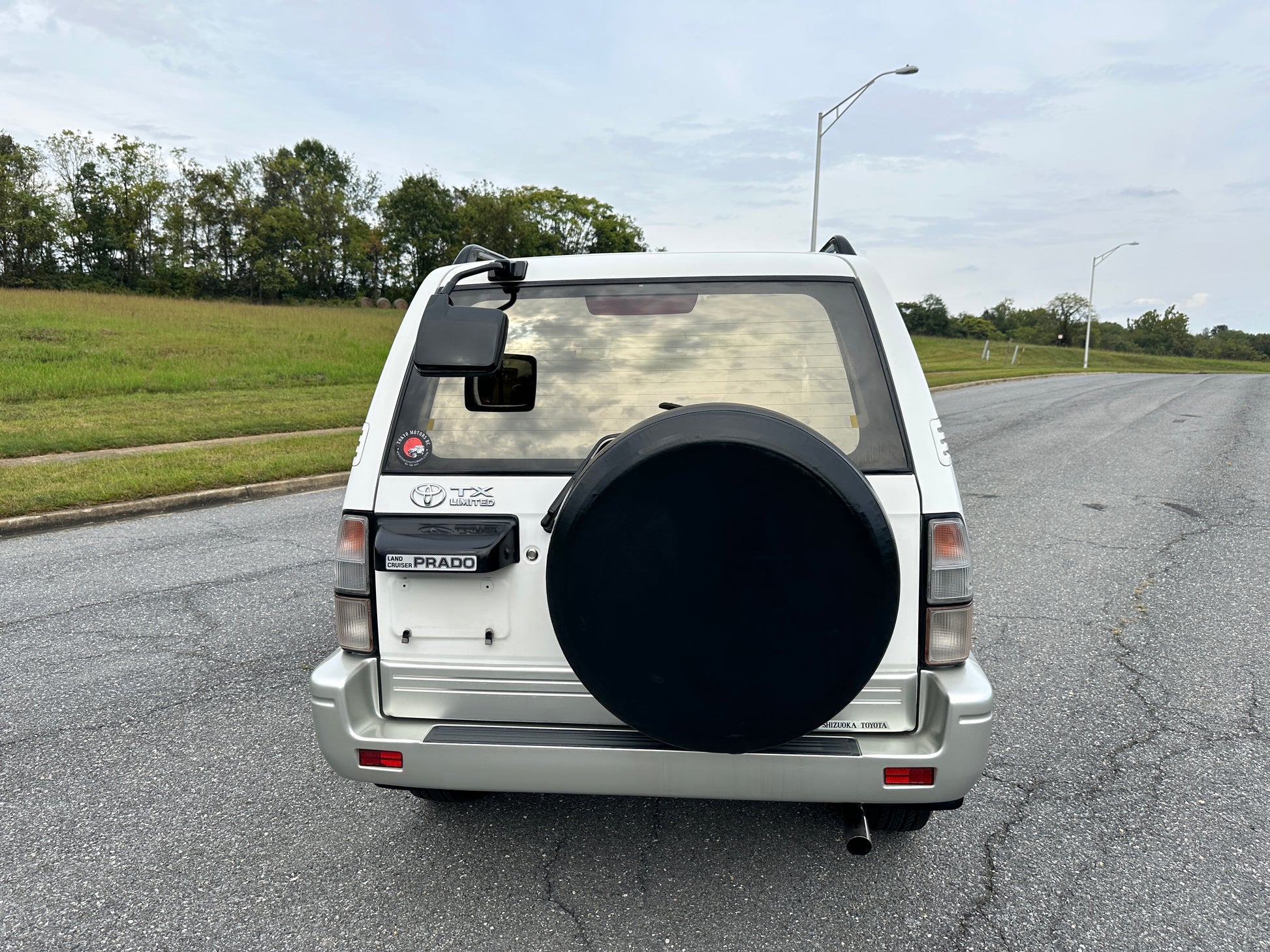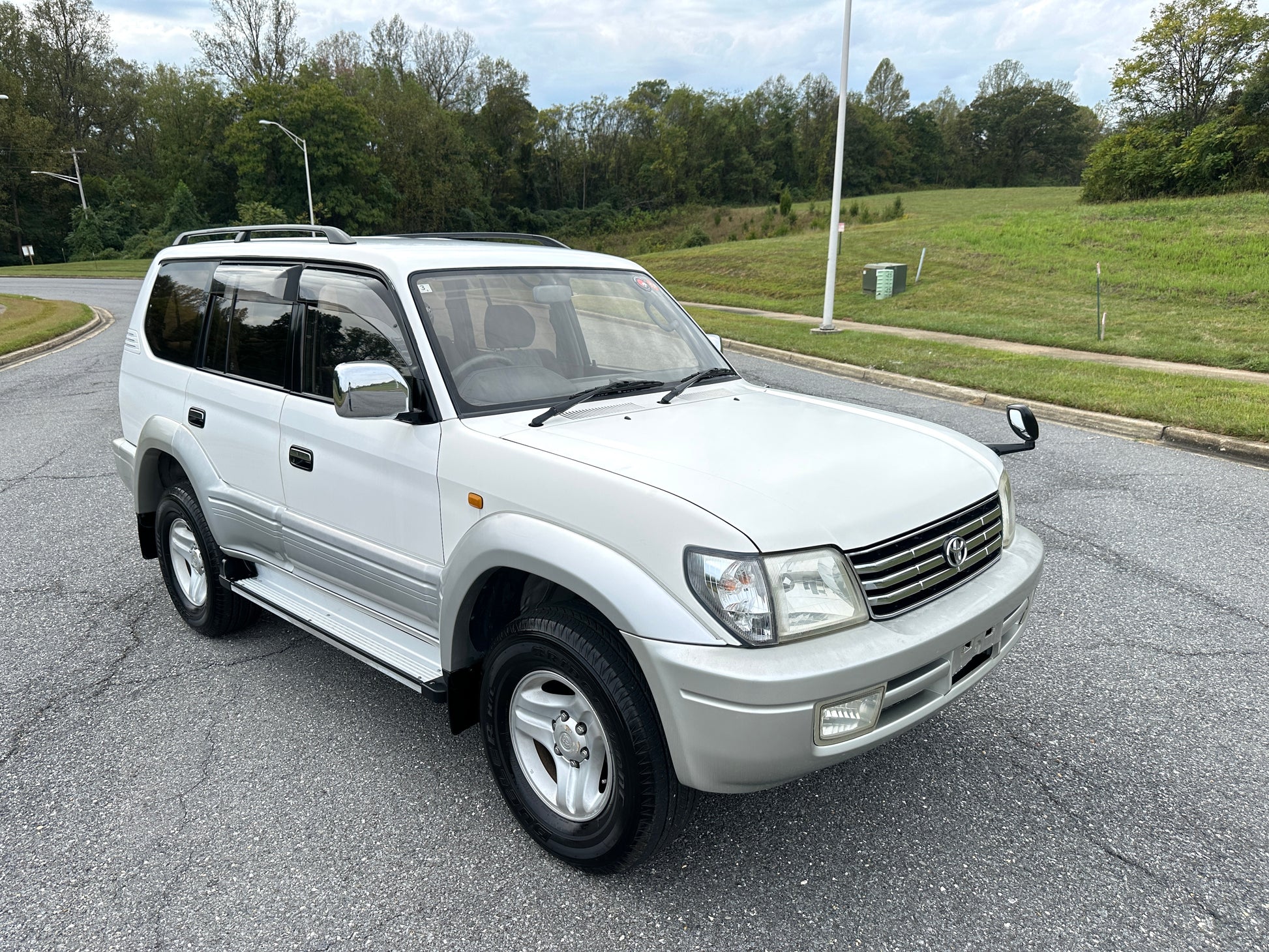 2000 Toyota Land Cruiser Prado TX LIMITED RZJ95——106,193 Miles, “3RZ-FE” Inline 4, Gasoline, Automatic Transmission, Transfer Case With High And Low Ranges, Full-Time 4WD, Locking Center Differential, Natural White / Millennium Silver Metallic Two-Tone (K72), Patterned Blue Cloth Upholstery, 3RD ROW SEATS, TOYOTA 3-SPOKE WHEELS, OEM Rainguards, ABS, Dual SRS Airbags, Power Windows, Power Locks, Power Folding Mirrors, Automatic Dual-Zone Climate Control, Fog-Lights.